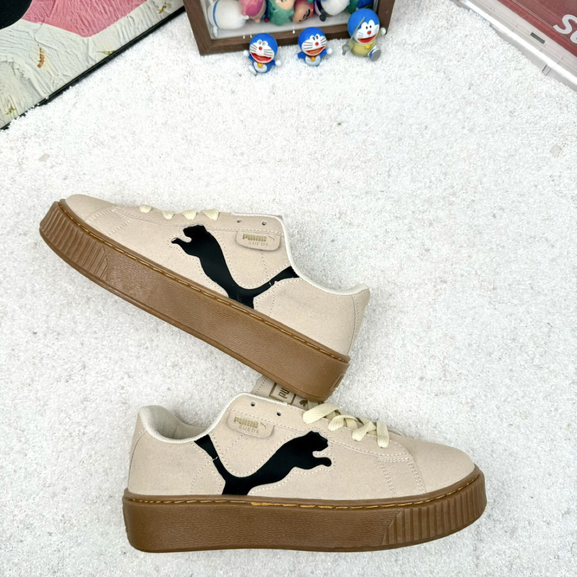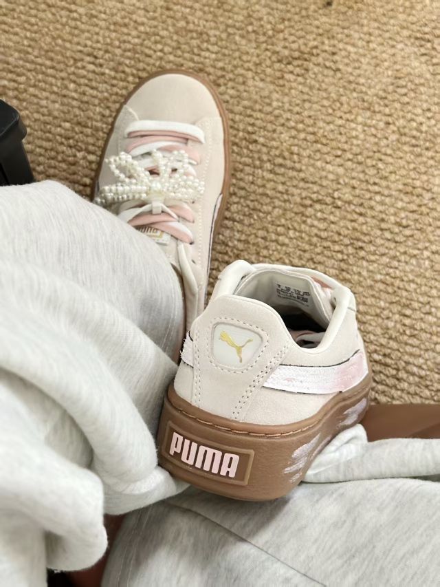 彪马与蕾哈娜合作的厚底板鞋款近日备受关注,这款经典的小板鞋设计简约,颜值极高。其淡雅的木色调尤为吸引人,显得既温柔又乖巧。鞋底采用橡胶材质,穿着舒适不累脚,同时具备增高效果,整体表现无可挑剔