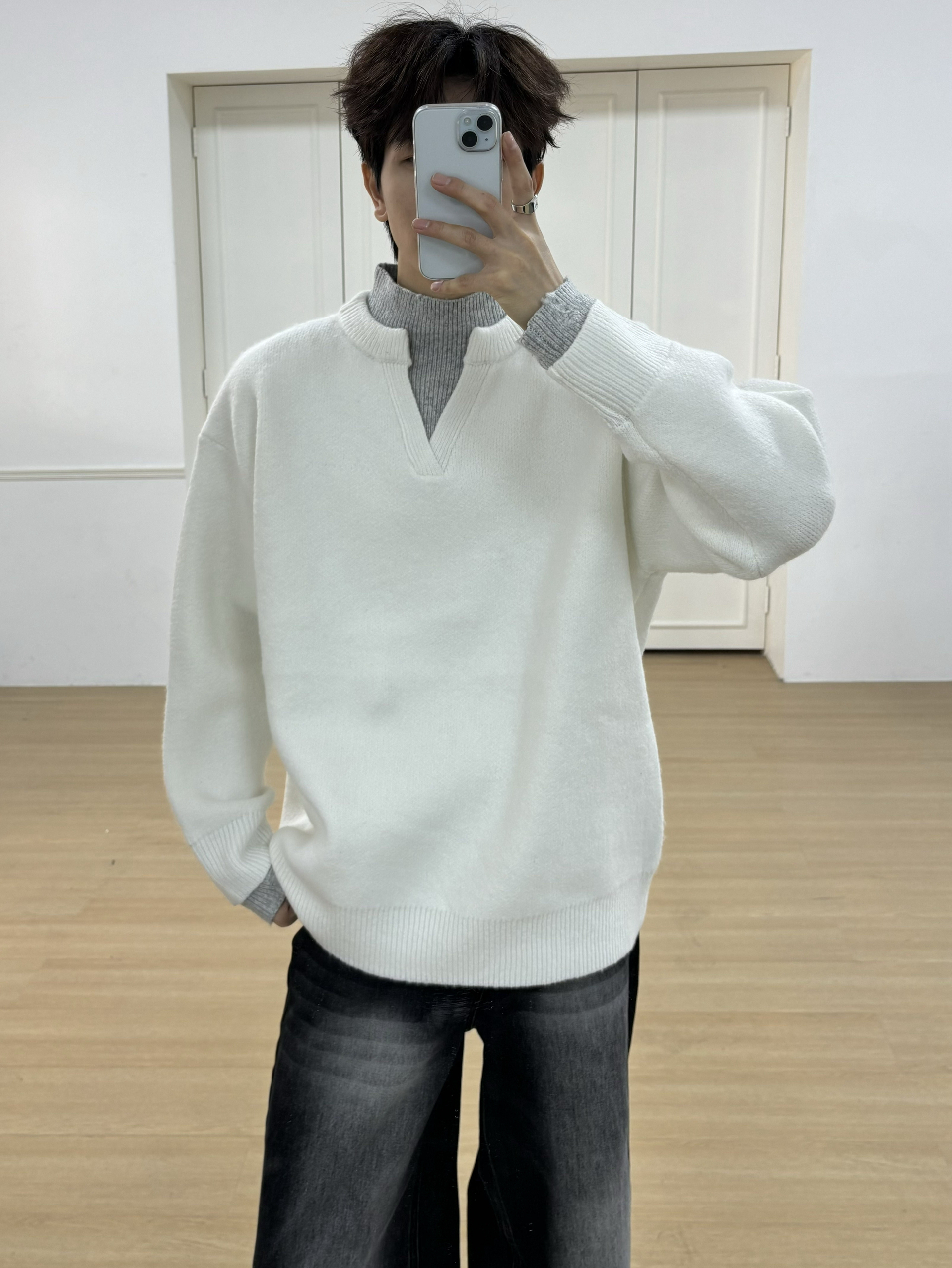 春天快到了,真的不打算安利一身毛衣嘛,温柔且慵懒风的感觉最让人着迷 • 韩系慵懒风高领假两件毛衣 • 水洗黑色直筒宽松牛仔裤 •德比鞋 真的不打算让你喜欢的女孩子对你眼前一亮嘛,这种暖暖且慵懒的感觉真的太让女孩子喜欢了