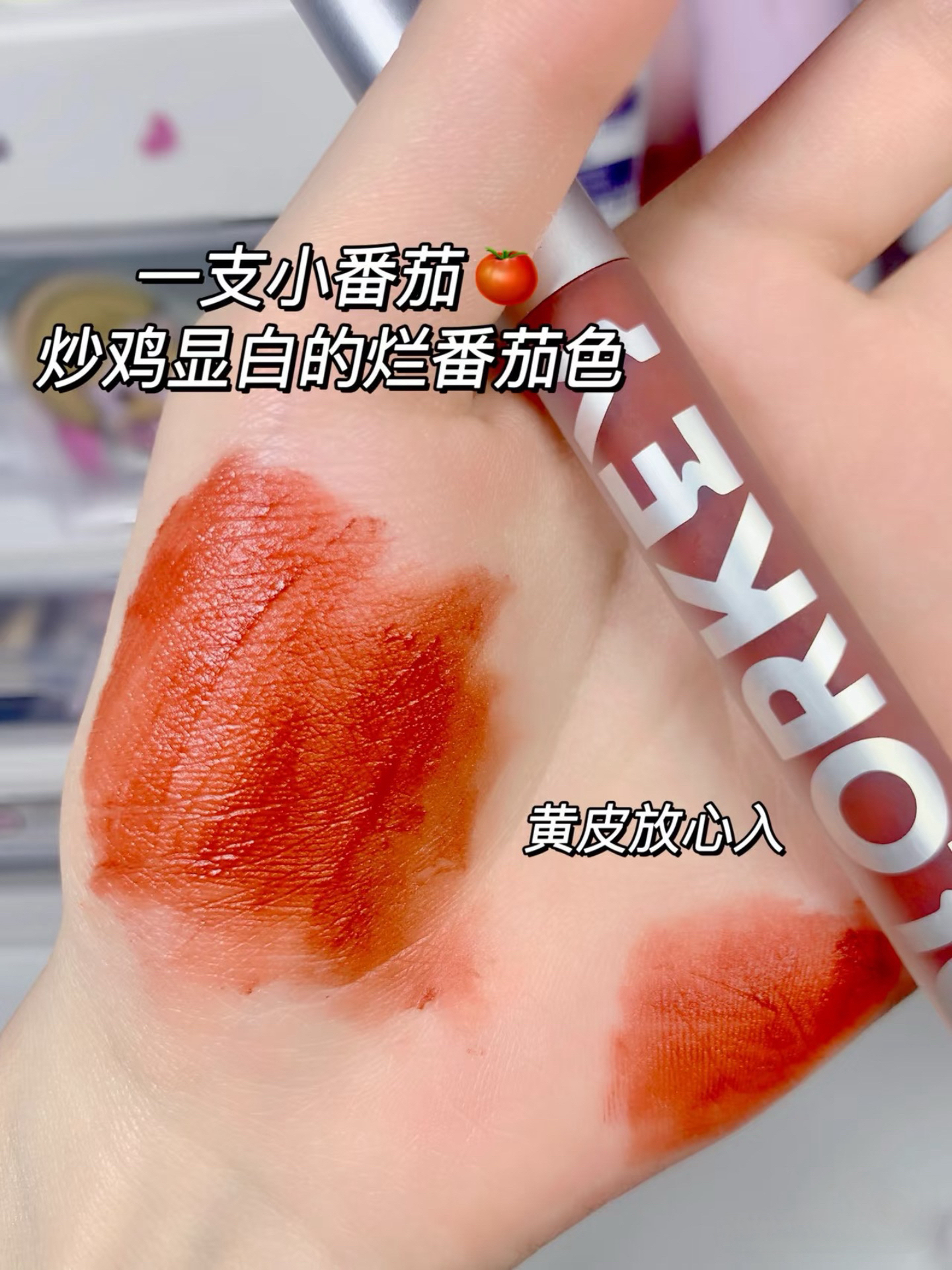 黄皮深唇盘它!明艳大气的夏日小番茄~好显白💗 漂酿! colorkey 丝绒唇釉 #R608 素颜薄涂没问题!薄涂就是揉碎的西柚汁色 🎊很提气色 厚涂橘棕带点红棕调,贼显气质!很适合穿着小裙子出去玩~显白到不行!🐰 空气感丝绒质地,蛮轻薄的!.上嘴没有负担!