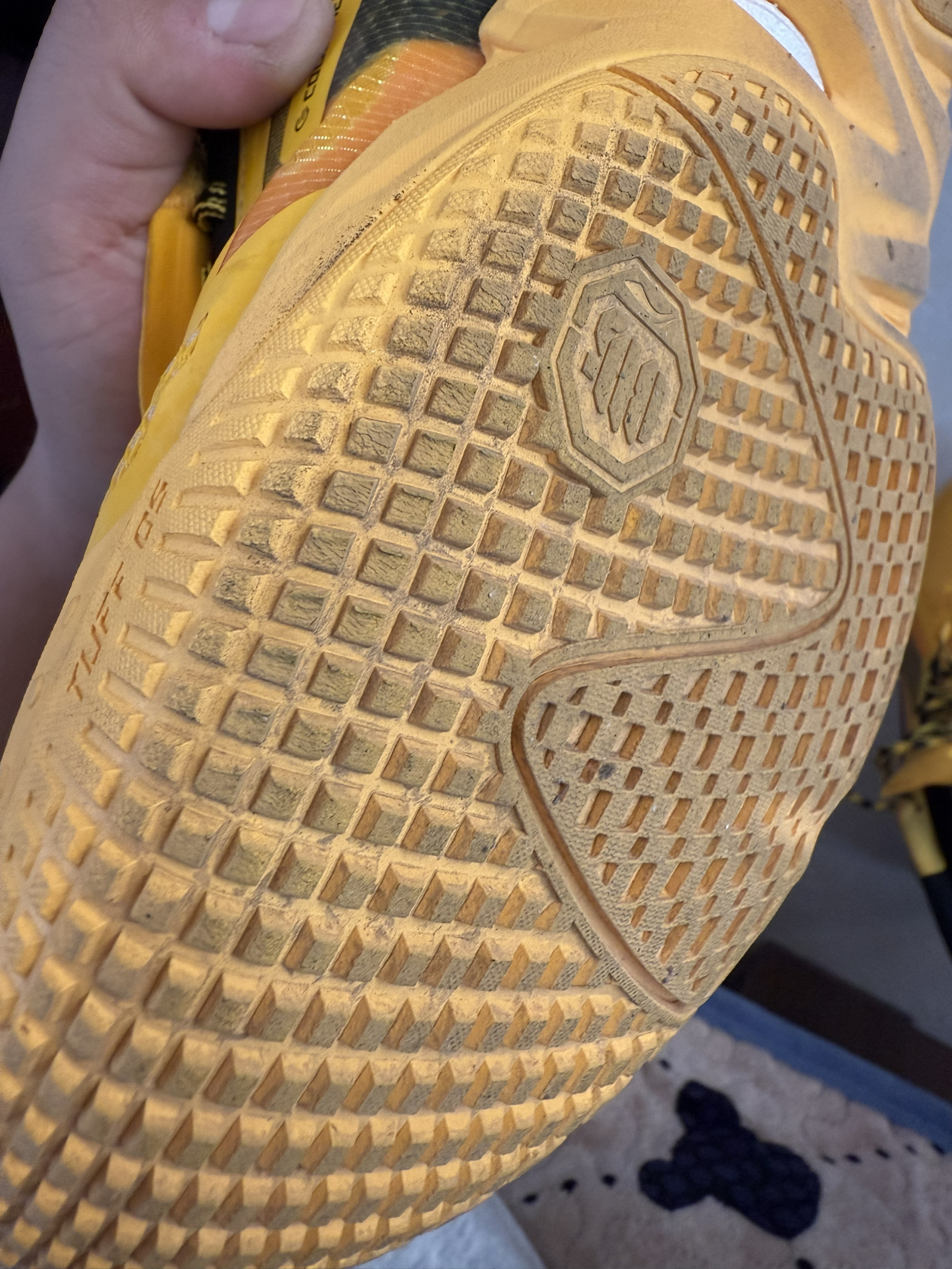 早闻反伍的耐磨和抓地性能一流所以买来测评一波 📌是否偏码【偏大/不偏码/偏小】:不偏码(宽脚可买大半码到一码 包裹:优秀,但是会顶脚趾 缓震:比较韧,没有明显的䨻感 抓地:优秀室内外都可 耐磨:一般,不耐磨,上面图片打了三场室外 稳定:还行 防侧翻:可以 透气:可以 重量:优秀,很轻质 📖总结评价:不耐磨符合小体重的水桶鞋,大体重勿选