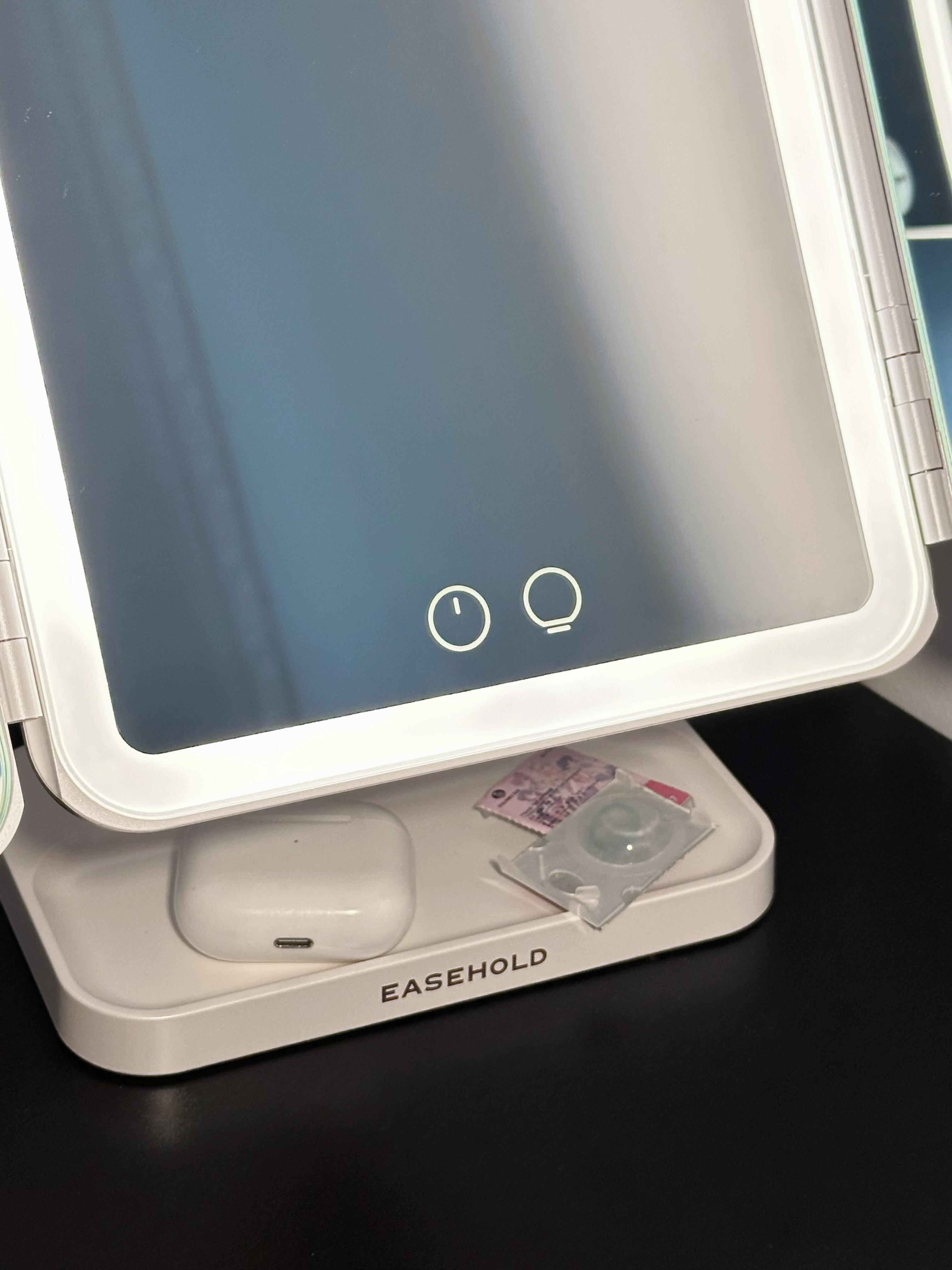 本篇笔记关联了EASEHOLD 台式led贝壳化妆镜 三折叠可旋转可调光专业补光高清小香风 【小三折】极简白 2000毫安等商品,为用户提供真实的使用体验和购买参考。