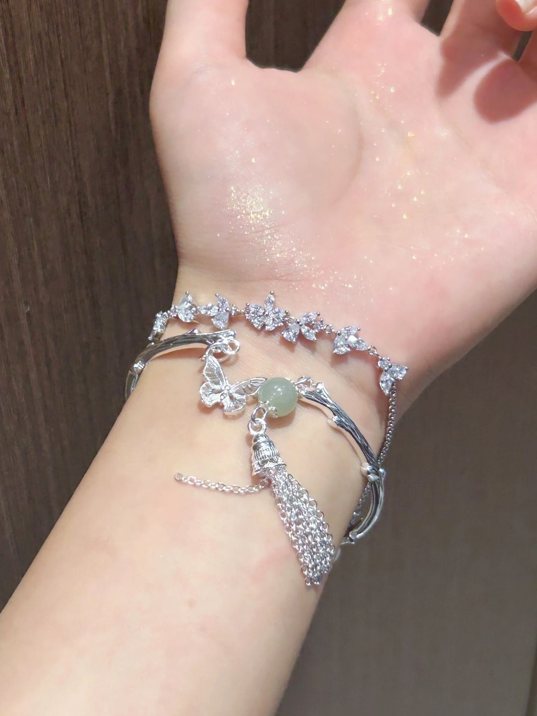 本篇笔记关联了中国黄金 蝴蝶藤蔓足银手镯 ZJSZ206 银色、中国黄金 在逃公主温柔紫藤花微笑蝴蝶星芒满钻拼接S925银手链 GSL827 银色等商品,为用户提供真实的使用体验和购买参考。