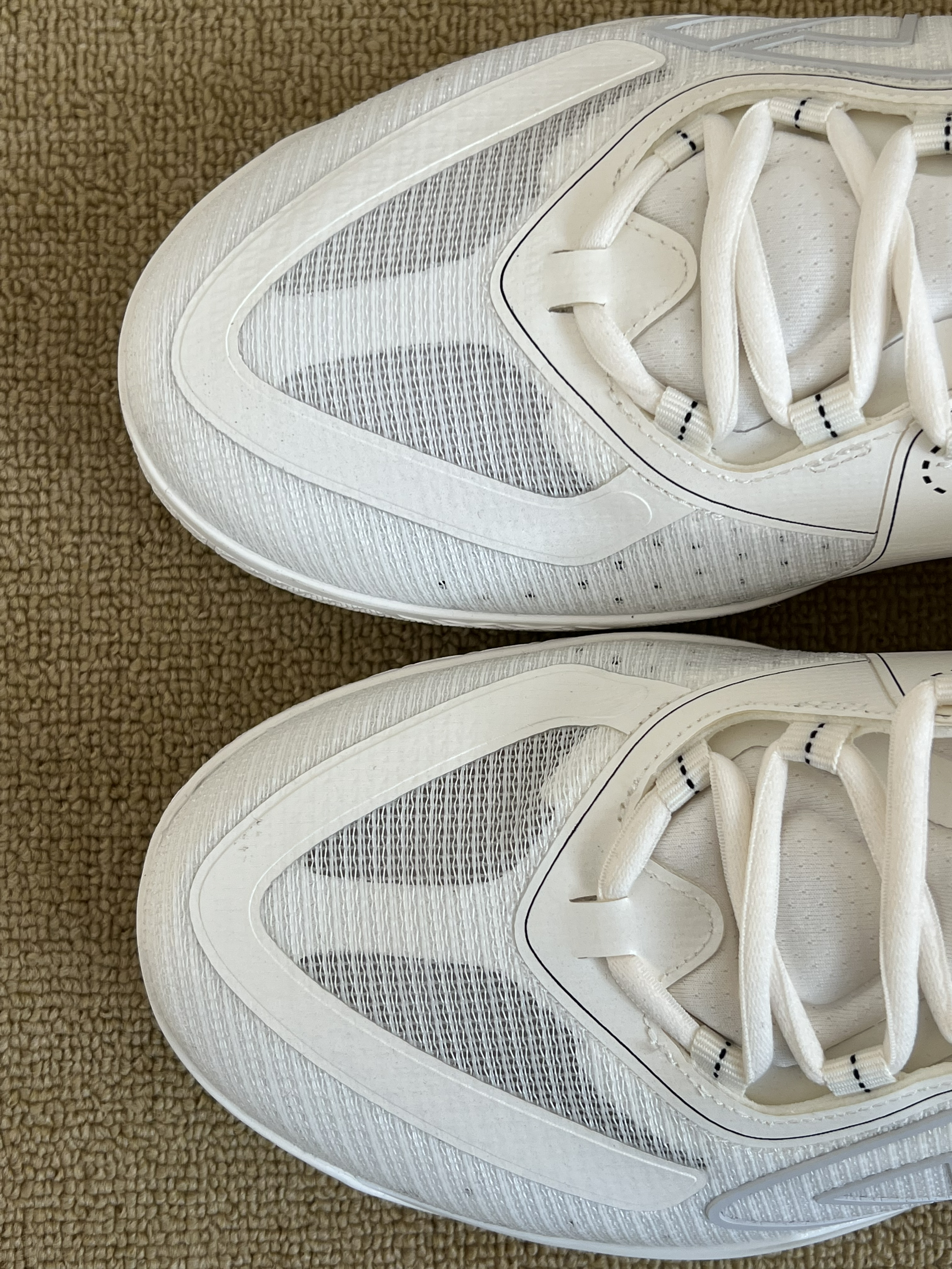 这双鞋是我近期敲期待的实战利器了! 上脚后鞋脚一体性hen不错 既有场地感清晰的同时缓震也不错 鞋子的整体颜值也是灰常nice 个人觉得这个鞋带有点忒长了 尺码方面个人建议偏小半码选择