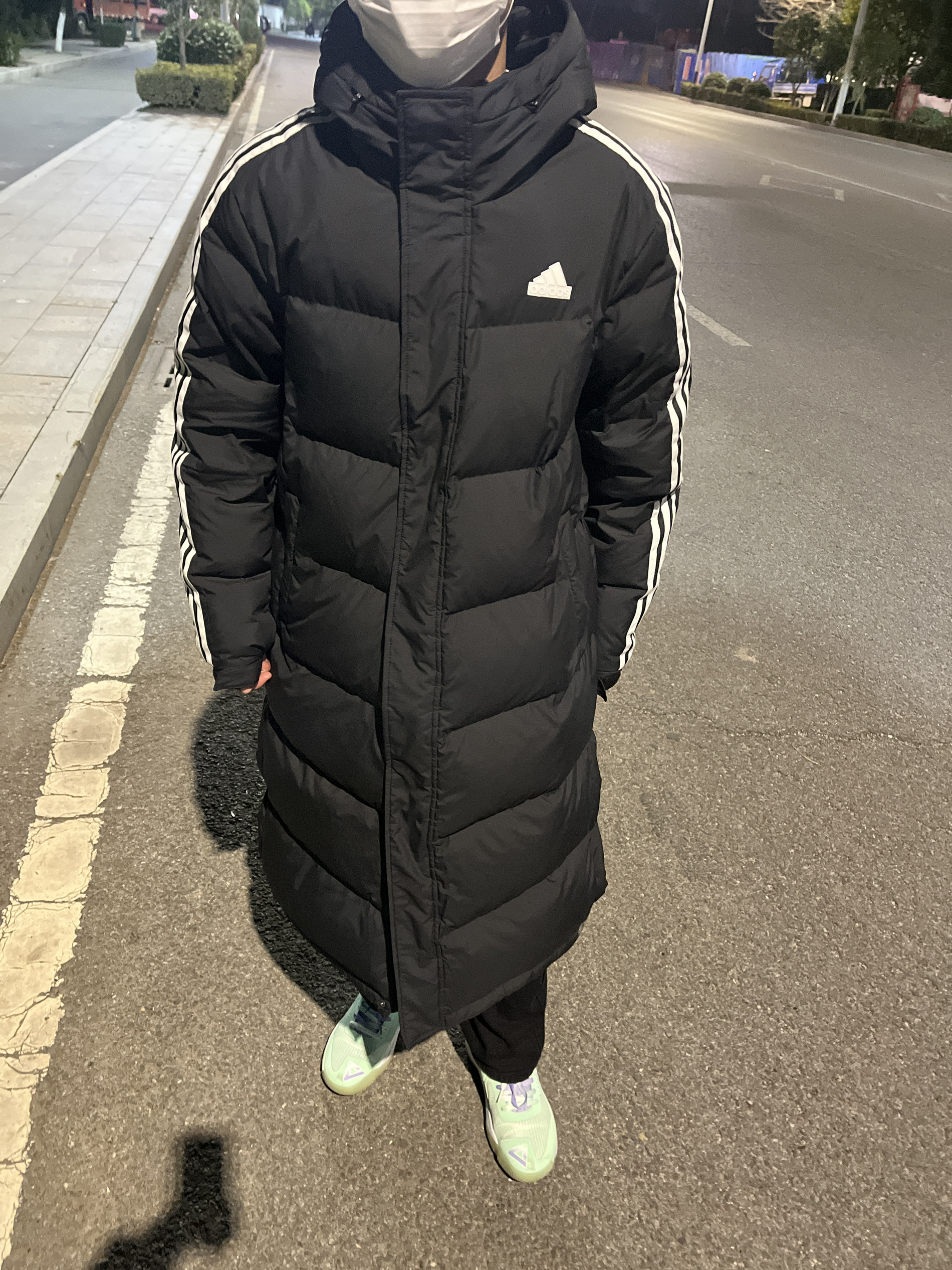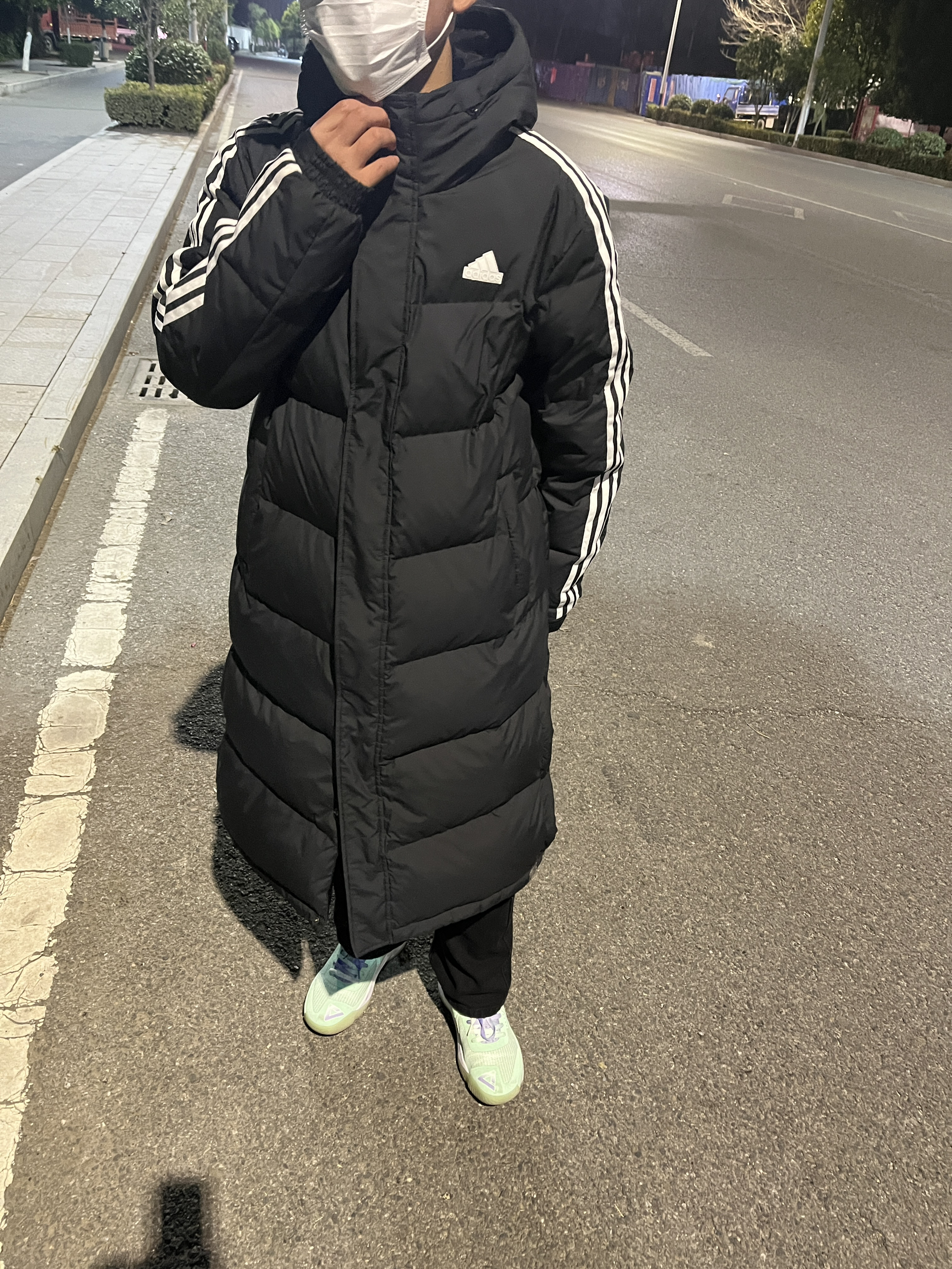 Adidas 长款羽绒服显瘦又保暖,我穿这个码刚刚好,很合身,长度对于我来说也很合适, 这种修身款的比宽松的会更显高一些款式做的经典款,怎么也看不腻,袖子上是经典的三道杠, 胸前也有一个立体的adidas的标志 领口和帽子都做的比较防风,真好喜欢这个款呀!这款可选的颜色也比较多可以和男朋友当情侣装