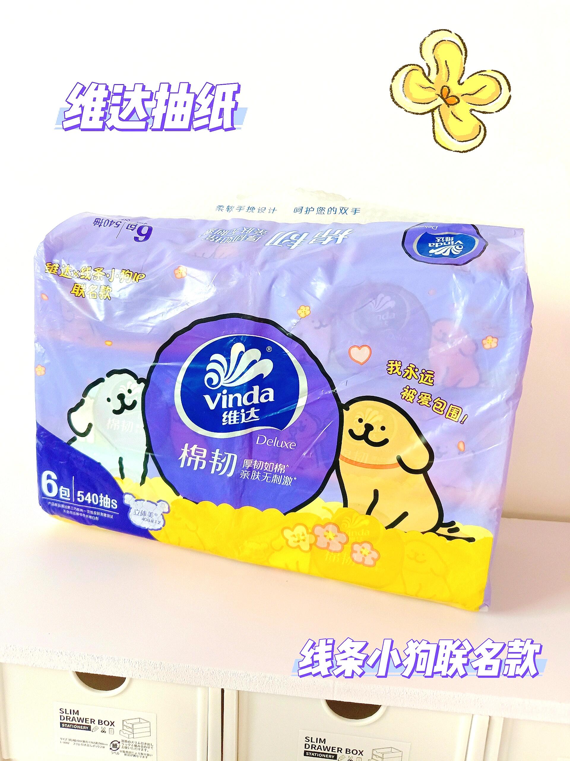 本篇笔记关联了Vinda/维达 棉韧系列 线条小狗联名款 3层 133x195mm 抽纸 加厚柔韧干湿便捷不刺激抽取式开学季软抽 90抽/包等商品,为用户提供真实的使用体验和购买参考。