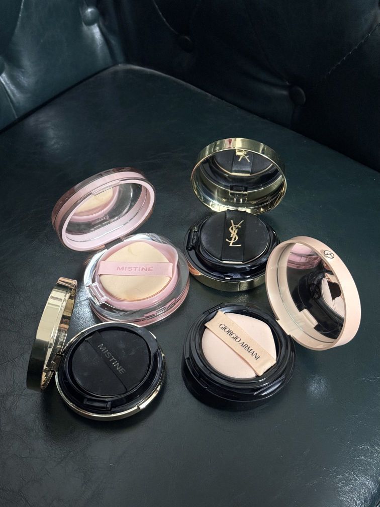 我自己肤质是油痘肌 肤色黄一白 今天分享4款自用气垫感受 YSL黑气垫:自然清透妆 中度遮瑕 个人觉得持妆8h会有点小卡粉 Amani 粉气垫:纯爱这个少女粉颜值 比较适合干皮 色号选了2号 我觉得一开始会太白 mistine暹罗气垫:学生党可以试试 综合实力强还不容易脱妆 mistine金气垫:刚上完妆是不错的,个人觉得持妆力还可以加强一下 大家喜欢哪款呢~欢迎评论区分享你的底妆好物给姐妹们~