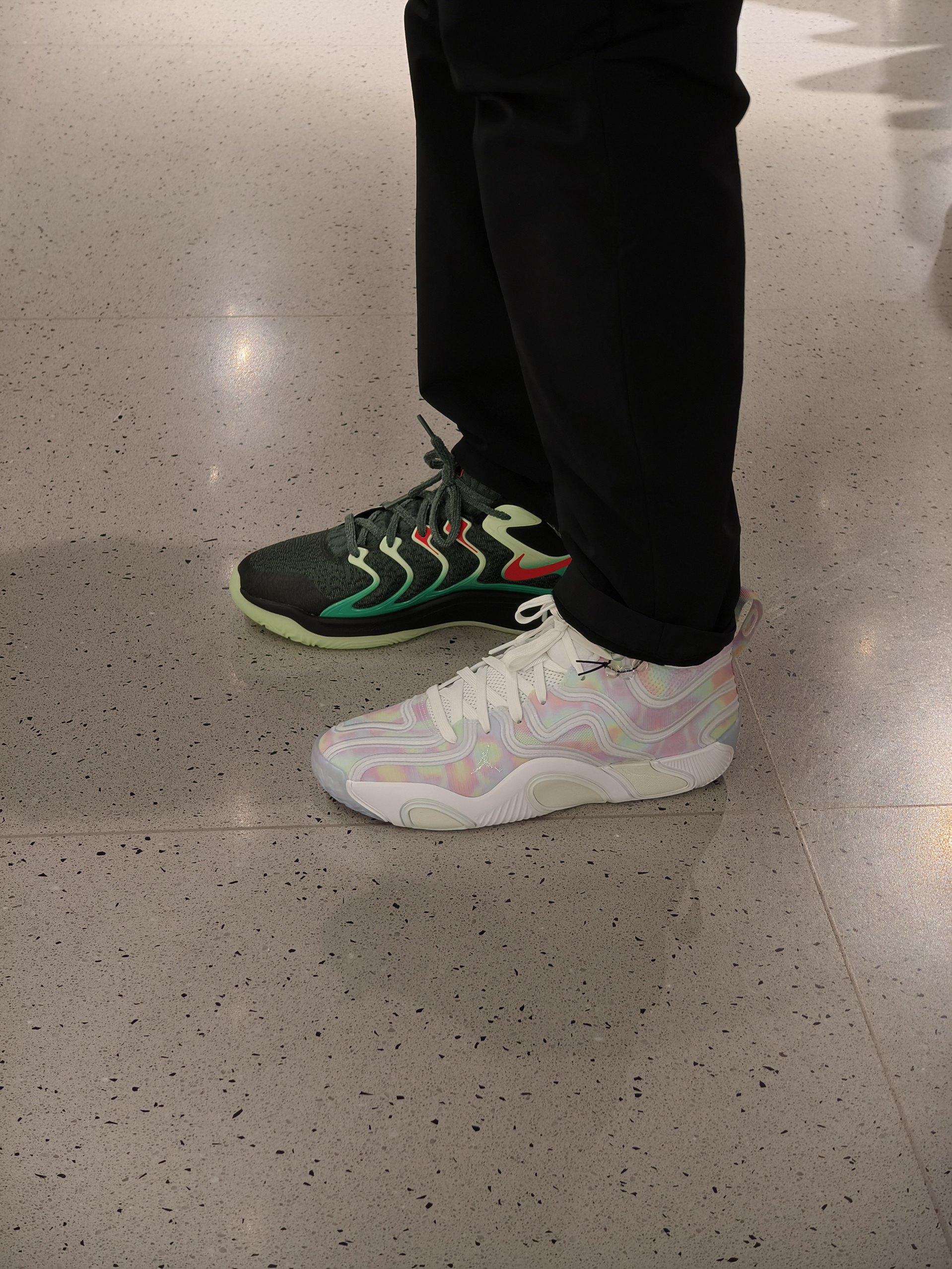 杜兰特17上脚偏软,气垫一上脚就可以感受到,塔图姆偏硬,鞋楦微宽