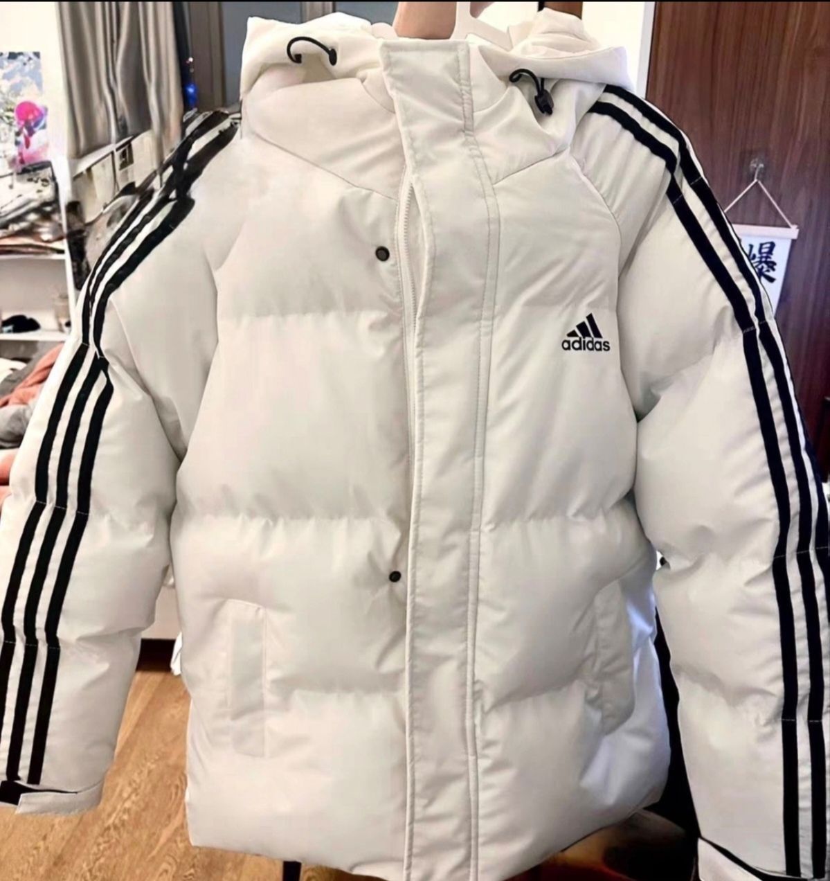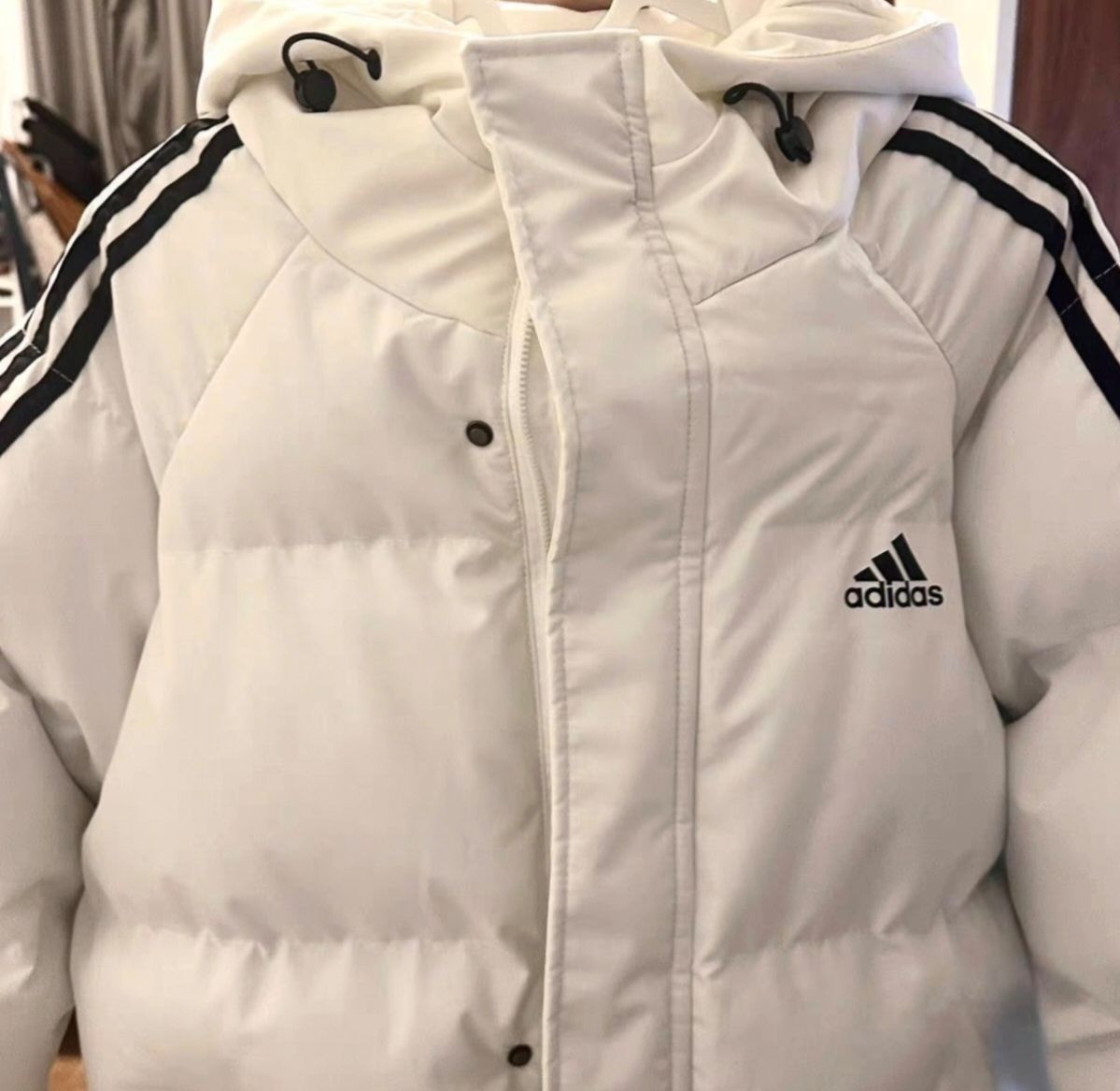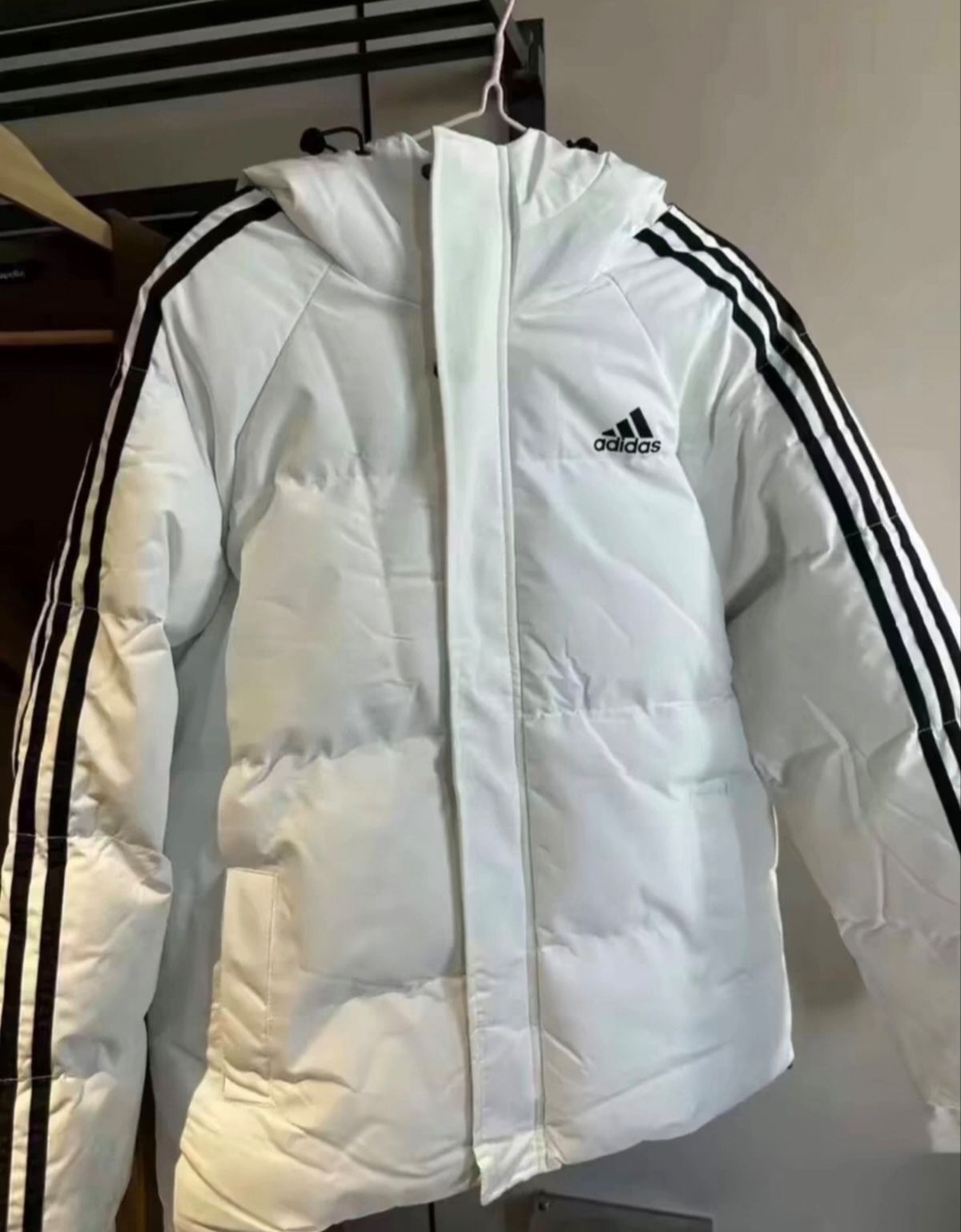 这件阿迪达斯的白色羽绒服也太好看了吧 穿上去不显臃肿而且还特别保暖 最主要的是这个白色配色也十分好看