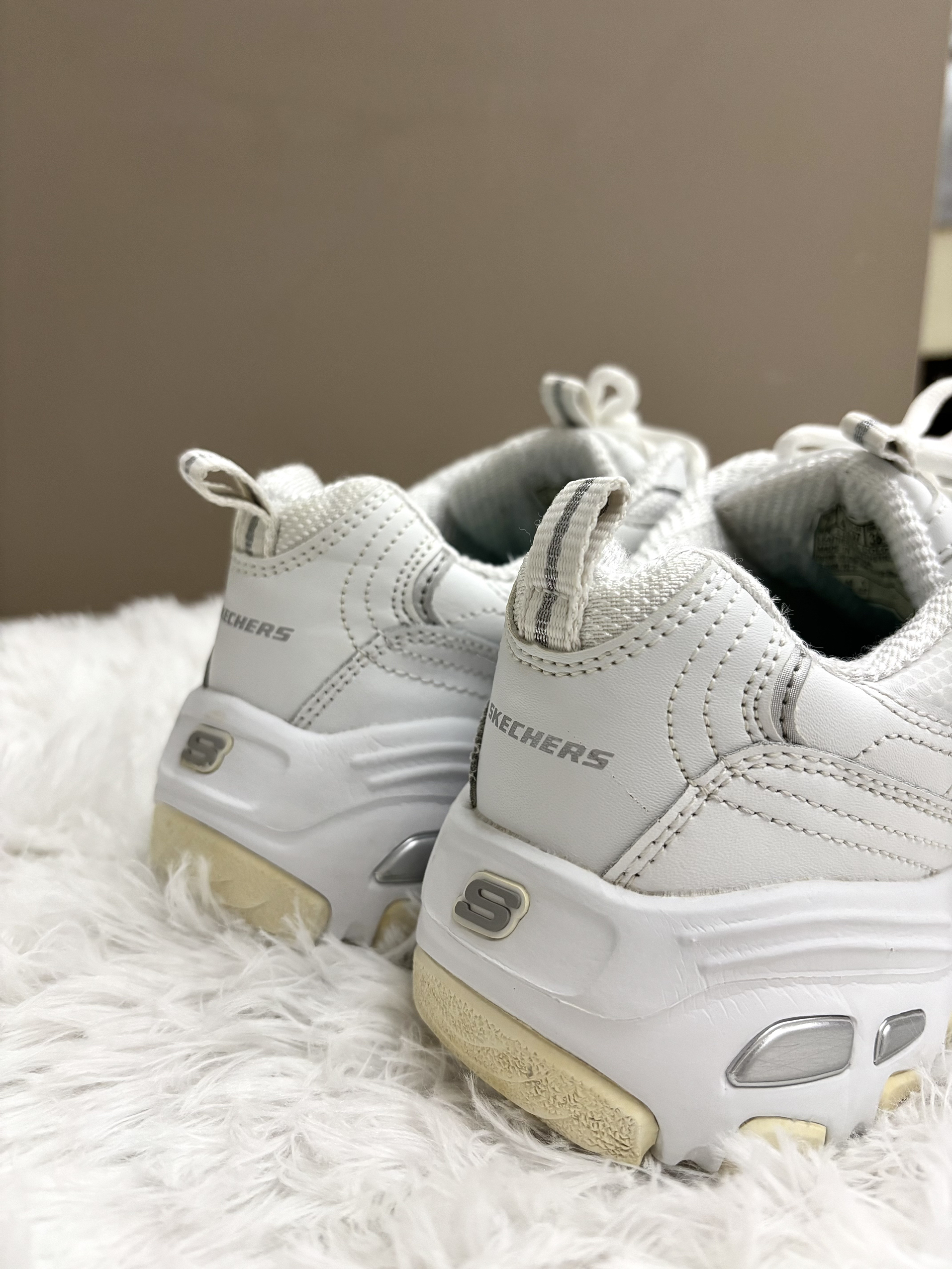 本篇笔记关联了Skechers/斯凯奇 D'Lites SR 轻运动 增高鞋 老爹鞋 潮流经典缓震耐磨舒适透气绑带厚底运动 女款/白色等商品,为用户提供真实的使用体验和购买参考。