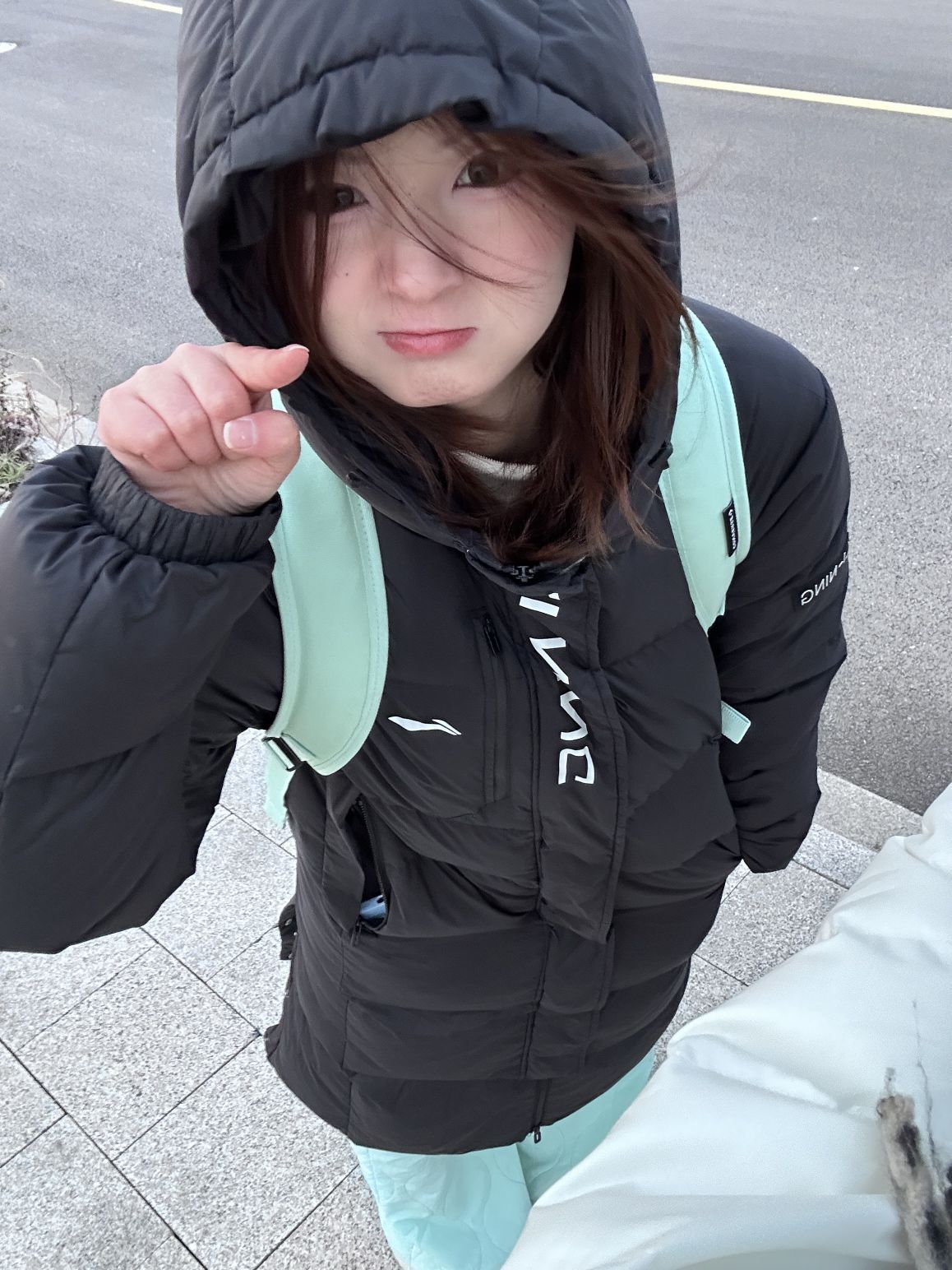 黑色羽绒服显得人很白,再配上亮色裤子和书包,超级活力富有生命力,再配上雪地靴,暖和但又不失时尚,简直就是冬天必备穿搭,这几天买羽绒服也会便宜很多,大家入股不亏啊!!!!
