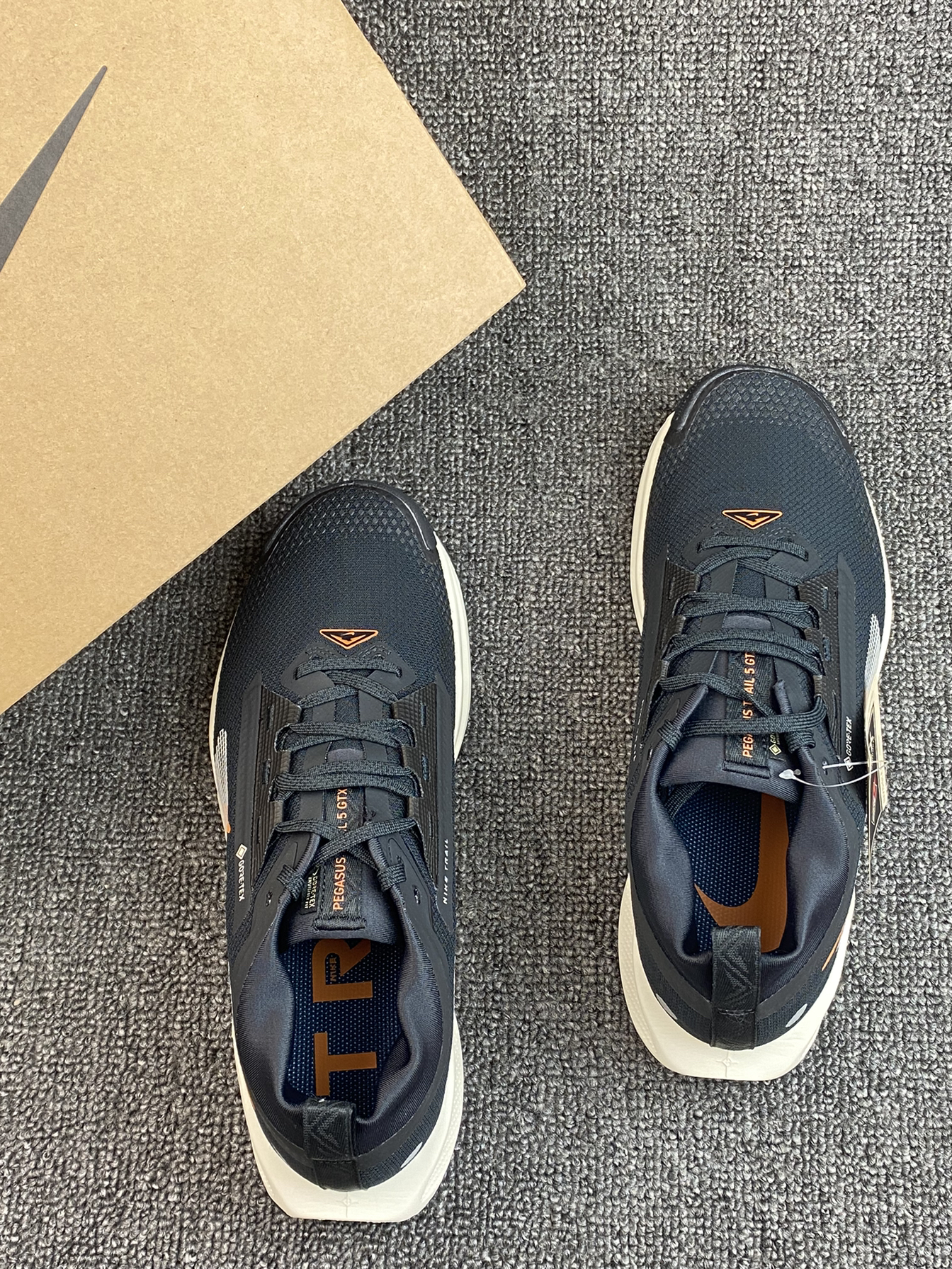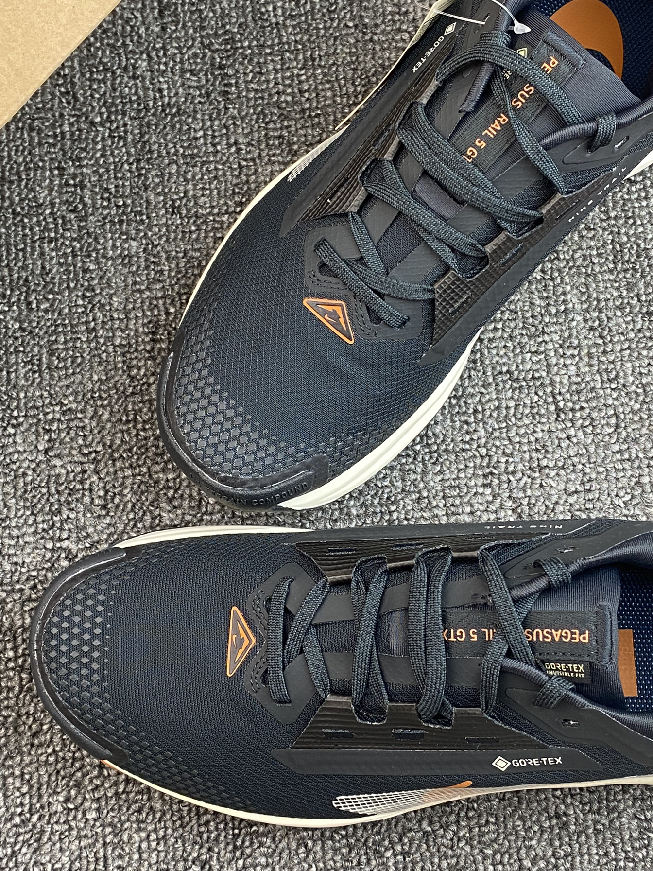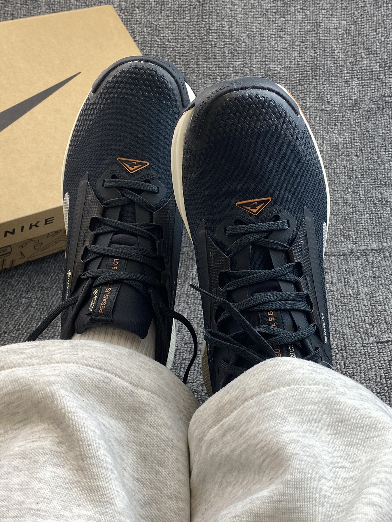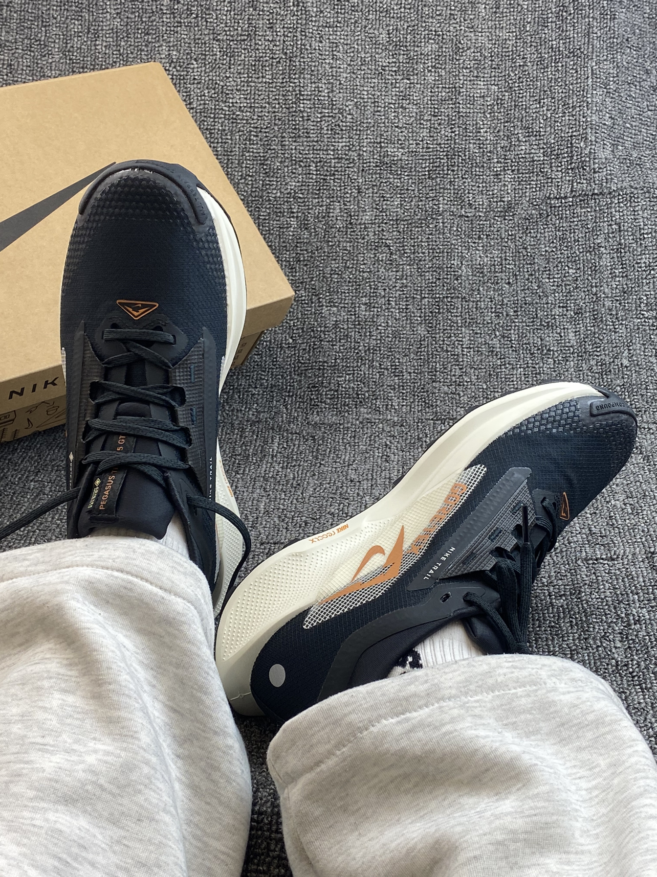哈喽👋这里是老歌啊 今日分享一下这双Pegasus Trail 5👟 鞋子其实是比较小众系列的,但质感不输 黑色为主,搭了橙色点缀,不会太单调 穿着跑步或者通勤等都很好搭衣服呀✨ 鞋面有防泼水的涂层,这点是优势吧 下雨天也能穿出去,复杂一些的户外场景也能驾驭啦