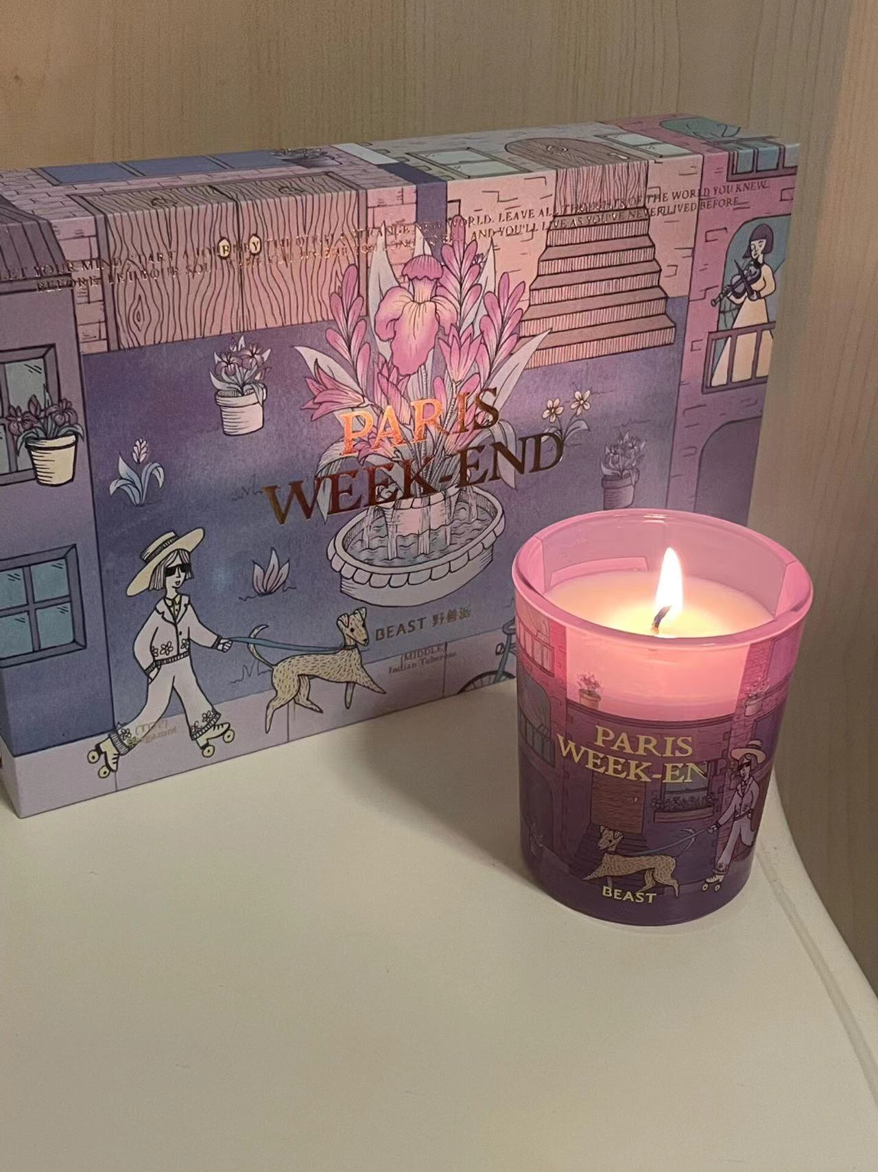 野兽派香薰—巴黎周末 这款野兽派香薰礼盒比较适合作为礼物送给朋友,从包装上来看颜值还算是比较高的,上面都带有一些插画的设计,运用彩绘的风格勾勒出惬意的周末。 🎁礼盒内包含一个50ml的散香器和一个70g的蜡烛,散香器里可以插入3-4根散香条放在卧室或者卫生间。 香味:如果闻惯了一些稍微高品质的香薰,可能会觉得这个味道有点廉价。前调:佛手柑 中调:印度晚香玉花 后调:木质、雪松 图源网络,侵删