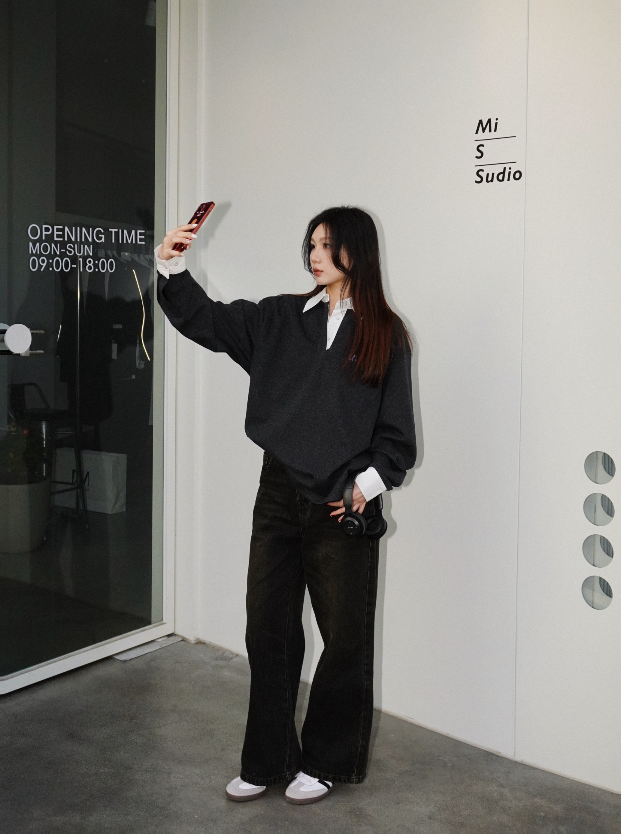 天气回暖当然要选择cleanfit穿搭 撞色领口针织衫搭配水洗灰牛仔裤👖 黑白德训鞋上脚让全身看起来更加简约有氛围感 整身并没有过于花哨的设计感✨ 简单利落的版型看起来更高级时尚 懒人更适合学习的出门穿搭 一学就会😌
