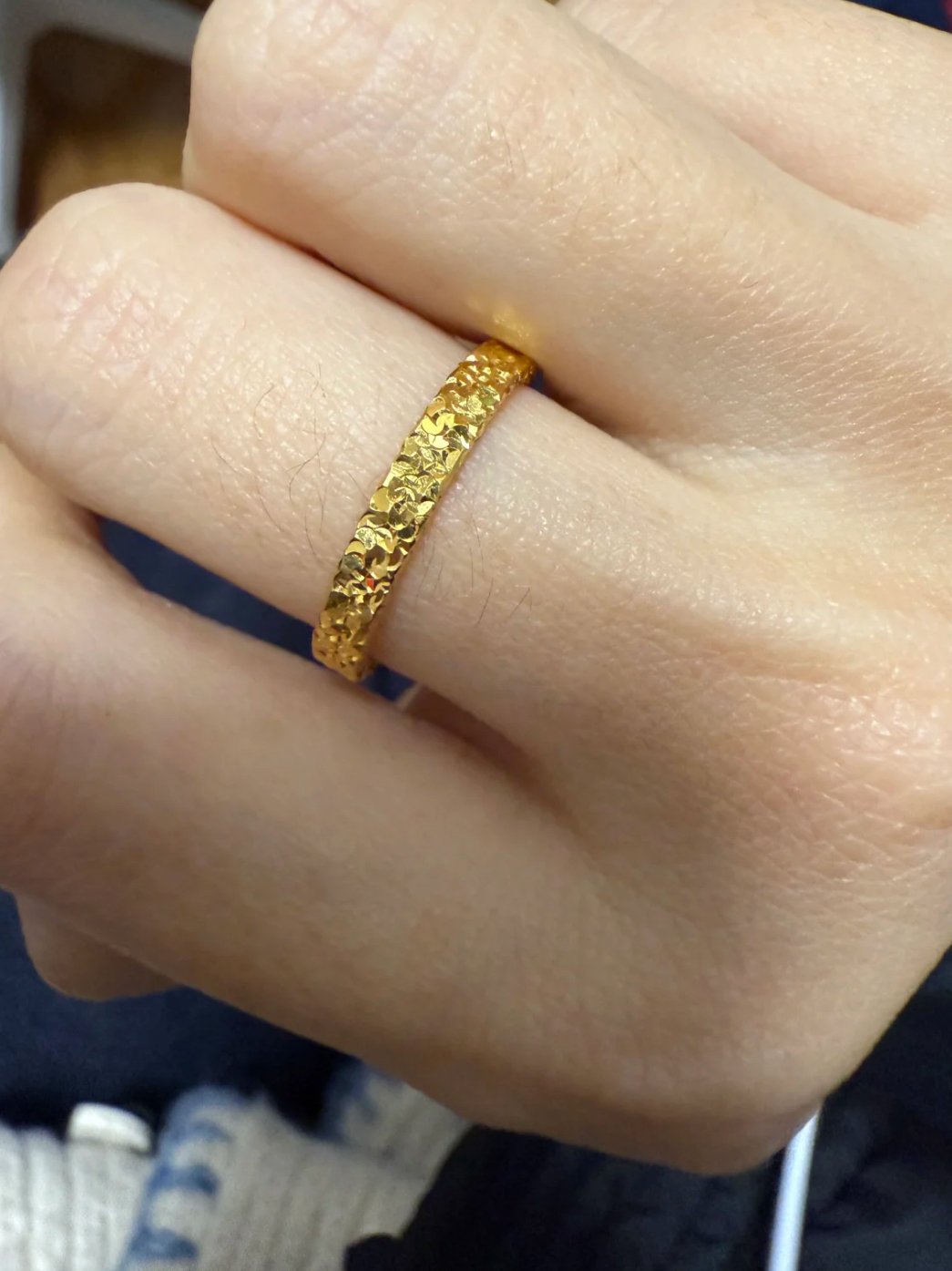 哈哈哈哈标题党一下!“碎碎冰”足金戒指,真的超好看!在阳光下特别耀眼。简约的设计,适合各种场合佩戴,无论是日常出行还是参加活动都很合适。