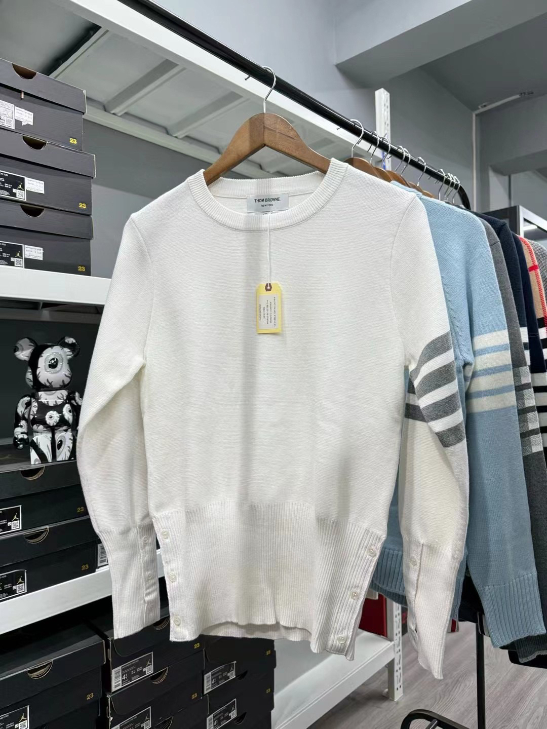 本篇笔记关联了Thom Browne 经典四条纹修身美利奴羊毛棉质针织领开衫外套 男女同款 FKC207A 白、Thom Browne 休闲百搭拉链帽衫 男女同款 MKT0O2A- 00011-415 蓝、THOM BROWNE 格纹提花小狗毛衣 男女同款 MKA303A00219 深灰色等商品,为用户提供真实的使用体验和购买参考。