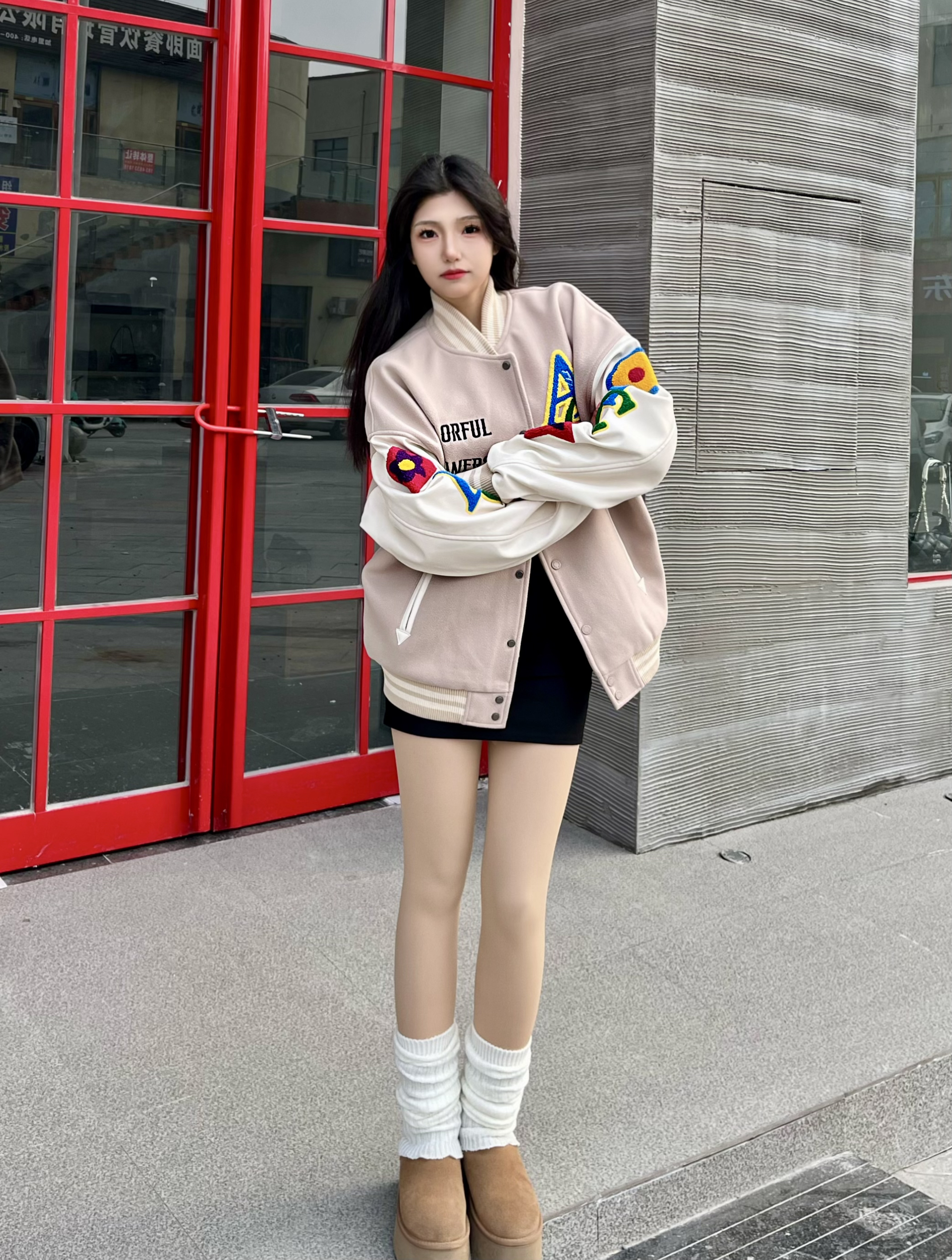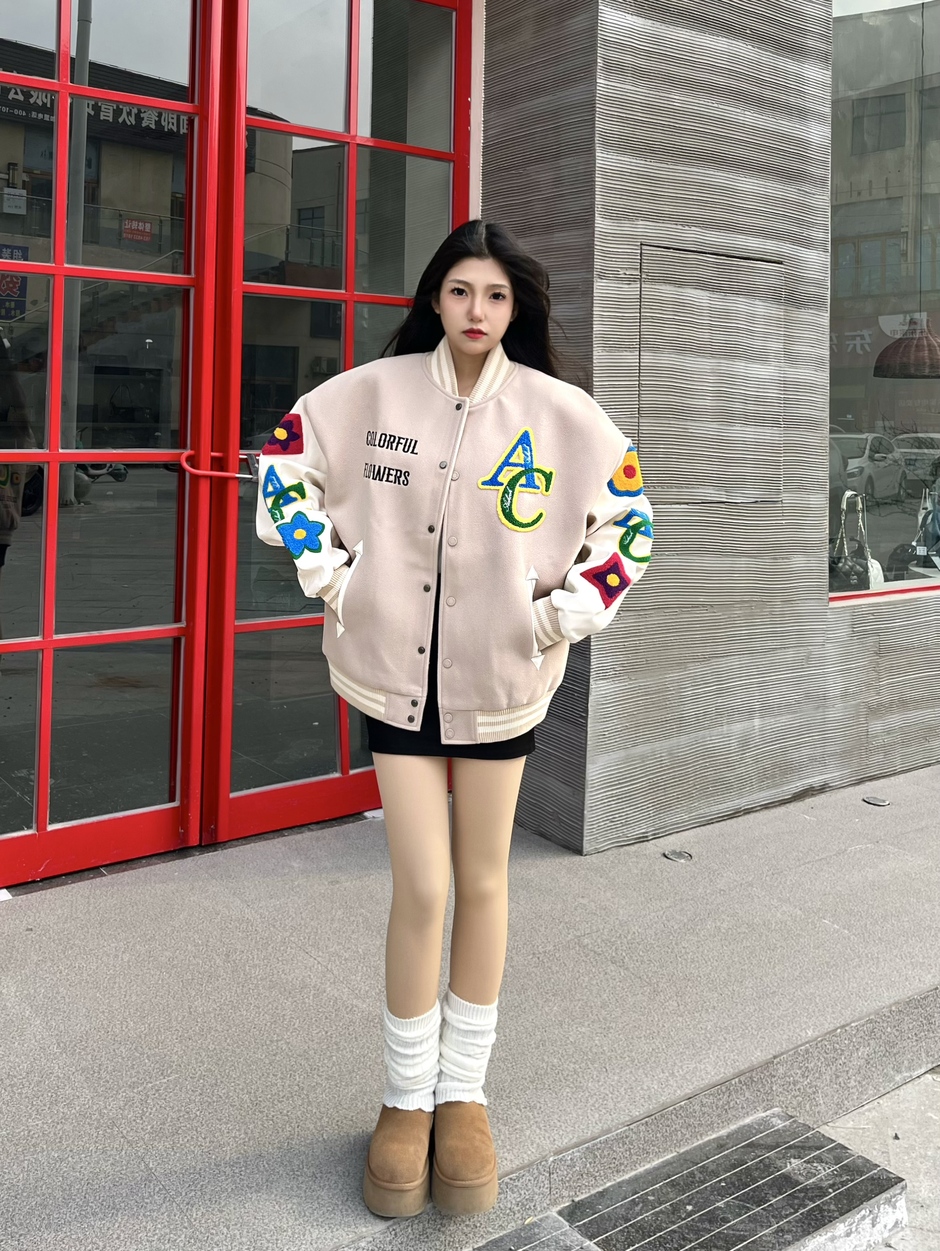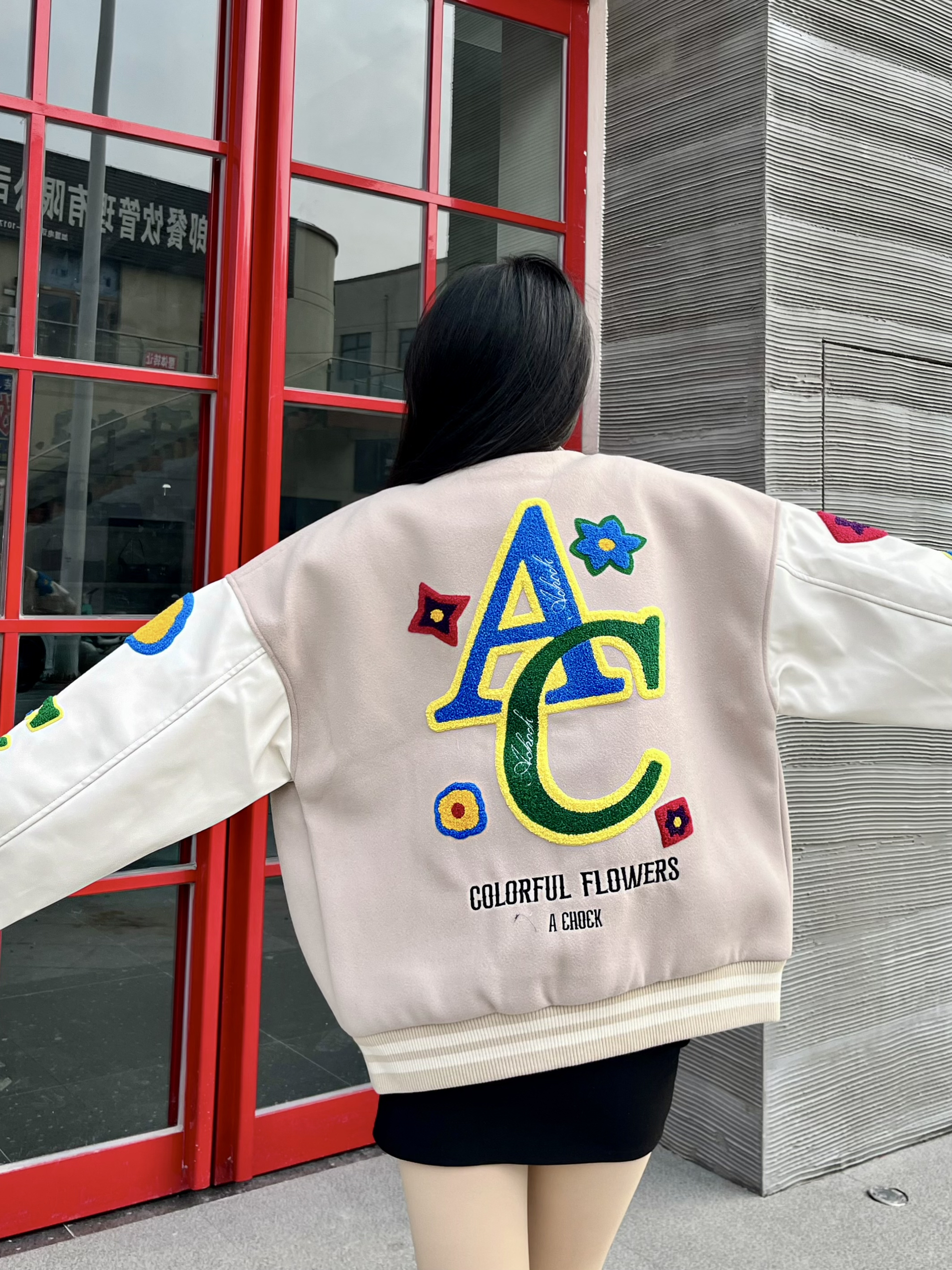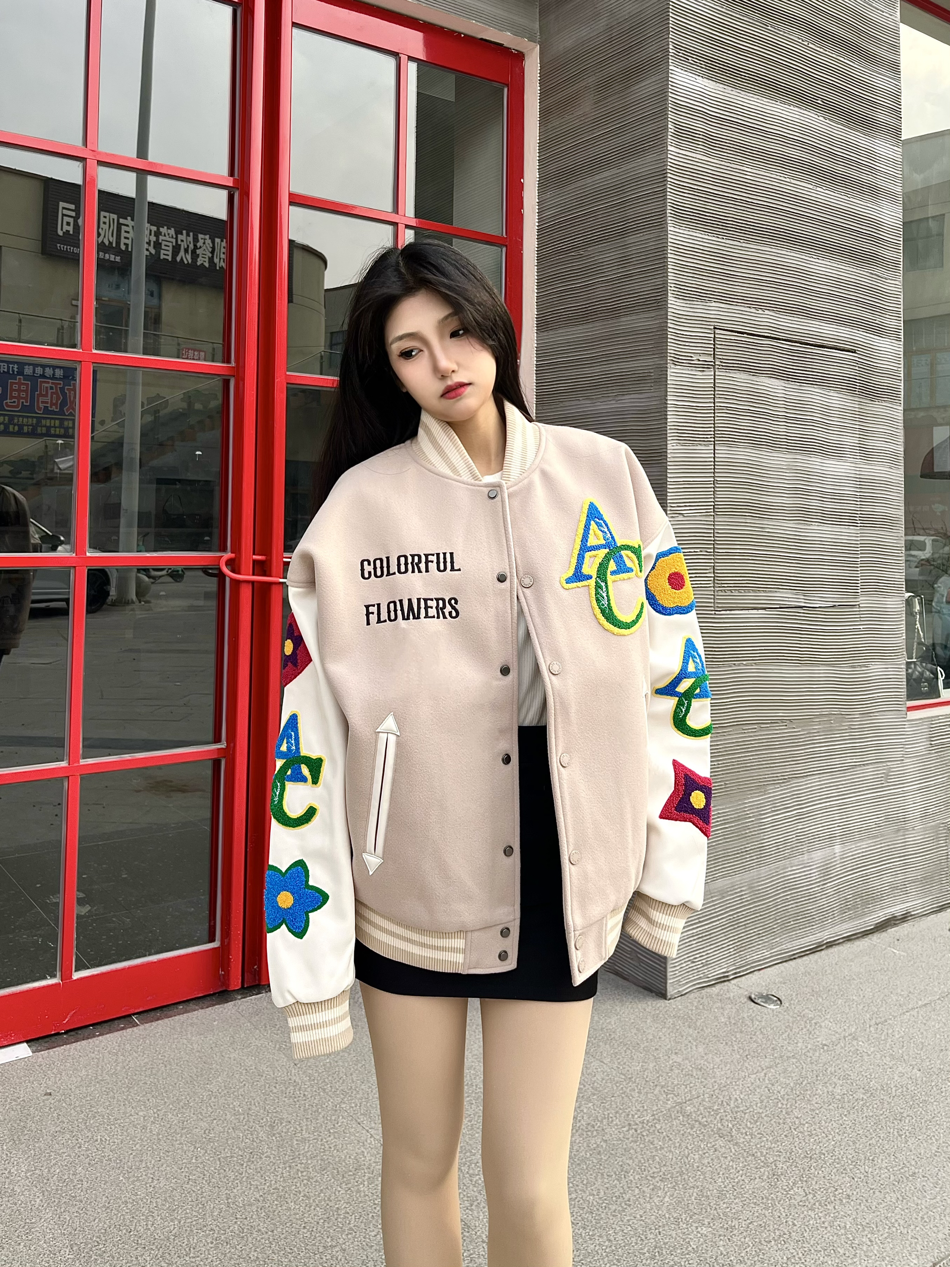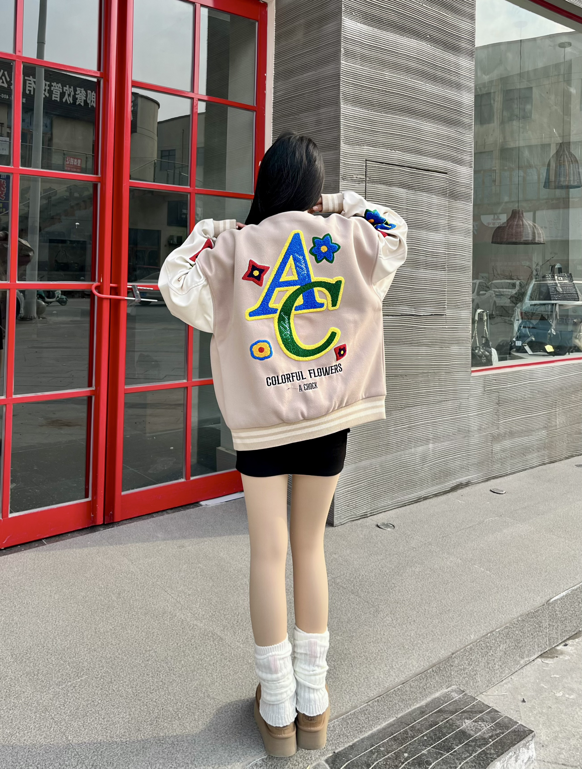 和achock一起city walk噜💓 真的有被这一件惊艳到 冲着朱志鑫同款来的✨✨ 这件是一个呢子➕皮革拼接 再加上彩色的毛巾刺绣 真的让这件衣服有层次感🫧🫧 美美嘟!很厚实!!! 而且是属于比较百搭 但是很吸睛的款🐰