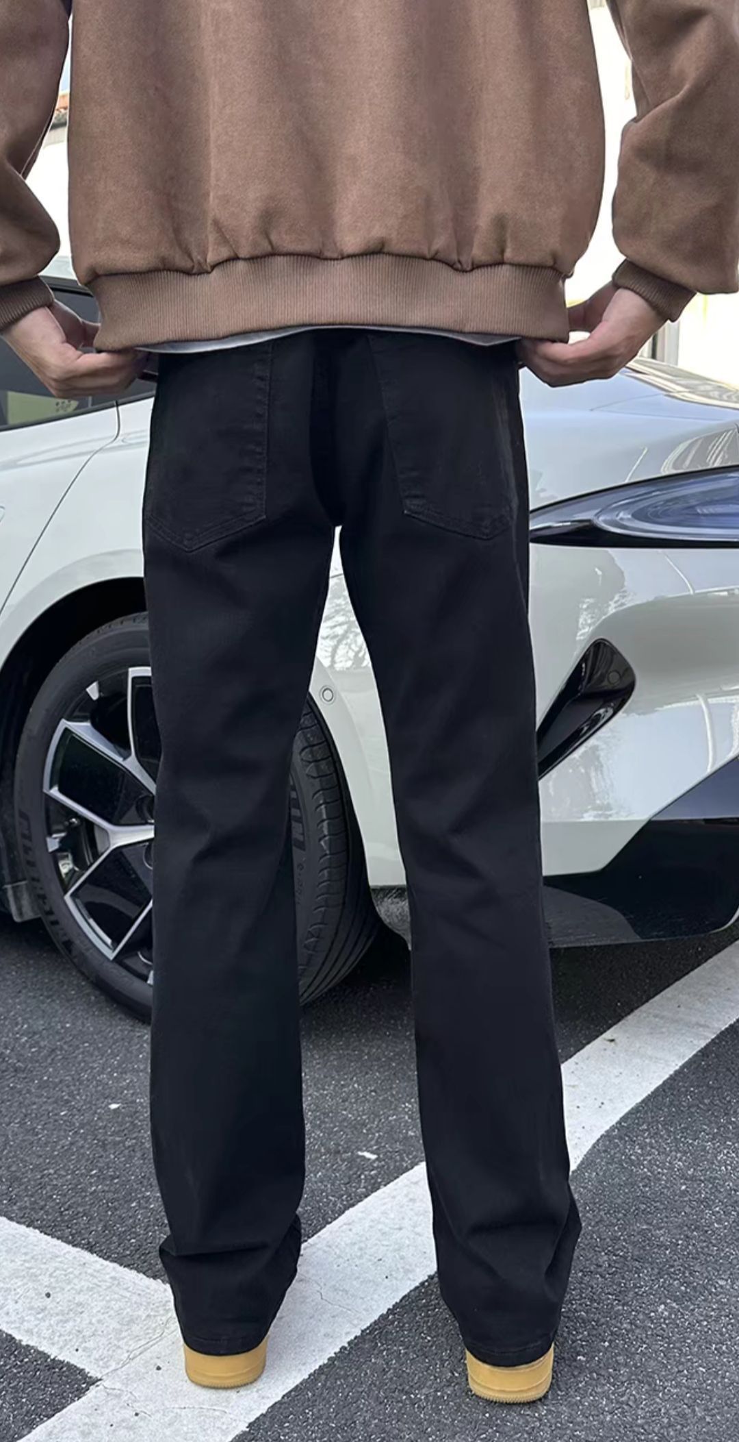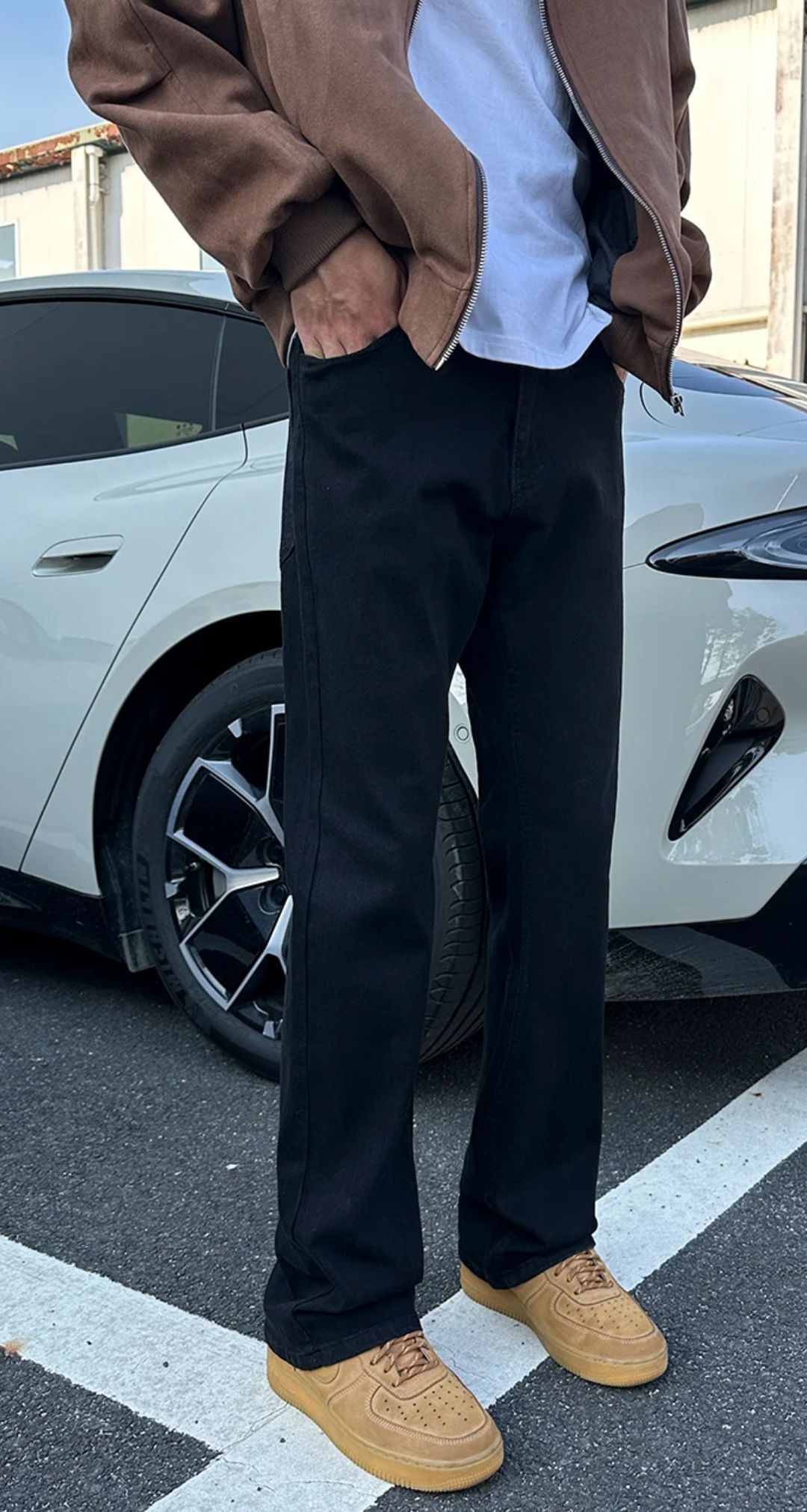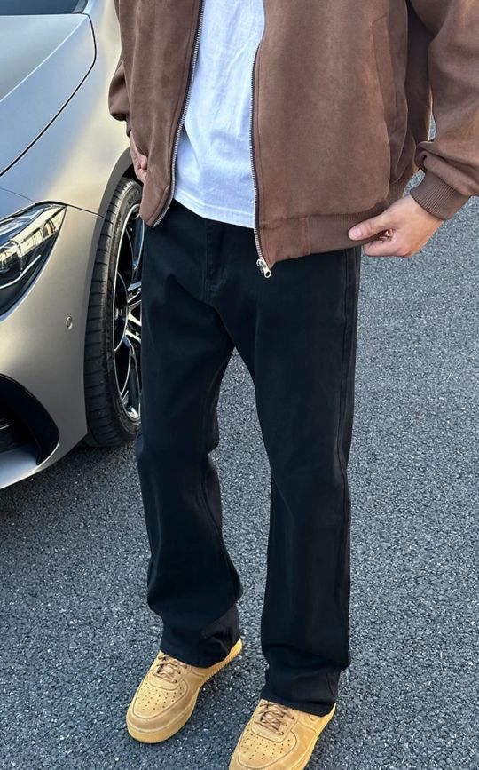 高级感爆棚的黑牛仔裤,绝对是秋冬潮男的心 头好! 显瘦直筒设计,轻松拉长腿部线条,美式高街风格,让每一步都散发着不羁的魅力。 加上微喇的设计,瞬间提升了时尚感,绝对是百 搭衣橱的炸街神器