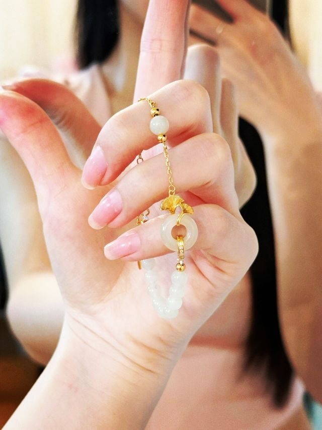 家人们,情人节的脚步越来越近,礼物还没选好的看过来!这款中国黄金「三生有杏」手链,绝对是今年情人节的王炸礼物💖 圆润的青白玉珠子,搭配精致的S925银配件,质感拉满。中间的“杏”形玉坠,雕刻细腻,寓意着“三生有幸”,把这份浪漫与祝福都戴在她的手腕上。 古风设计超有韵味,日常佩戴或者搭配汉服、旗袍,都能轻松拿捏氛围感,让她成为人群中的焦点✨ 而且它是中国黄金出品,品质有保障,品牌包装也超精美...