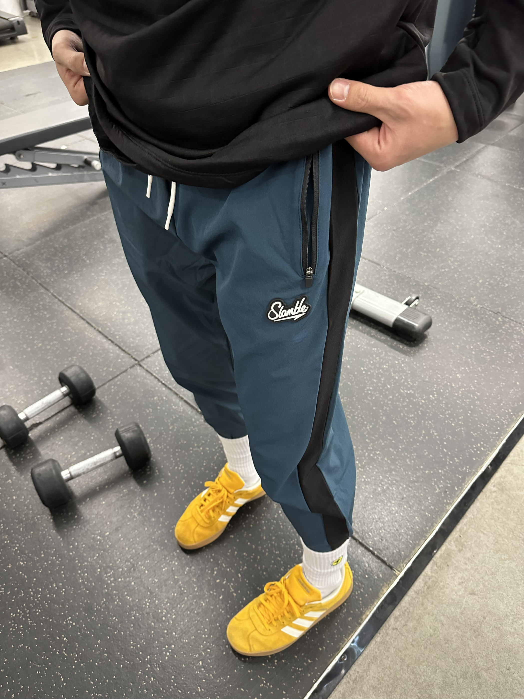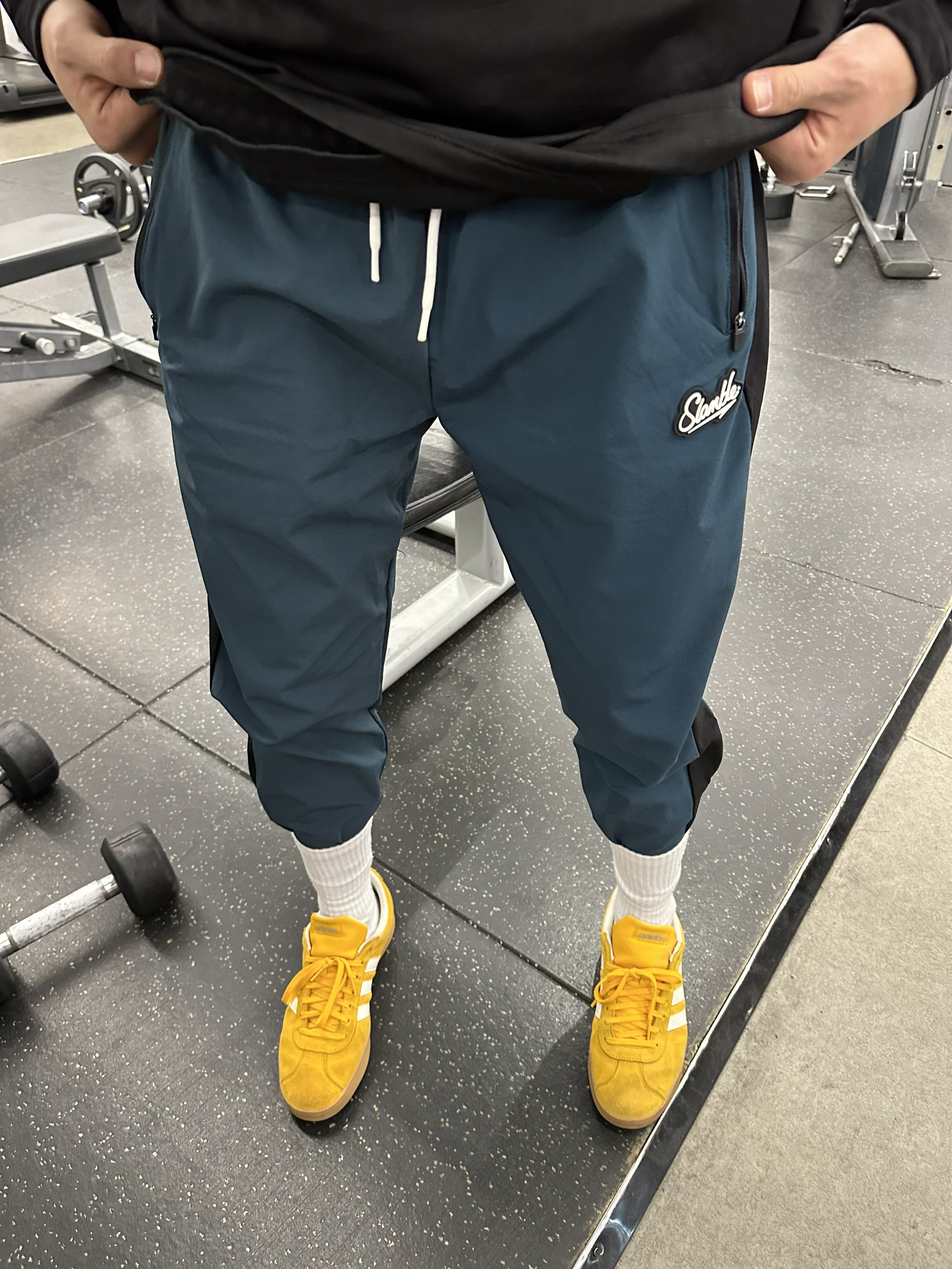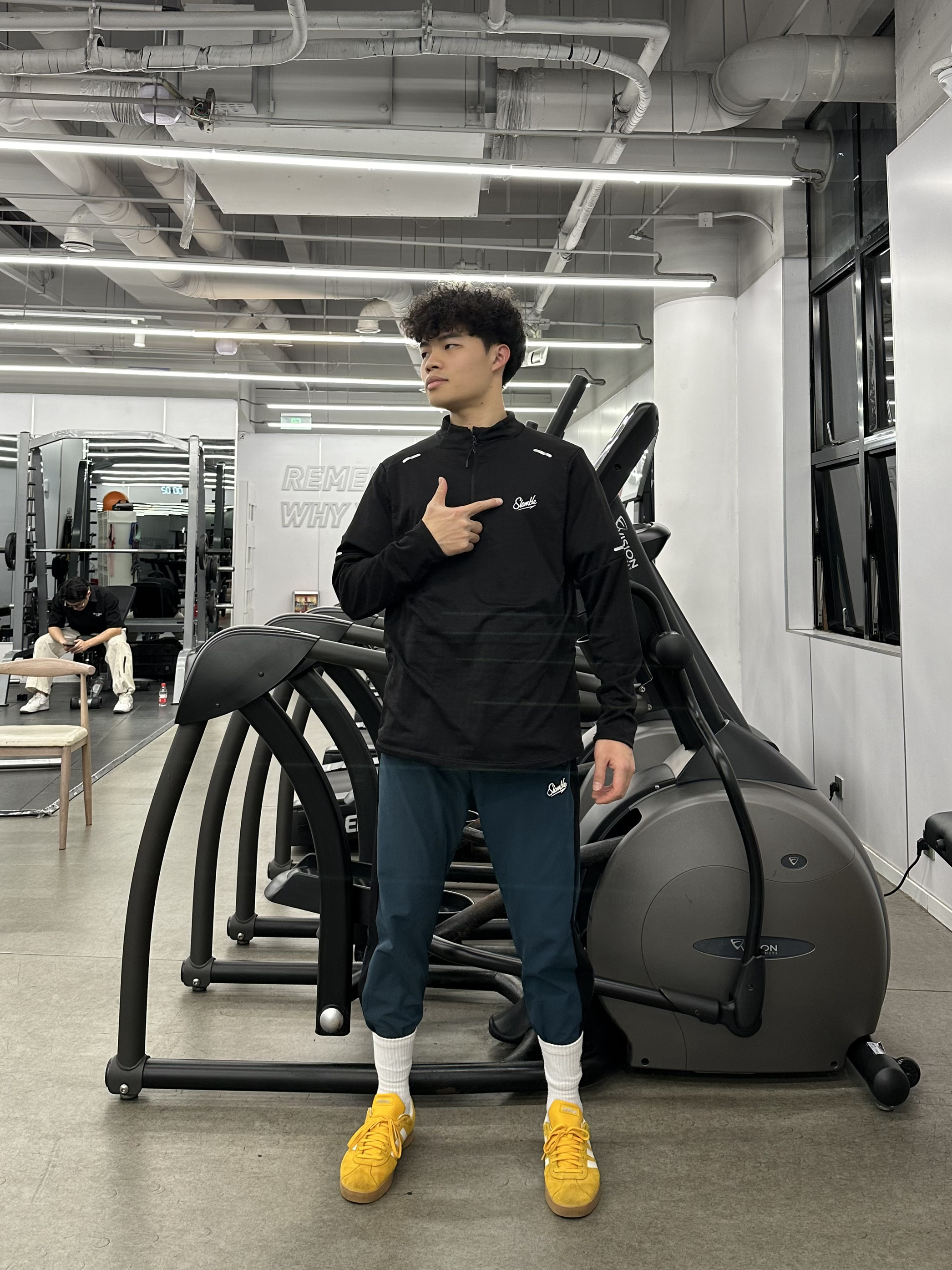 身高|体重:180 70kg 🧍♂️ 穿搭风格:美式休闲运动 👔 上衣:Slamble 👖 下装:Slamble 👟 鞋子:Adidas