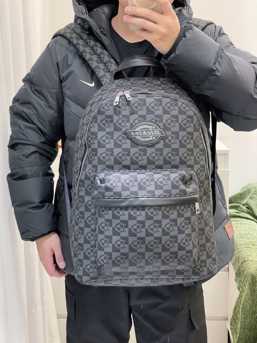 本篇笔记关联了Dickies/帝客 常规情侣款大logo皮质大容量轻便学生通勤电脑潮流时尚拉链开合聚氯乙烯拼聚氨酯人造革书包背包双肩包 黑色 DK-B092等商品,为用户提供真实的使用体验和购买参考。