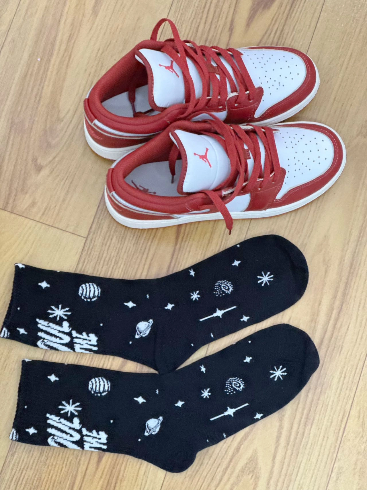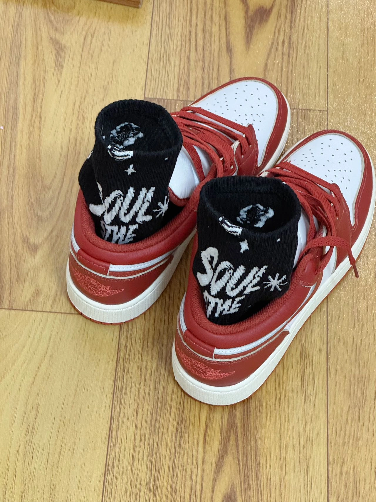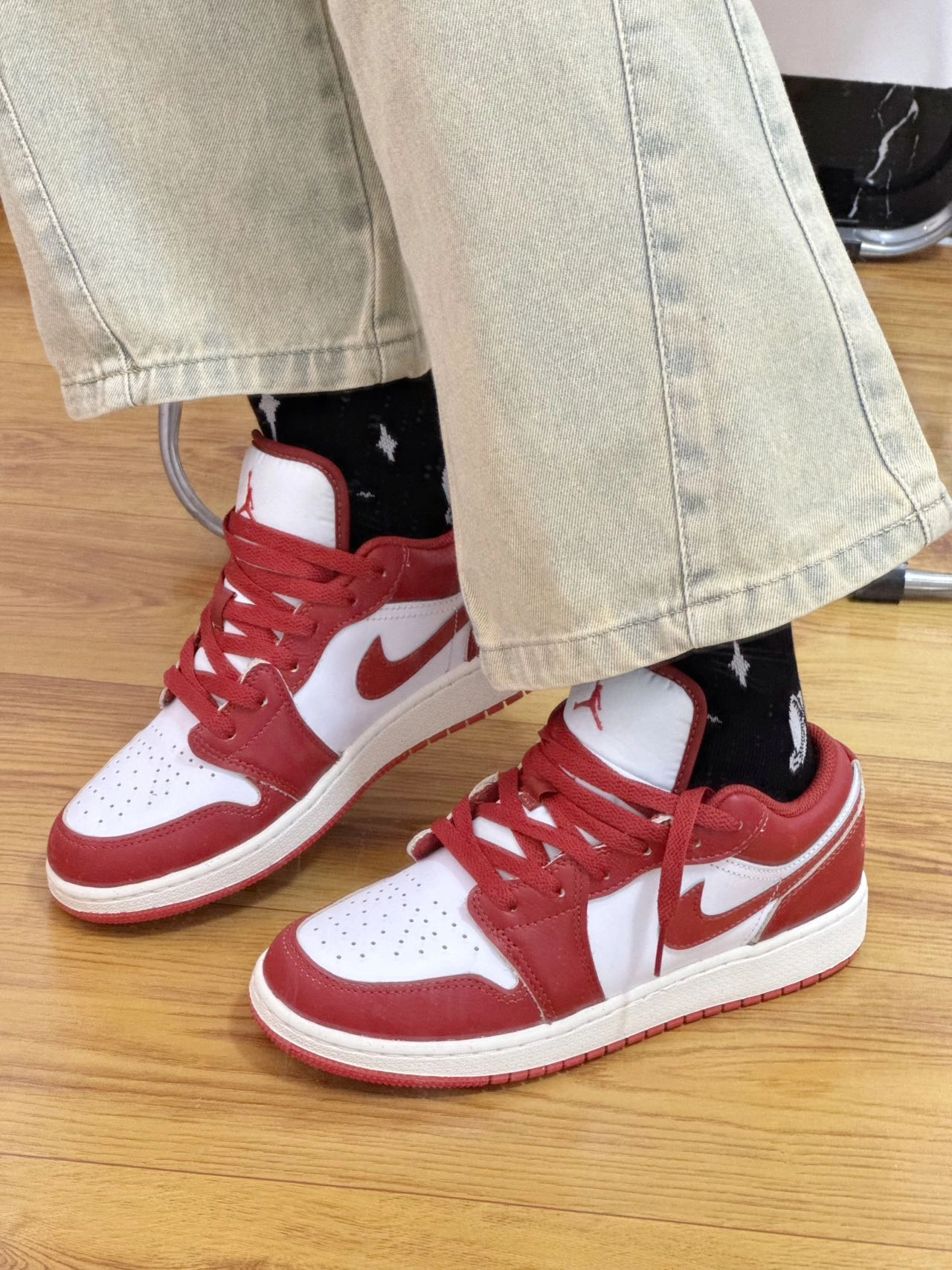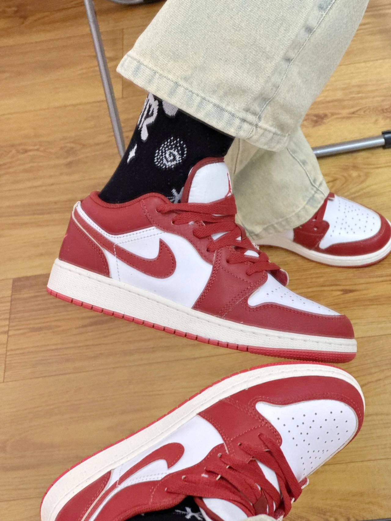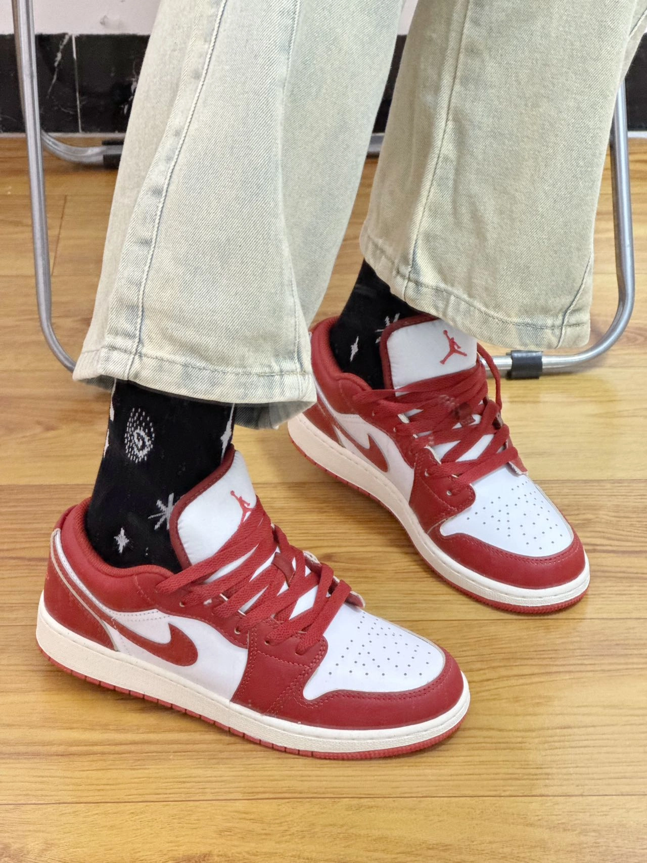 好袜配好鞋 红色AJ真的巨显白 黄黑皮轻松驾驭 黑色袜子🧦搭配起来 非常有氛围感 搭配牛仔裤真的绝了!🥹 鞋 人节礼物 袜子推荐