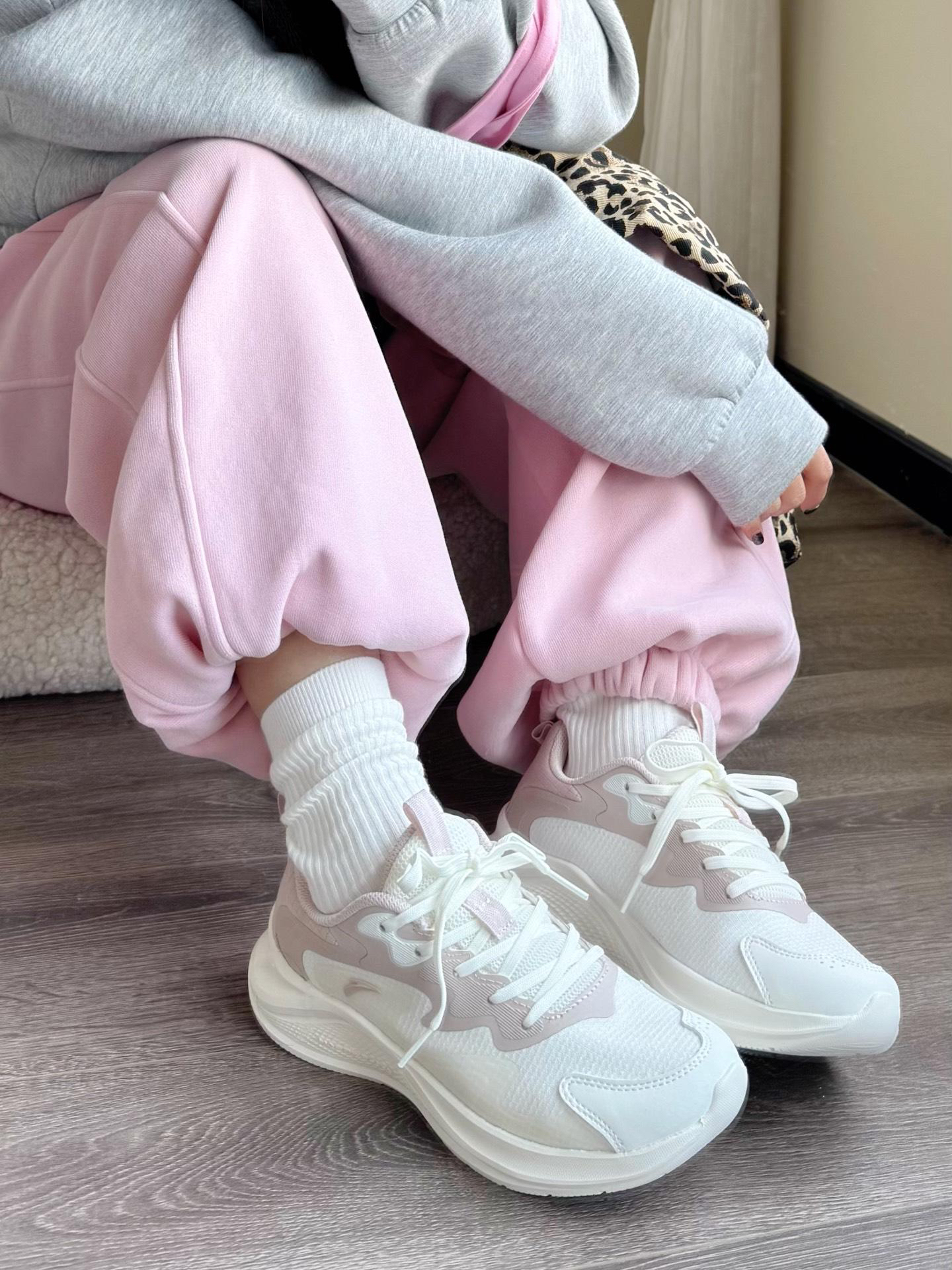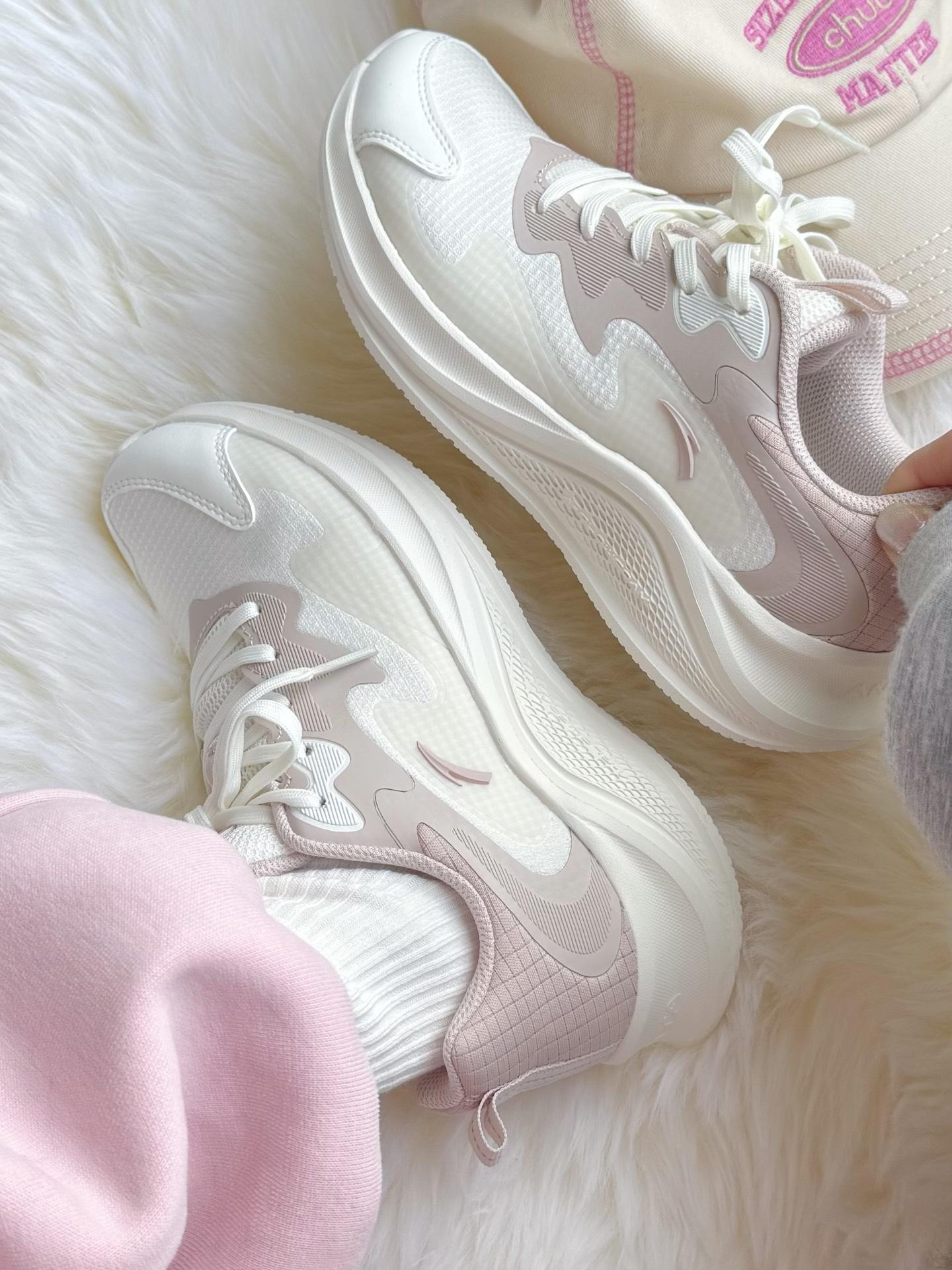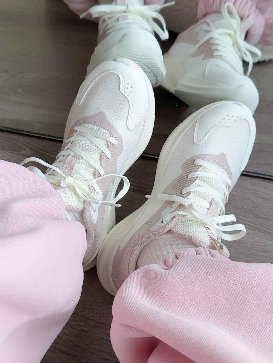 奶呼呼的豆沙粉少女配色 1开头也能拥有美丽跑鞋咯 低饱和看上去更加温柔 鞋子又轻又软还透气 妥妥的开学体测好搭子呀!!