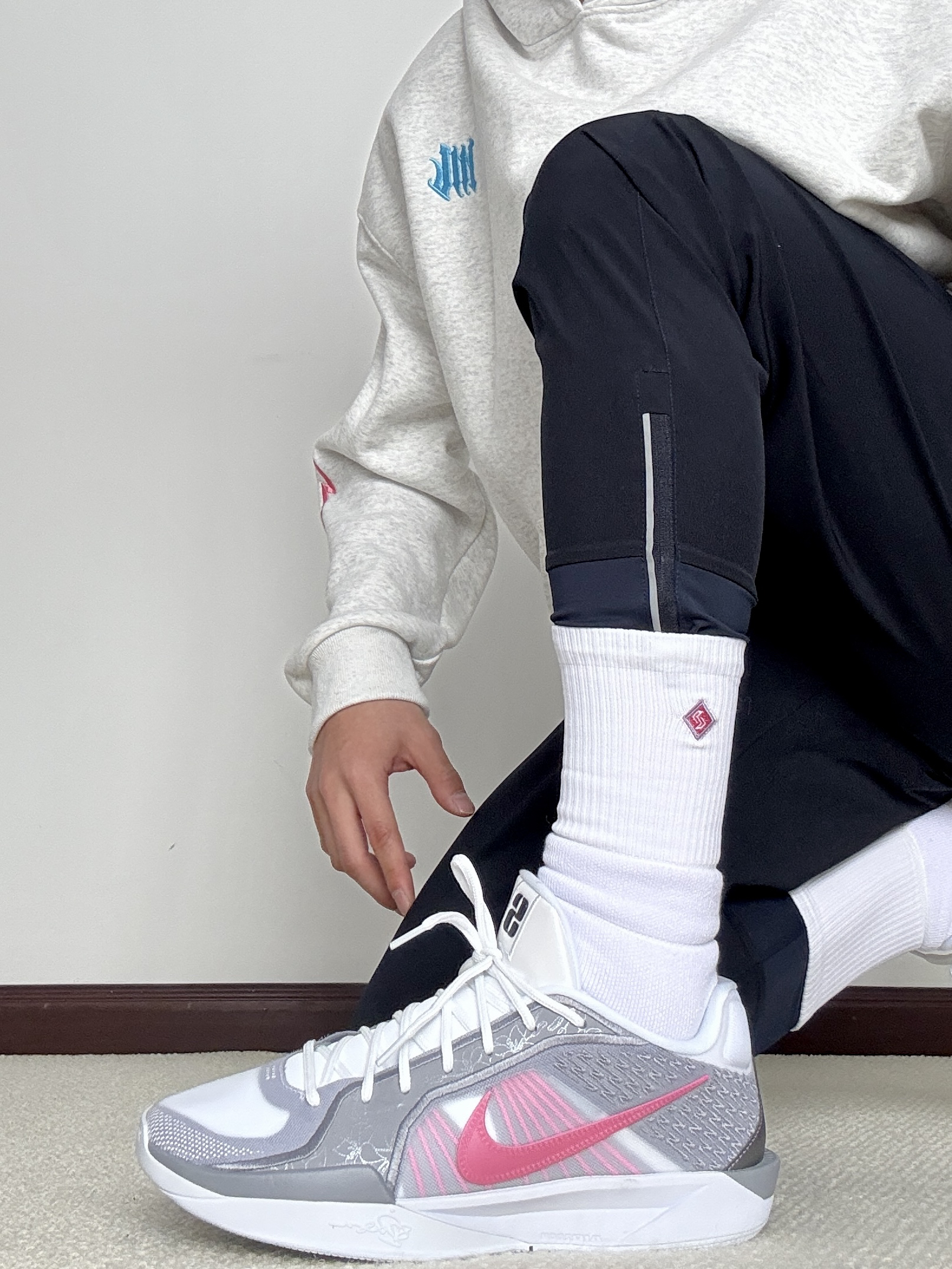 oi哈喽大家好这里是爱球鞋穿搭的小学生的故事好看的穿搭配上喜欢的球鞋打球能有加成吗? 👔👖选择一件灰蓝粉卫衣袖子闪电logo很帅气搭配一条拉链长裤款式喜欢运动穿起来特别爽 👟sabrina2灰粉配色鞋身鞋型都是我很喜欢的流畅感很有速度的感觉!上脚好看打球穿很棒