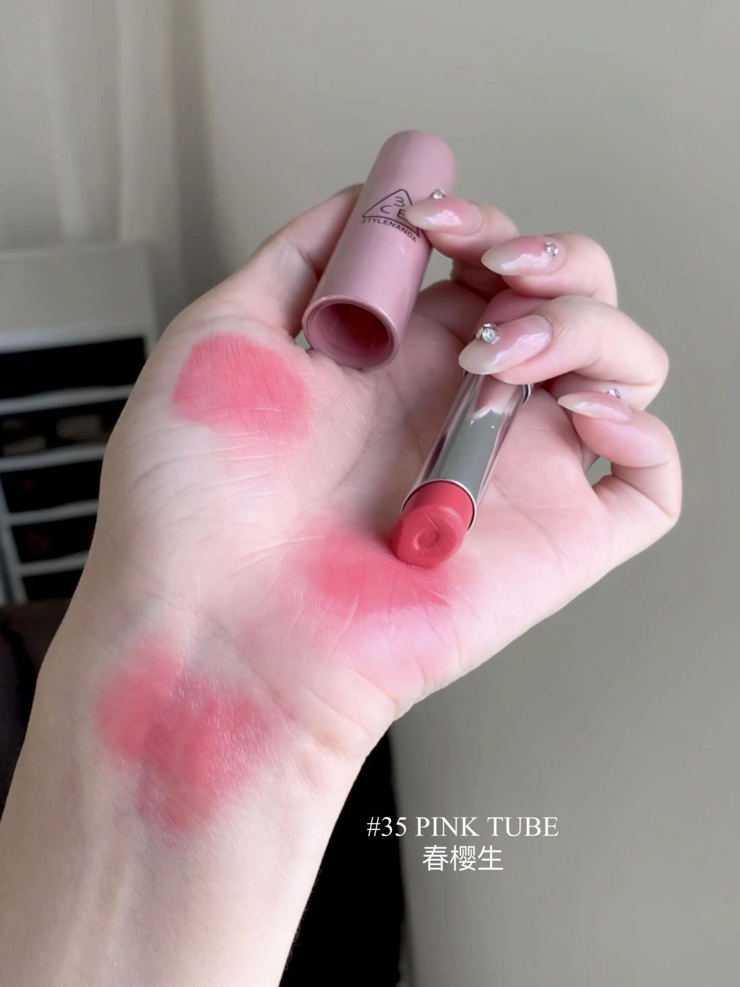 💓3CE真的很懂我们淡颜女生需要什么! 这次上新的好气色润唇膏,miu风的外壳真的很高级 质地是俺想要的那种水duangduang的嫩妹又显气色的感觉 是那种滋润清透又很轻盈的质地 适合温柔舒适的原生感淡妆,也有点秋冬感,蛮有韩国女主那味儿的。 清透的裸调粉,不会显得用力过猛,氧气感十足 而且每一根都含84%高保湿精粹 我平时都是直接涂!根本就不用唇膏打底 一天下来都不会干巴,就是随手拿出来当唇膏...