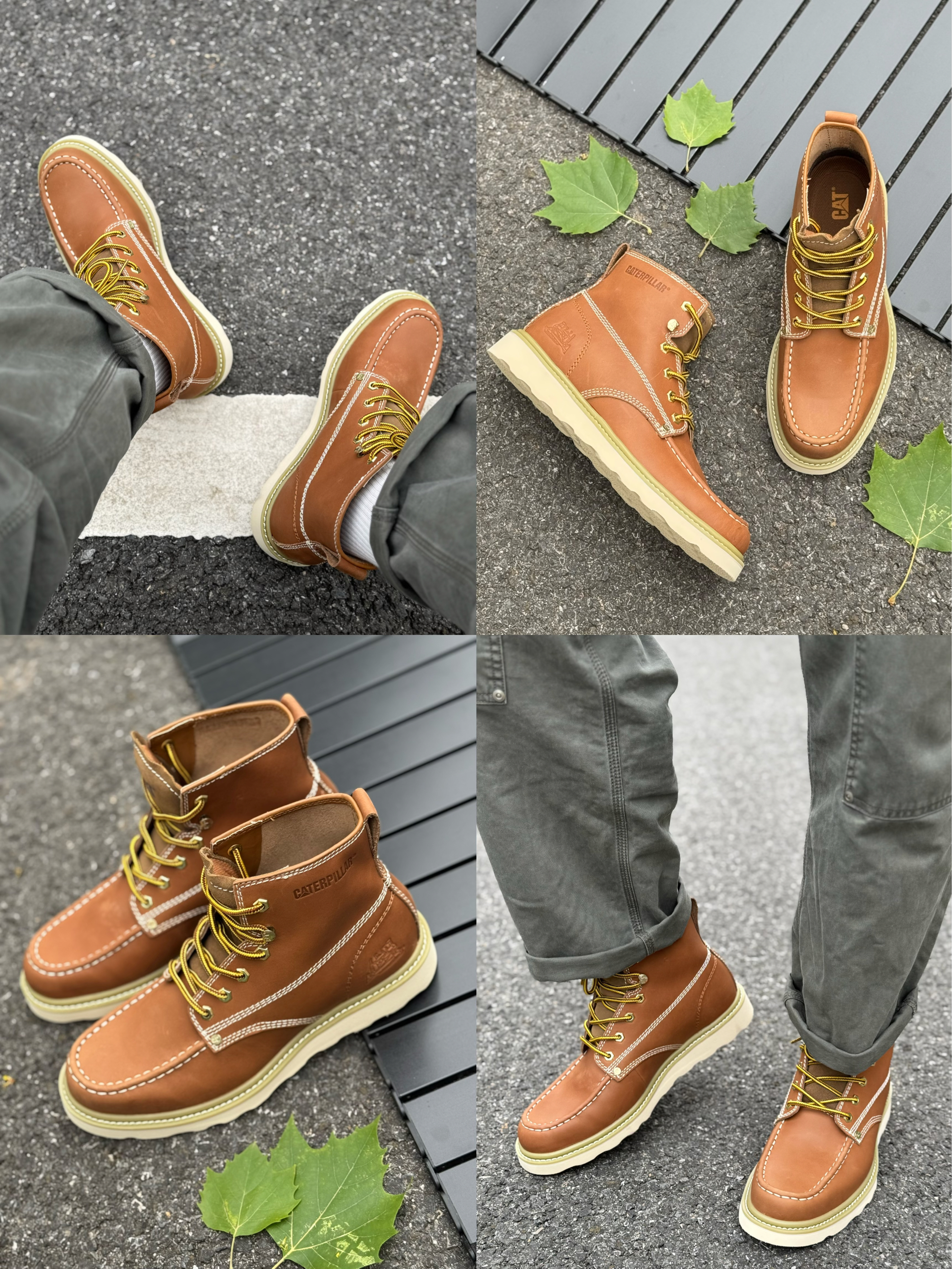 送男朋友的宝藏鞋子 大黄靴非常的百搭~ 带跟的设计非常的显身高! 并且是皮质的 舒服耐穿~ 送男朋友兼职无敌了!