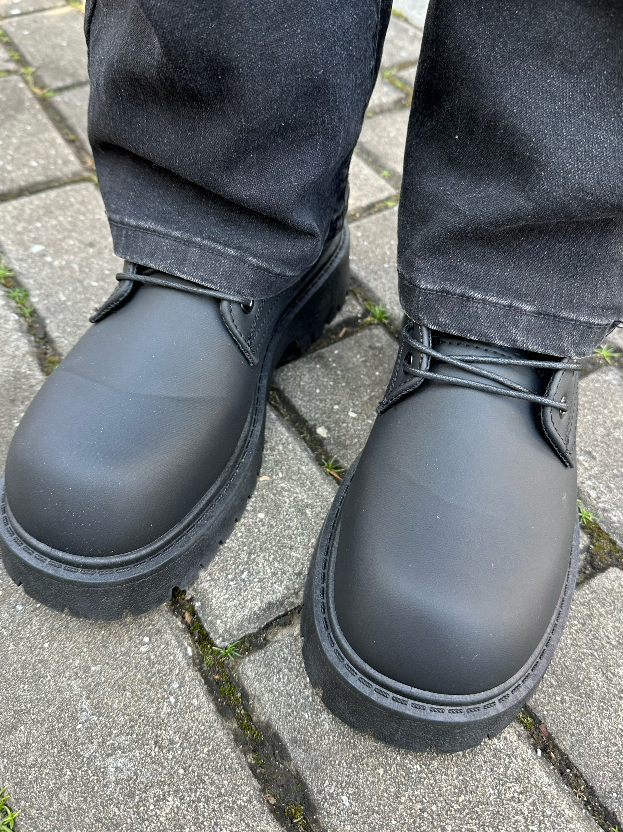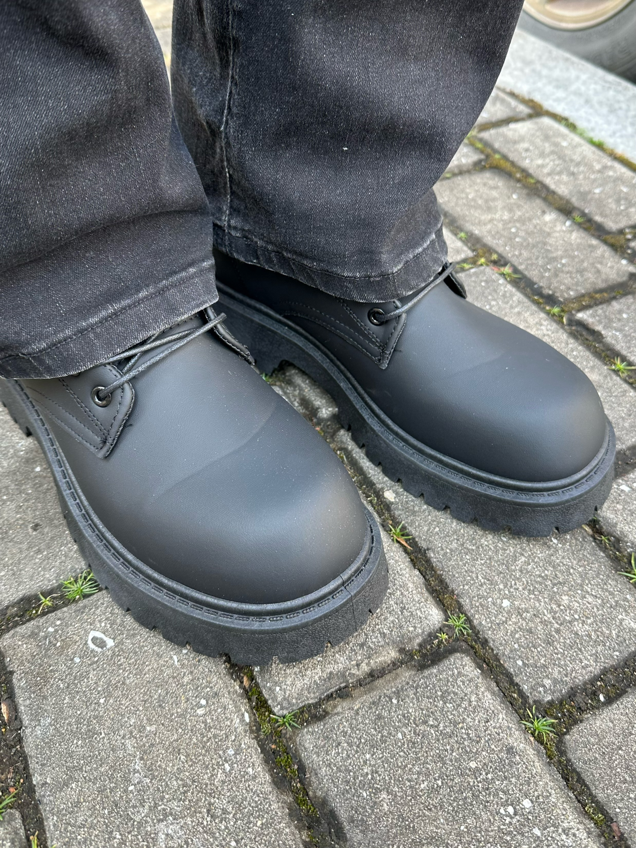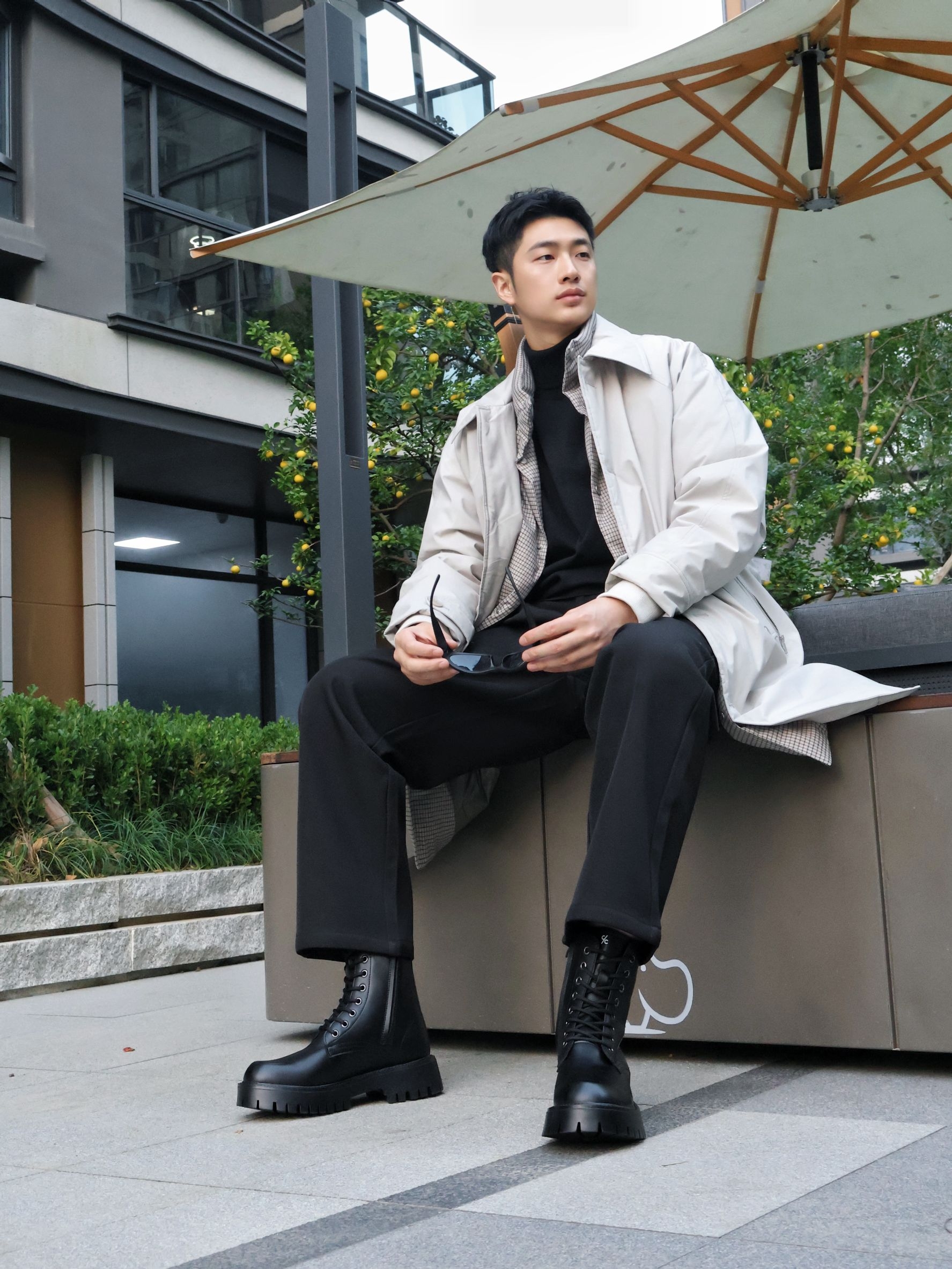 👔 turnthrtables 字母标语卫衣 👖 Voguo Relay 微喇牛仔裤 👟 凯撒 厚底时尚休闲 短筒 马丁靴 这双马丁靴的质感才是我最喜欢的 阳光一照亮亮的就是那种低调中带点帅 不偏码刚刚好很适合给穿搭加分 本人 185/75 👔 xl 👖 xl