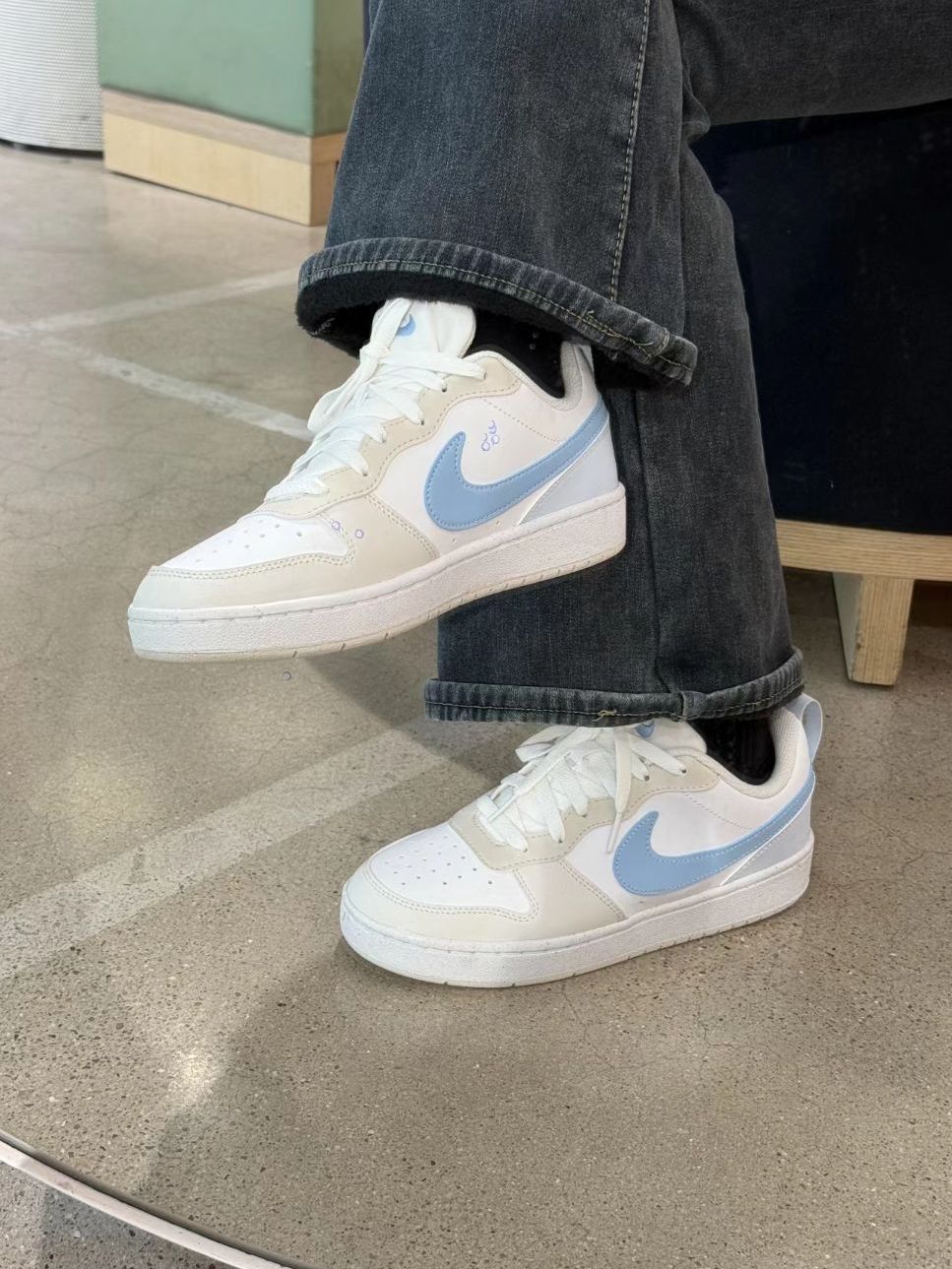 本篇笔记关联了Nike Court Borough 复古 舒适透气 防滑耐磨 轻便 防水耐穿 板鞋 运动休闲鞋 GS/白色/浅蓝色等商品,为用户提供真实的使用体验和购买参考。