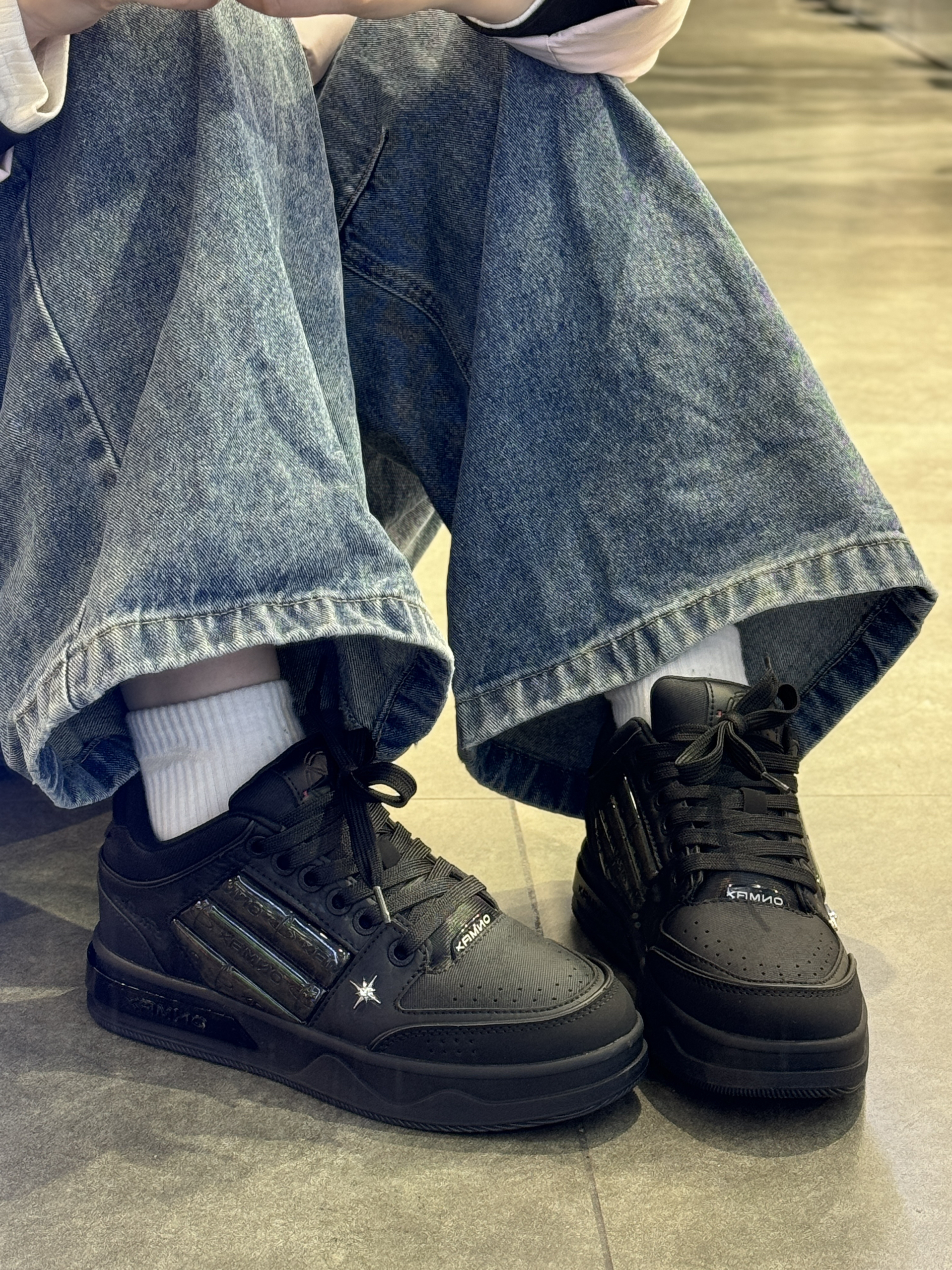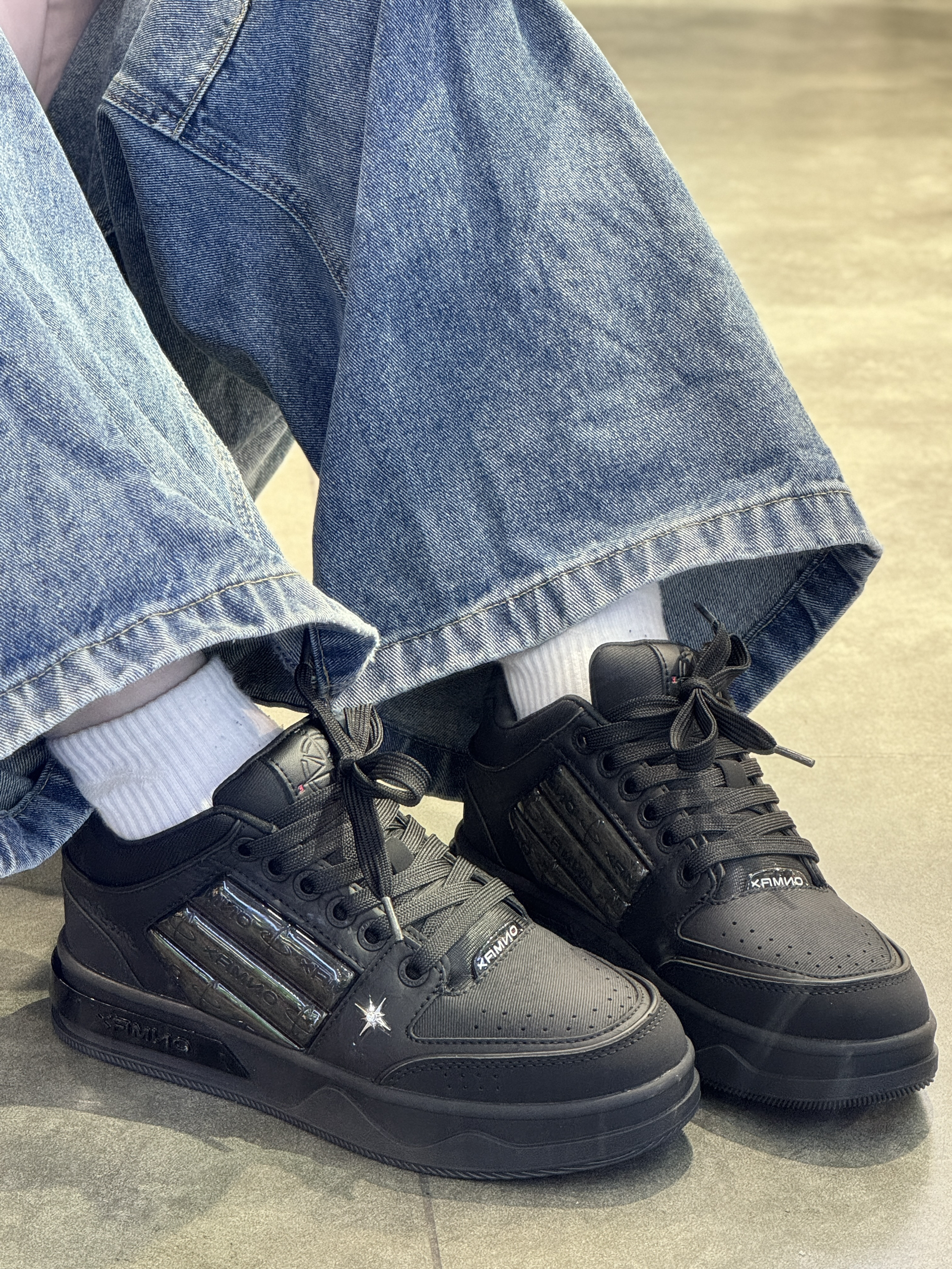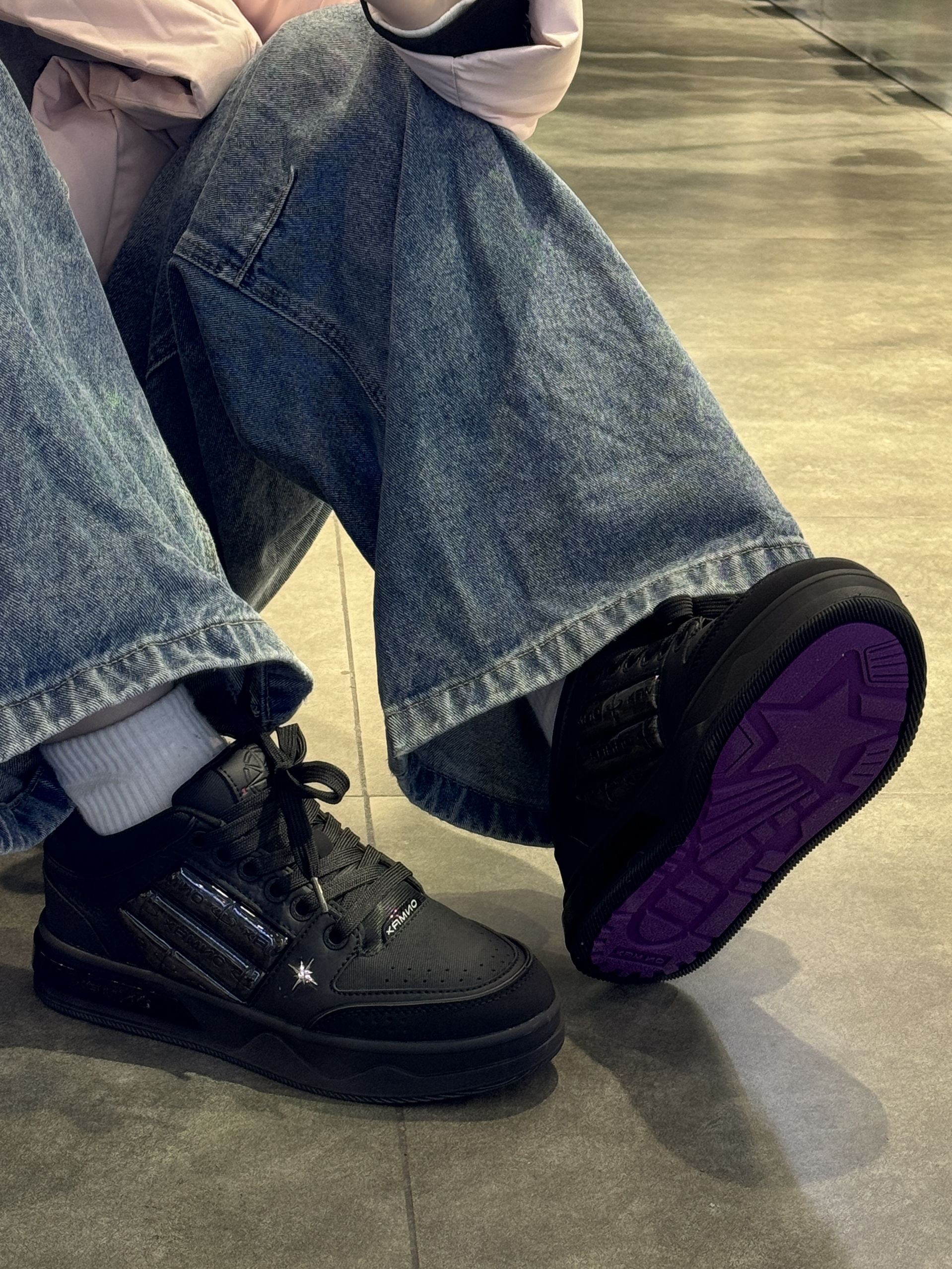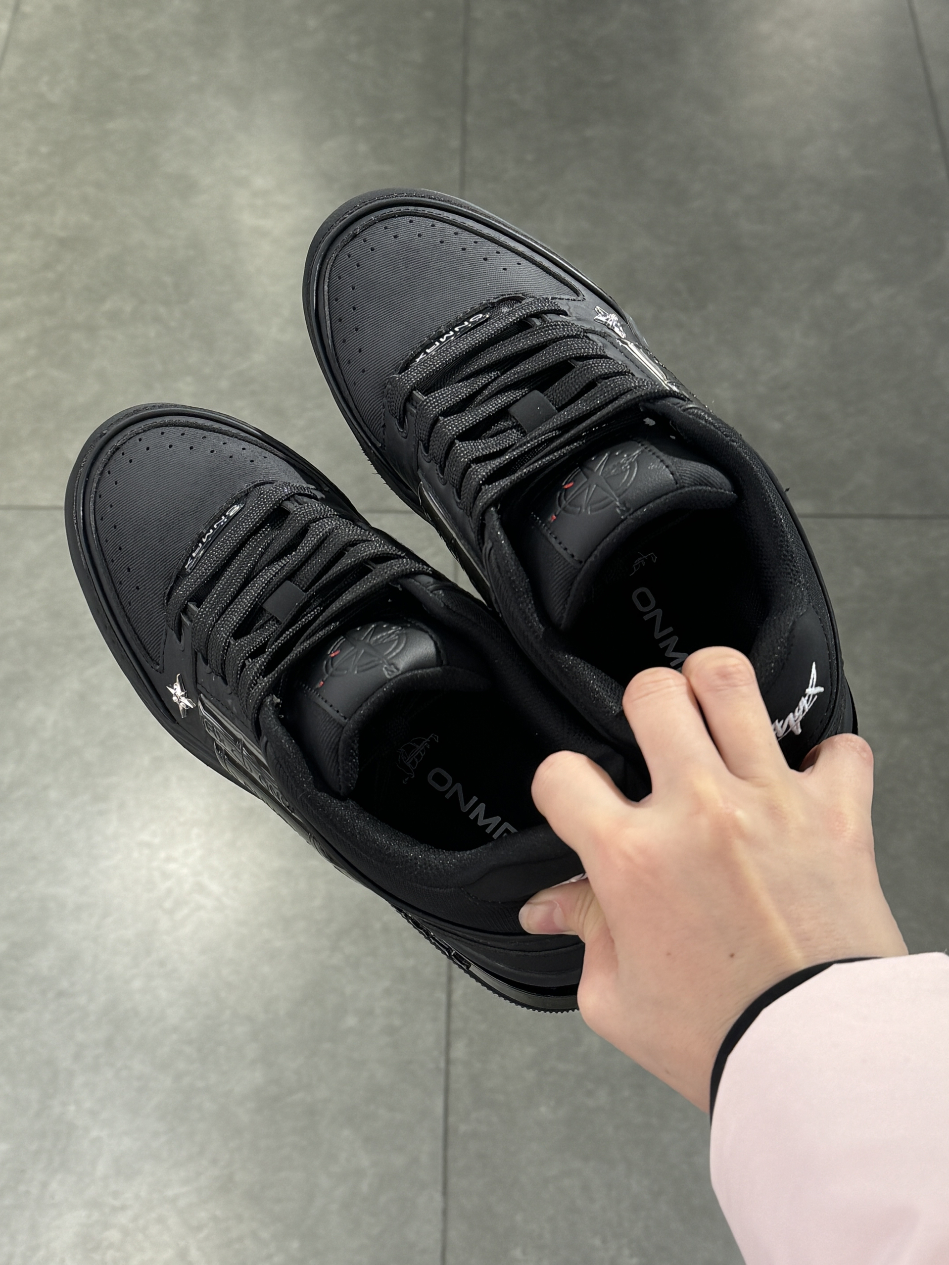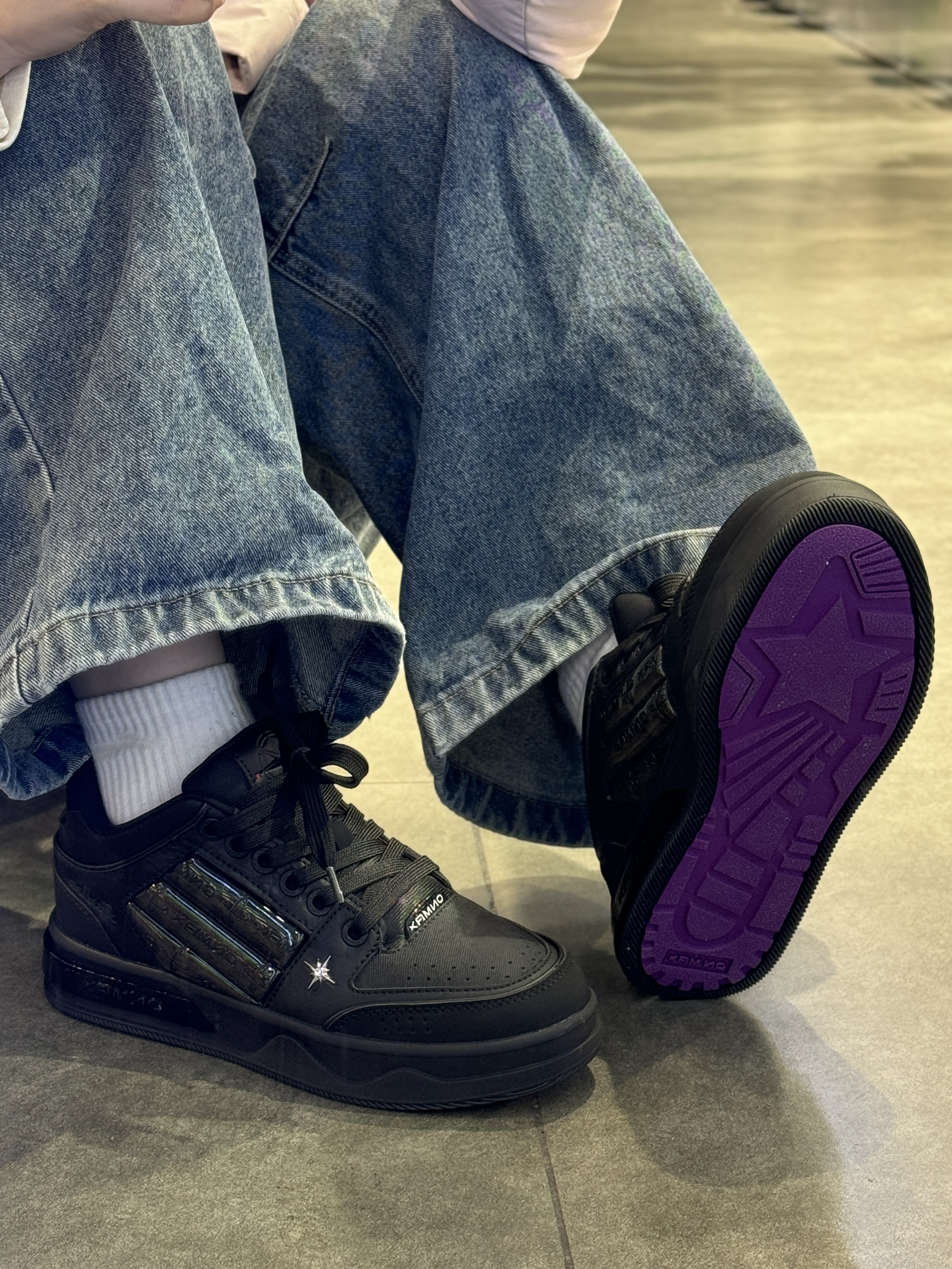 纯黑配色尊嘟有点酷耶😎 后跟刺绣设计设计感满满 上脚参考:40码 ON MAX小帆船系列穿上很修饰脚型 配色黑色为主低调大气 紫色鞋底超特别 鞋邦两侧海绵稳定脚踝 上脚很轻盈一点不笨重✌️ 日常穿搭搭深色系会很酷哟