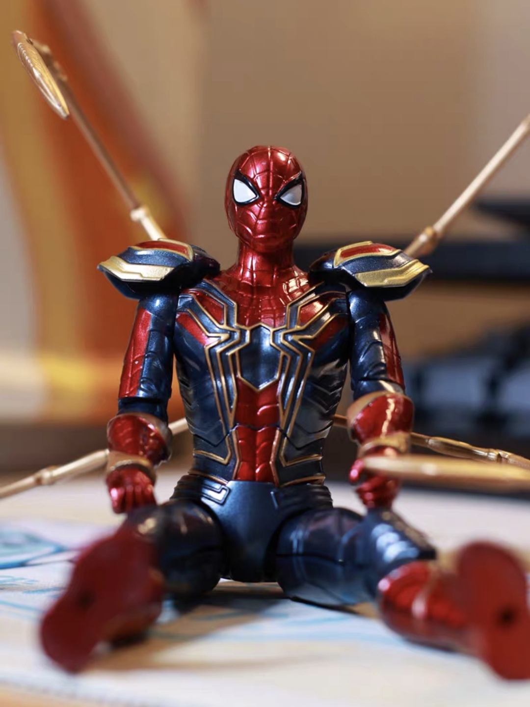 钢铁蜘蛛侠,酷炫蜘蛛侠出击!小比例钢铁蜘蛛侠真不错!! 🌟主体以金属色纹理搭配经典红蓝主色调,预涂装漆面设计; 🌟1/12比例拼装设计,超24处关节可动,轻松完成各种动作 🌟替换金属机械蜘蛛爪,搭配蜘蛛网特效件,还原电影战斗形态 这么还原的手办,入手真不亏!!图源网络,侵删!