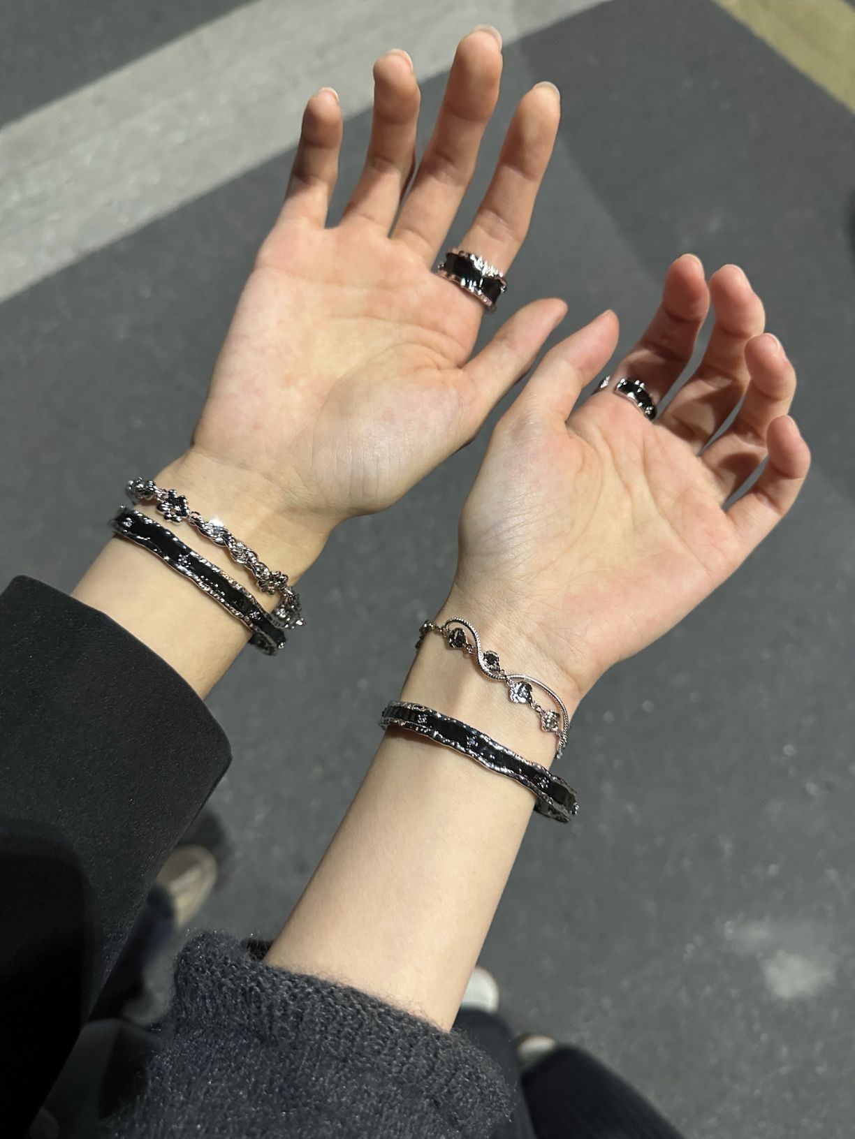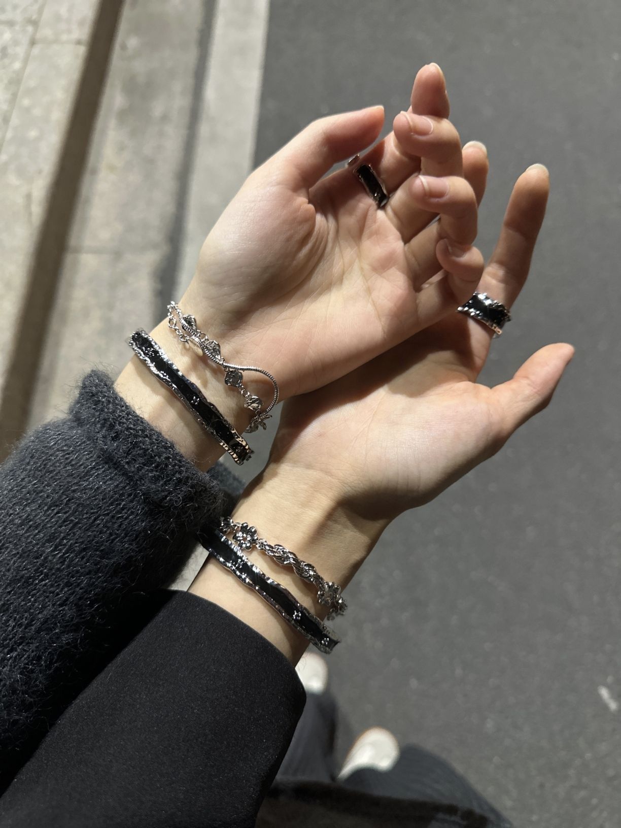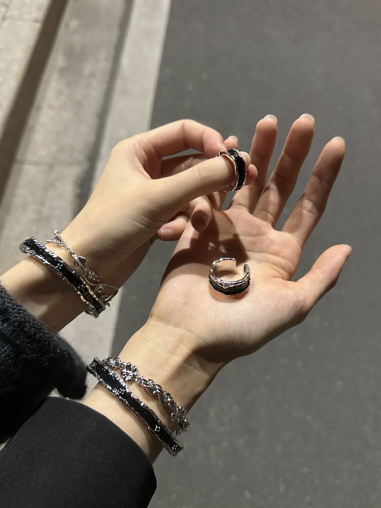 终于找到了情侣秋冬帅气氛围感叠戴 是初印家的手镯和戒指两件套 暗黑色系列,和对象戴上效果很酷这几款都很有质感,适合秋冬搭配换另外一种风格过冬也很酷啊