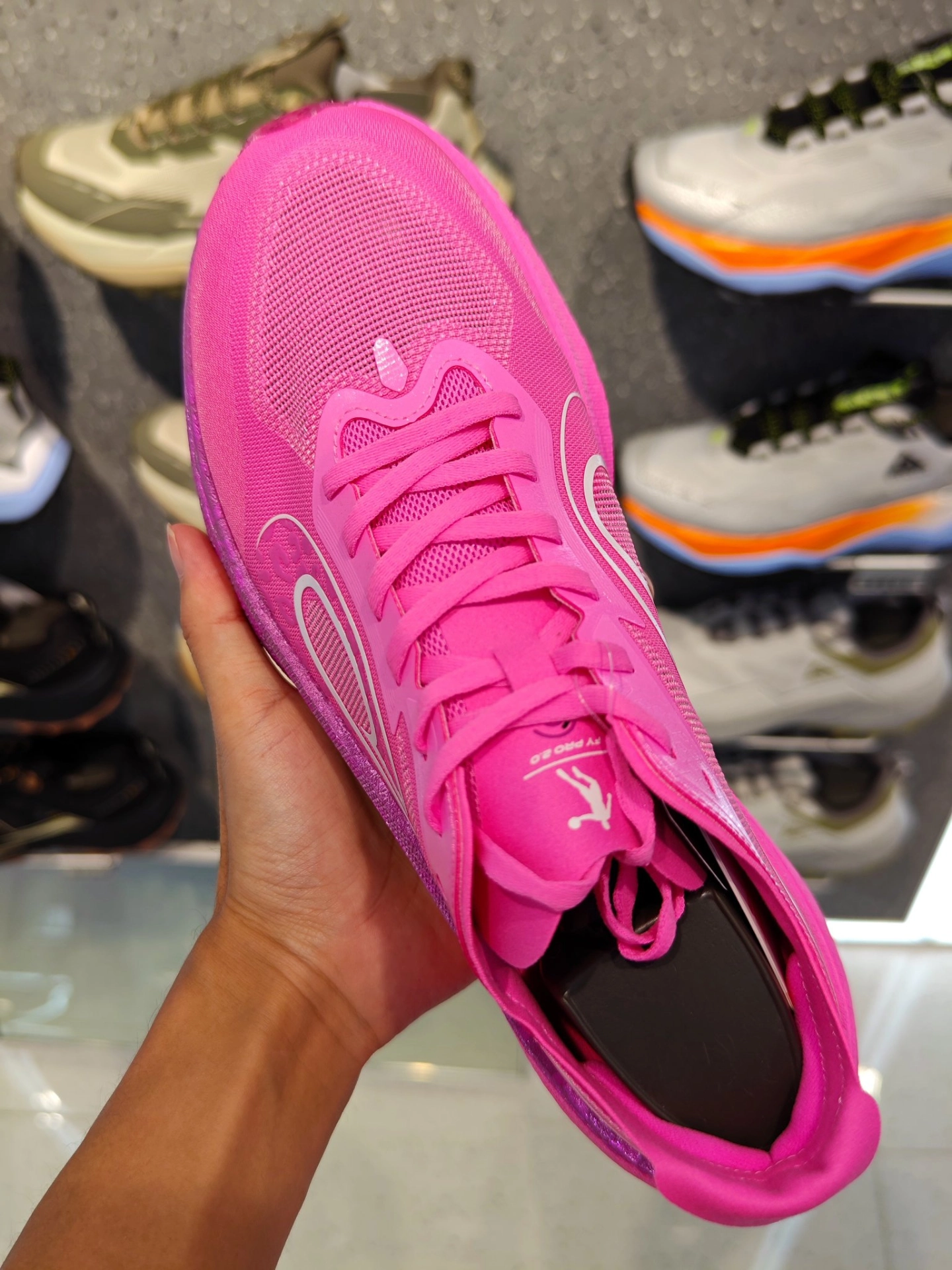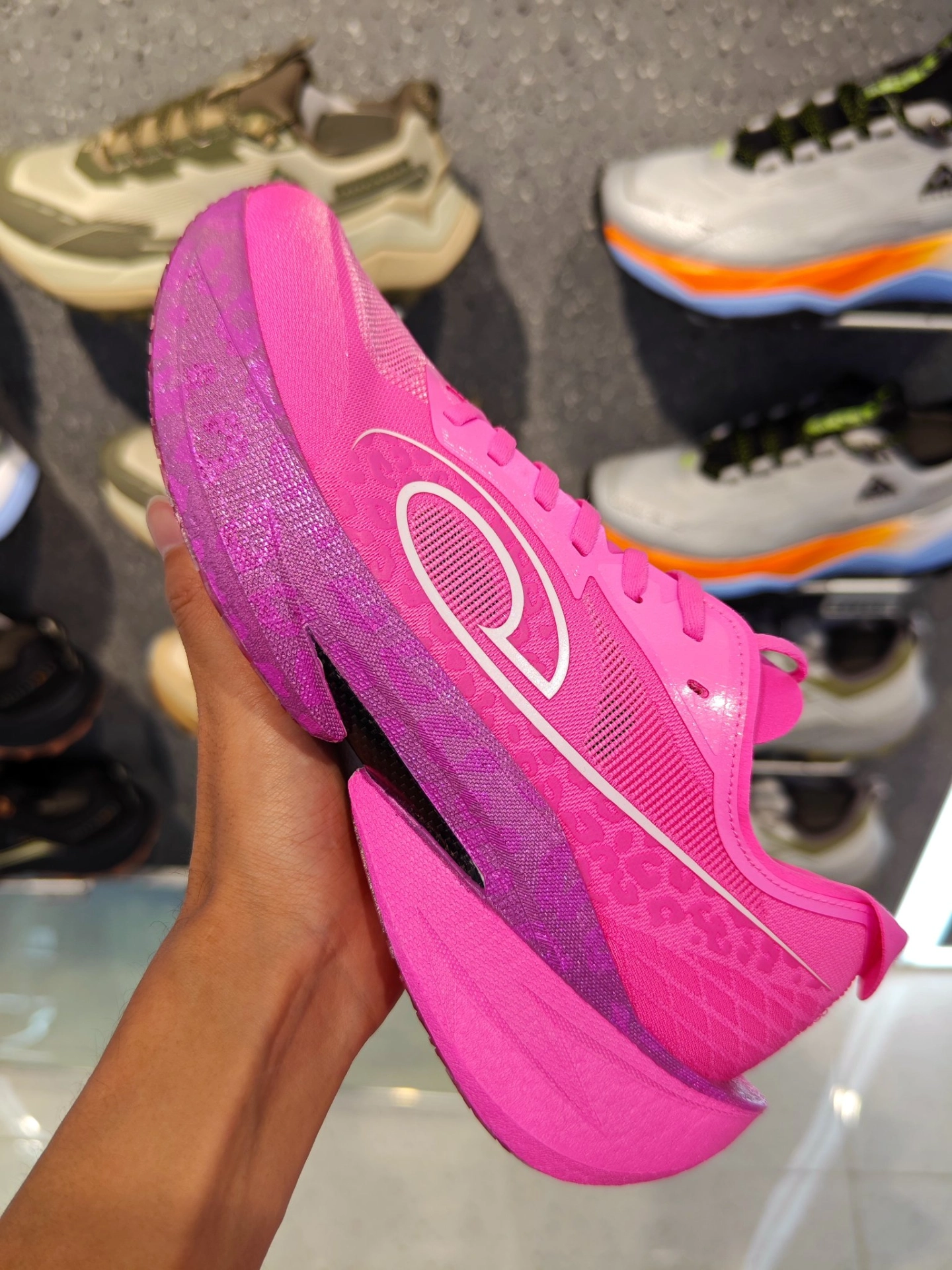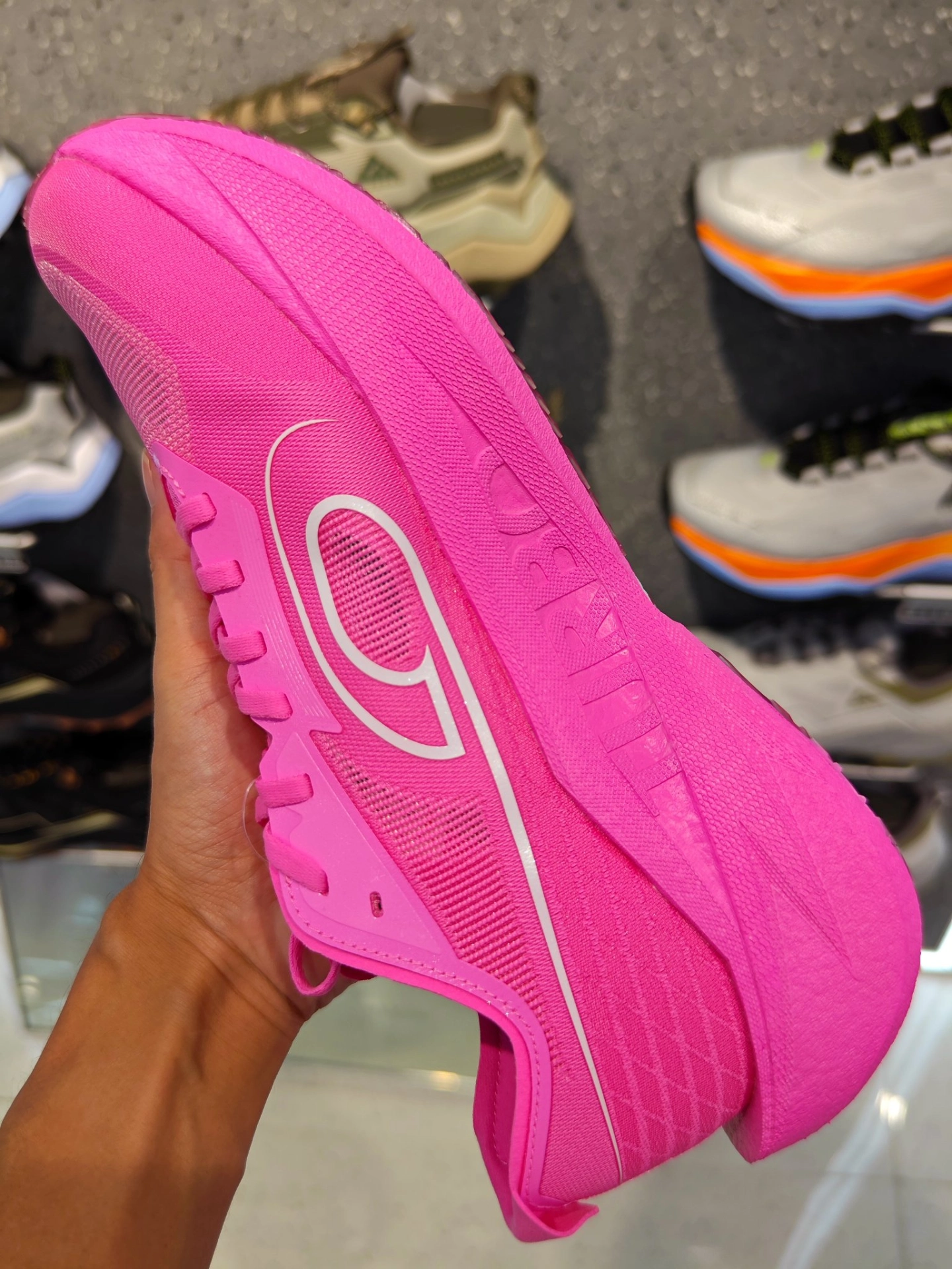 飞影pro系列的定位有点不清不楚,竞速被飞影PB、飞影plaid系列抢了风头,竞训和强风系列傻傻分不清楚,虽然贾俄仁加去年穿过飞影pro一代训练,可大众跑圈我还没见过。强风SE、2.0、2.0pro销量口碑双赢后,强风3代真的不敢恭维,一堆问题就不展开说了。看跑友穿飞影pro2.0绿色款眼前一亮,到店里试试,脚感不错,6个配色,绿色比较耐看,这个红色有点惊艳,大logo是新的。个人感觉比强风3系更像强风2pro的升级迭代,稳定性很好,设计有了一些高级感,这个配色太吸睛了。