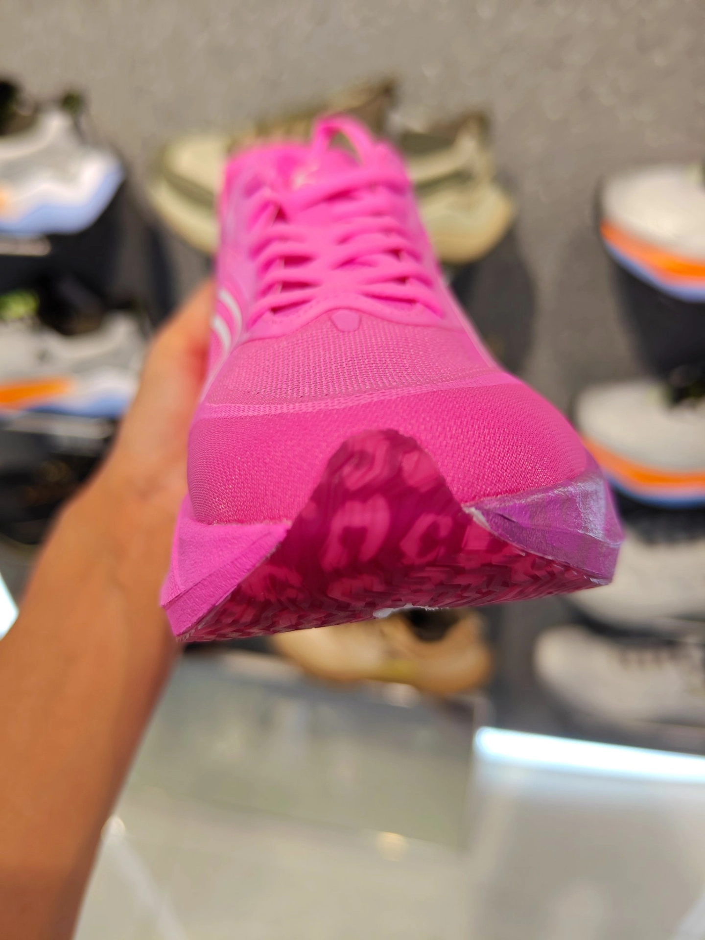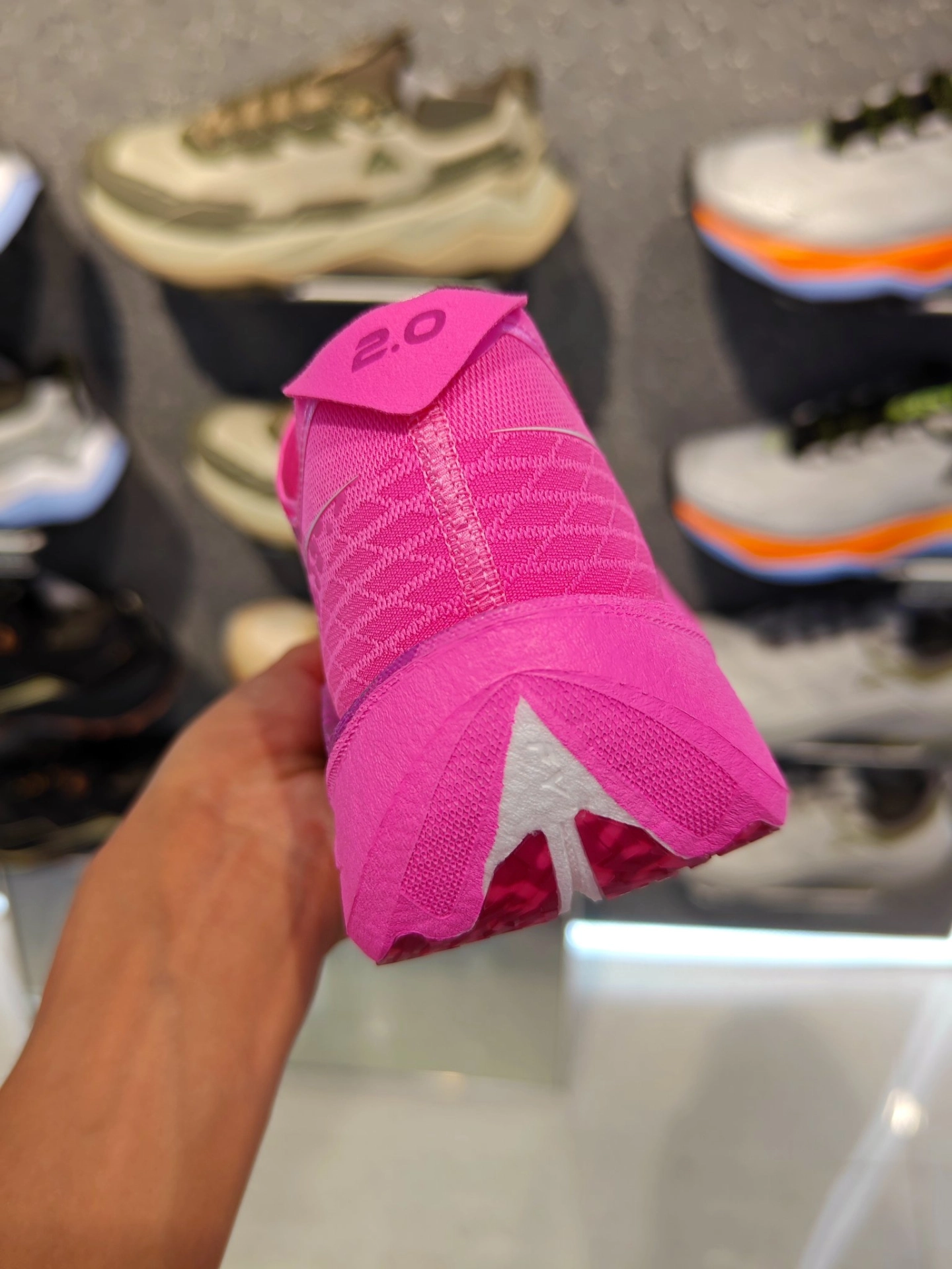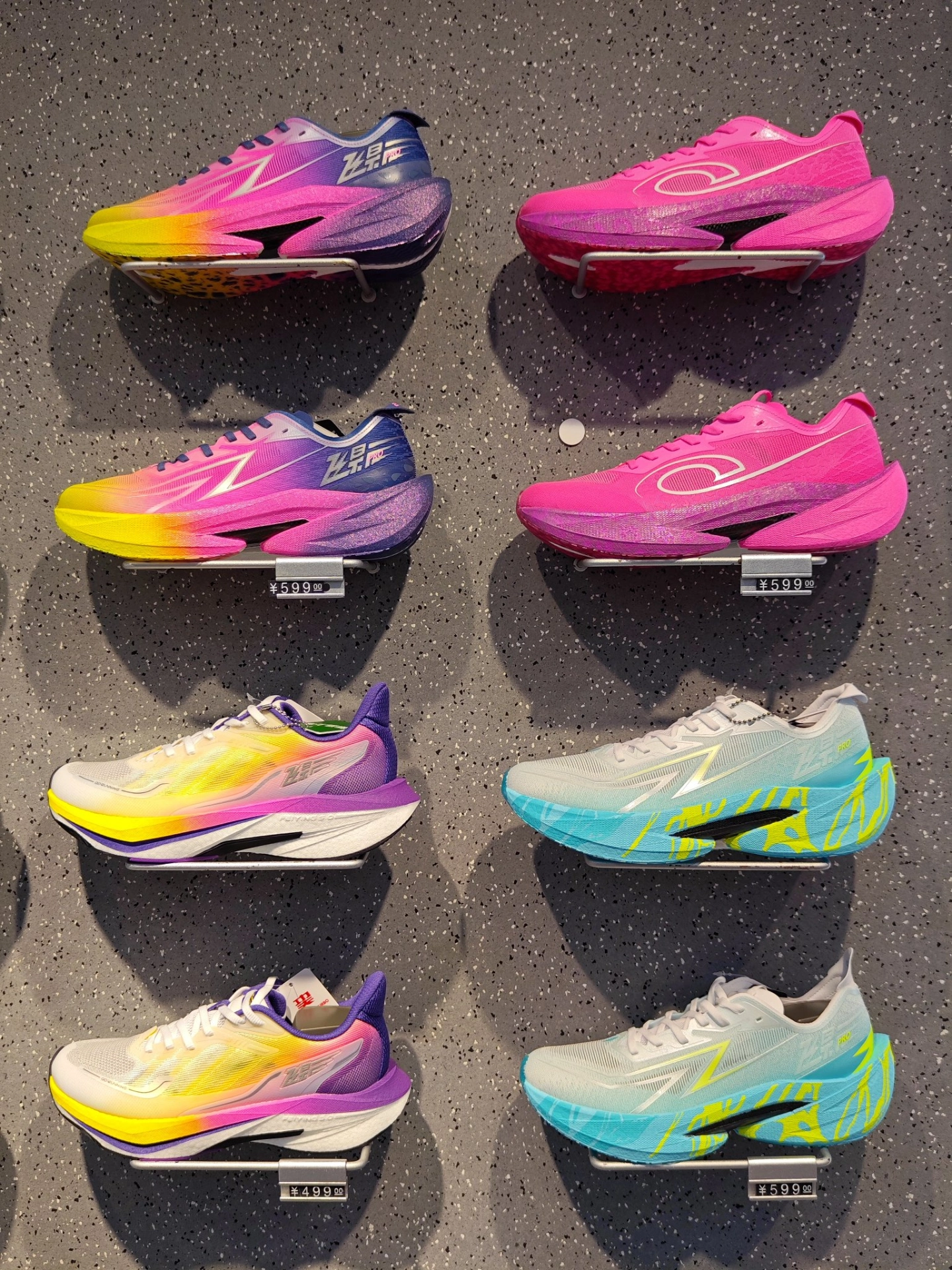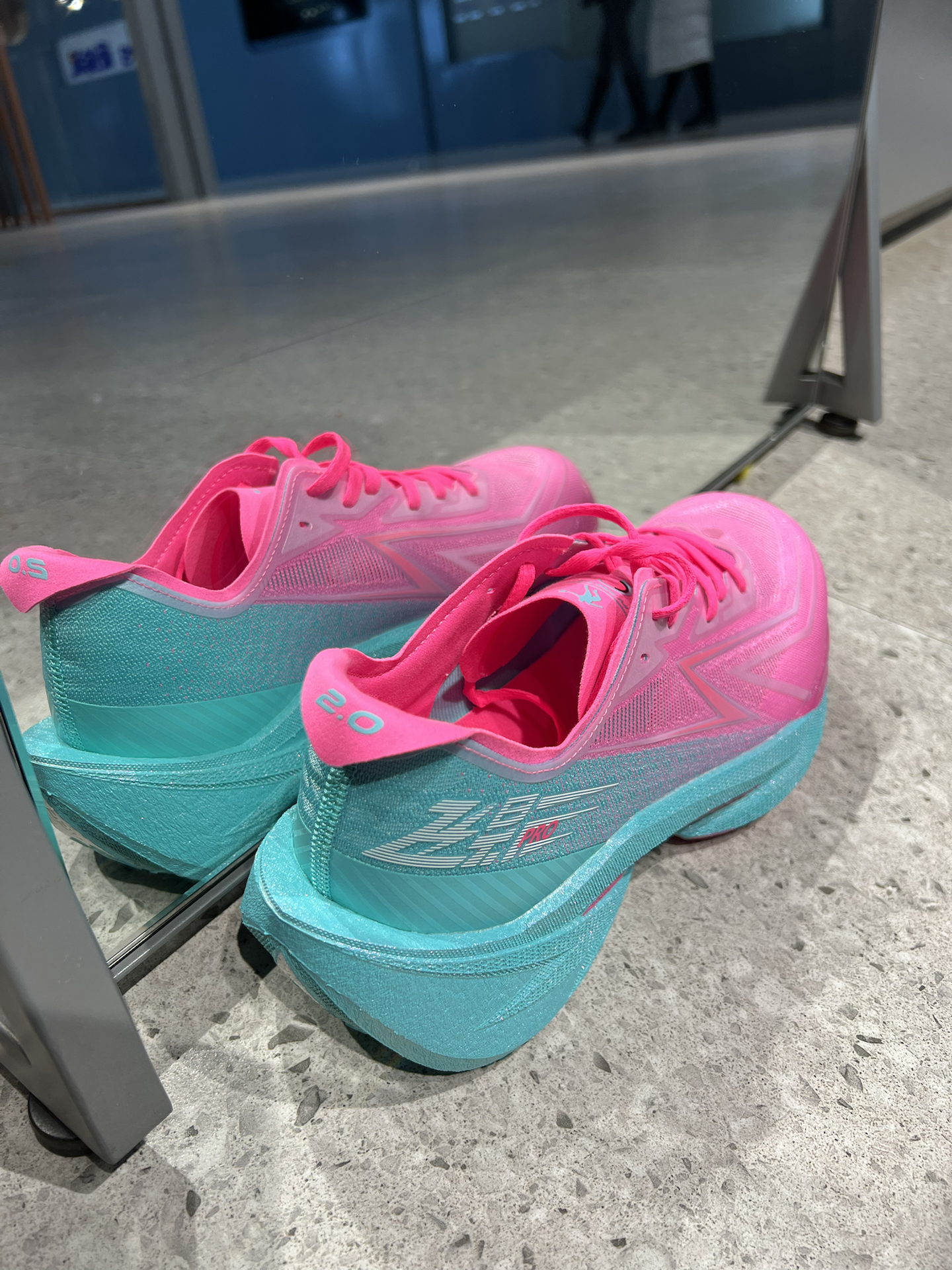 飞影pro系列的定位有点不清不楚,竞速被飞影PB、飞影plaid系列抢了风头,竞训和强风系列傻傻分不清楚,虽然贾俄仁加去年穿过飞影pro一代训练,可大众跑圈我还没见过。强风SE、2.0、2.0pro销量口碑双赢后,强风3代真的不敢恭维,一堆问题就不展开说了。看跑友穿飞影pro2.0绿色款眼前一亮,到店里试试,脚感不错,6个配色,绿色比较耐看,这个红色有点惊艳,大logo是新的。个人感觉比强风3系更像强风2pro的升级迭代,稳定性很好,设计有了一些高级感,这个配色太吸睛了。