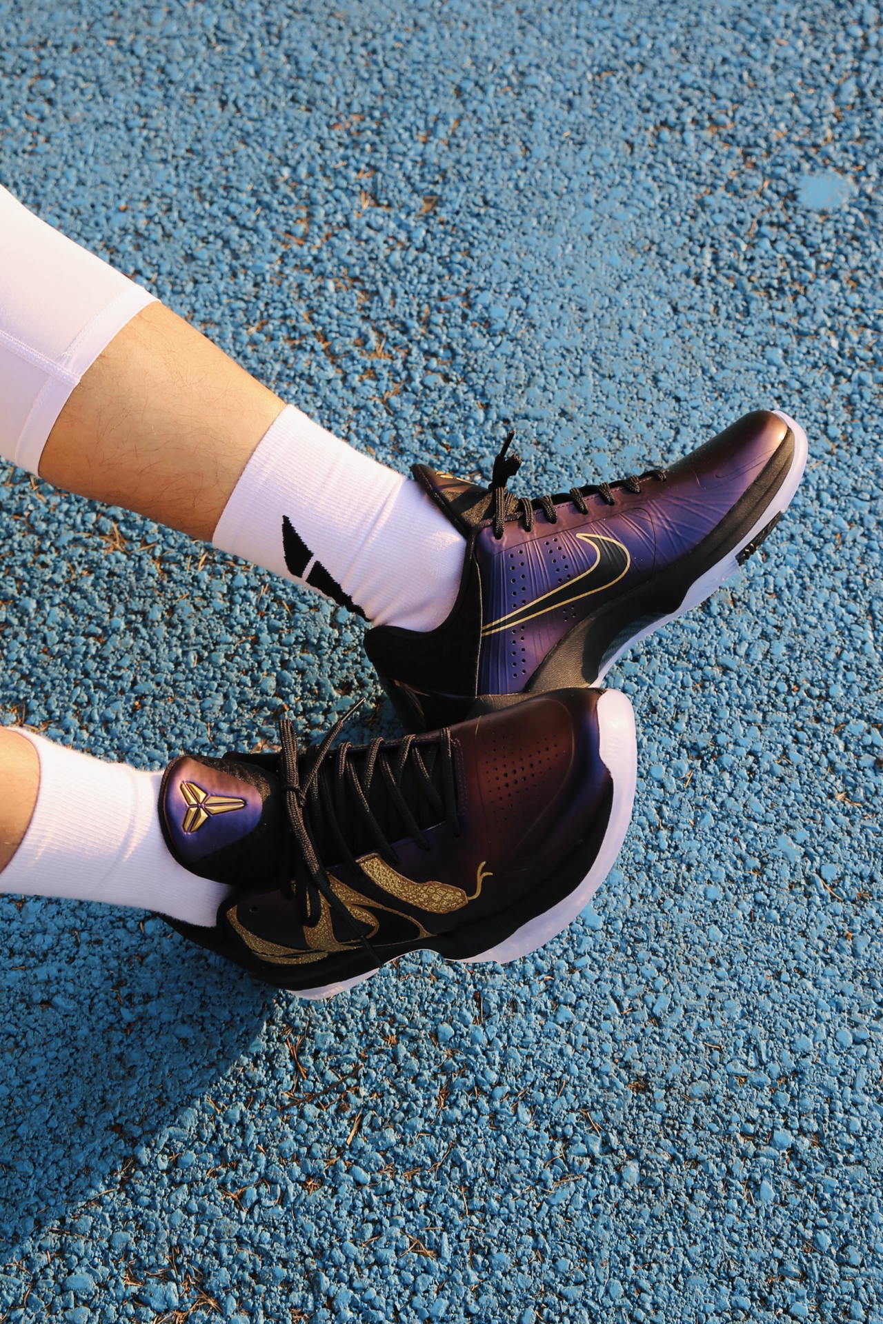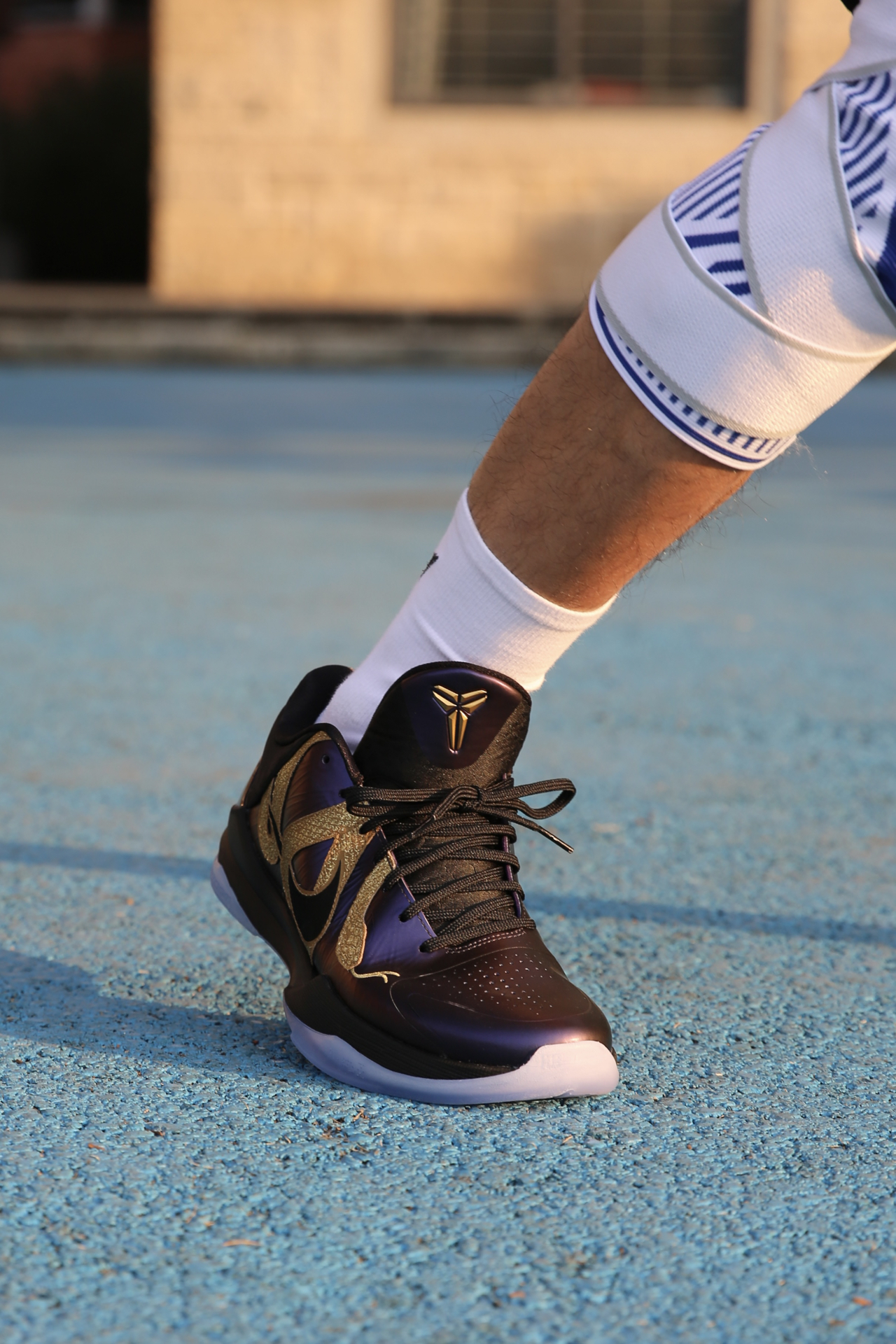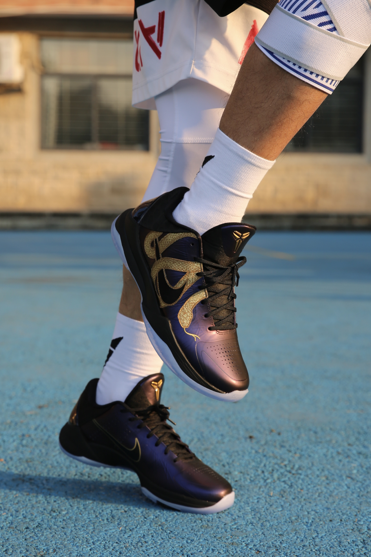 ❤️较于大红金蛇kobe5, 这双大紫金蛇更耐看! 💜整体的紫色颜色比较深, 有类似于紫喷的光泽感 🐍盘绕其中的金蛇夸张又大胆, 身上蛇鳞闪闪发光,光泽刺绣很精细 随便白t黑裤搭配都很好看! 靴 建议