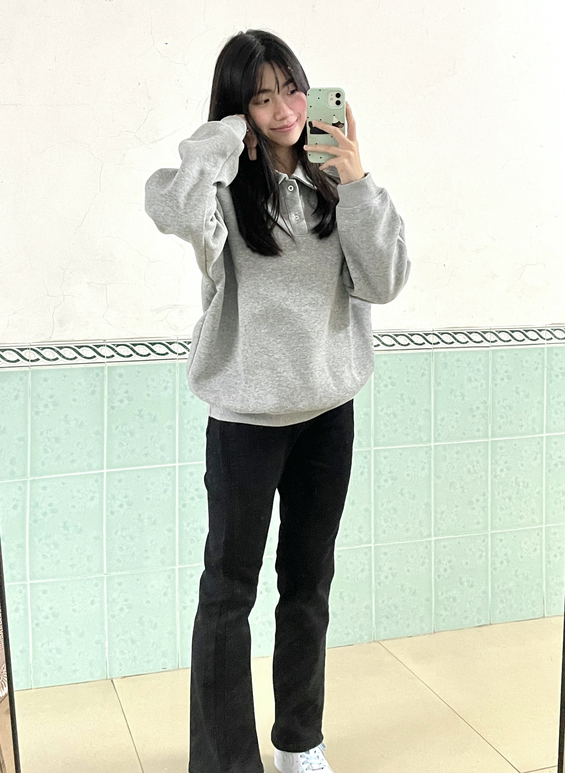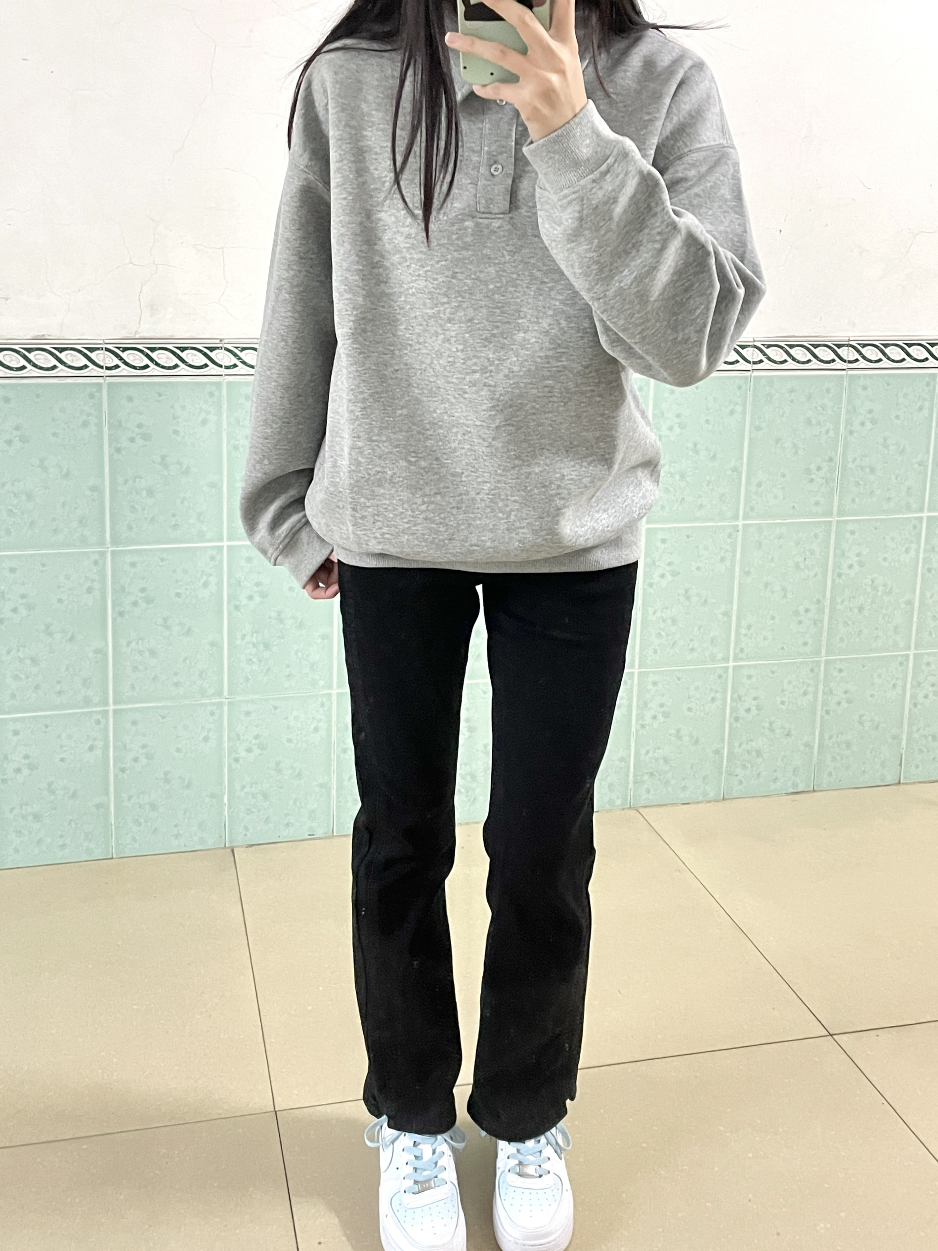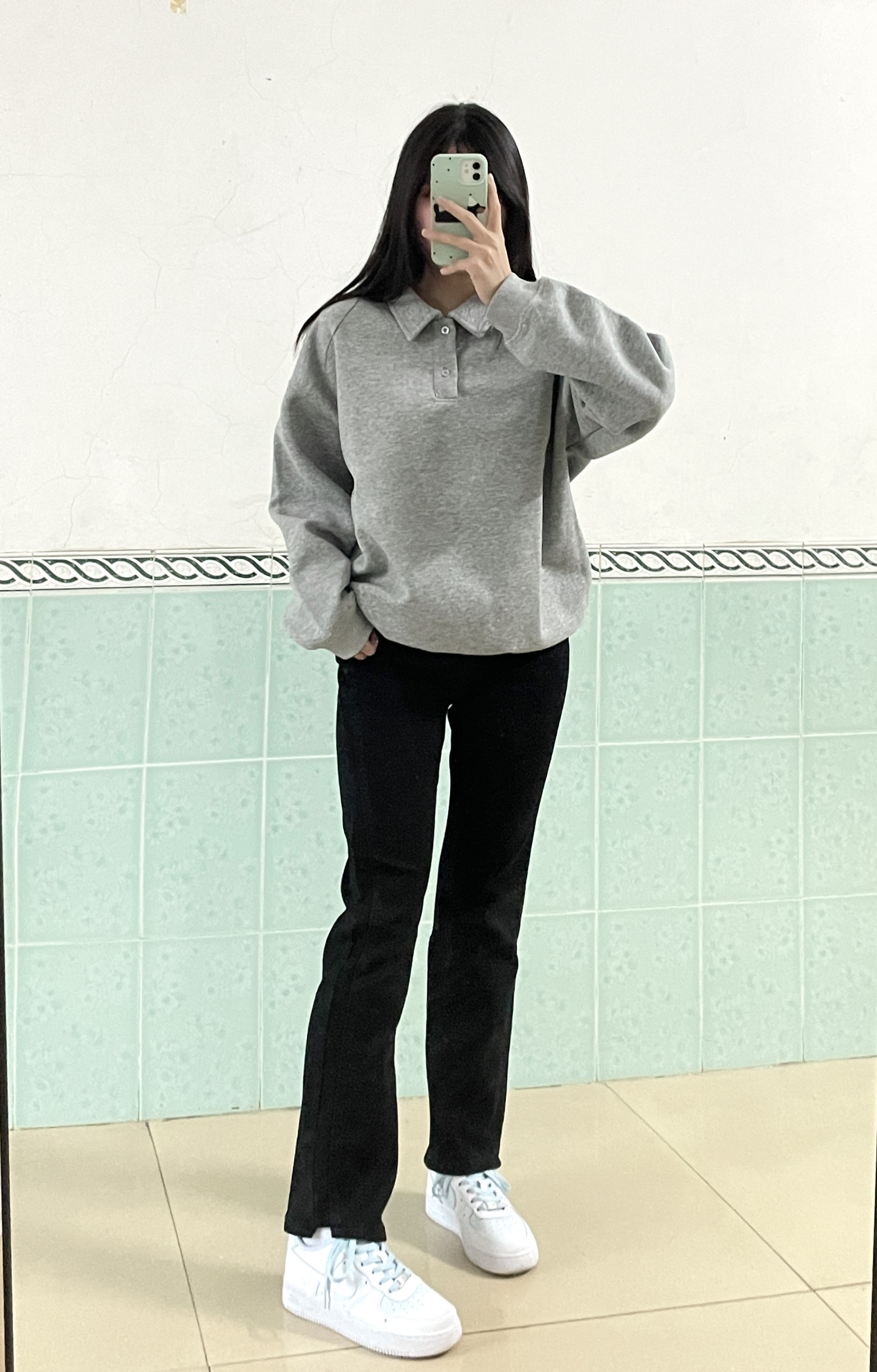 166 102穿的是M码 裤子也是M码哦 polo领的设计显得背很薄 裤子还是软牛仔的面料 很有弹性 黑白灰的搭配永远不会出错 穿上就给人简约干净的感觉 喜欢的宝宝可以参考一下哦