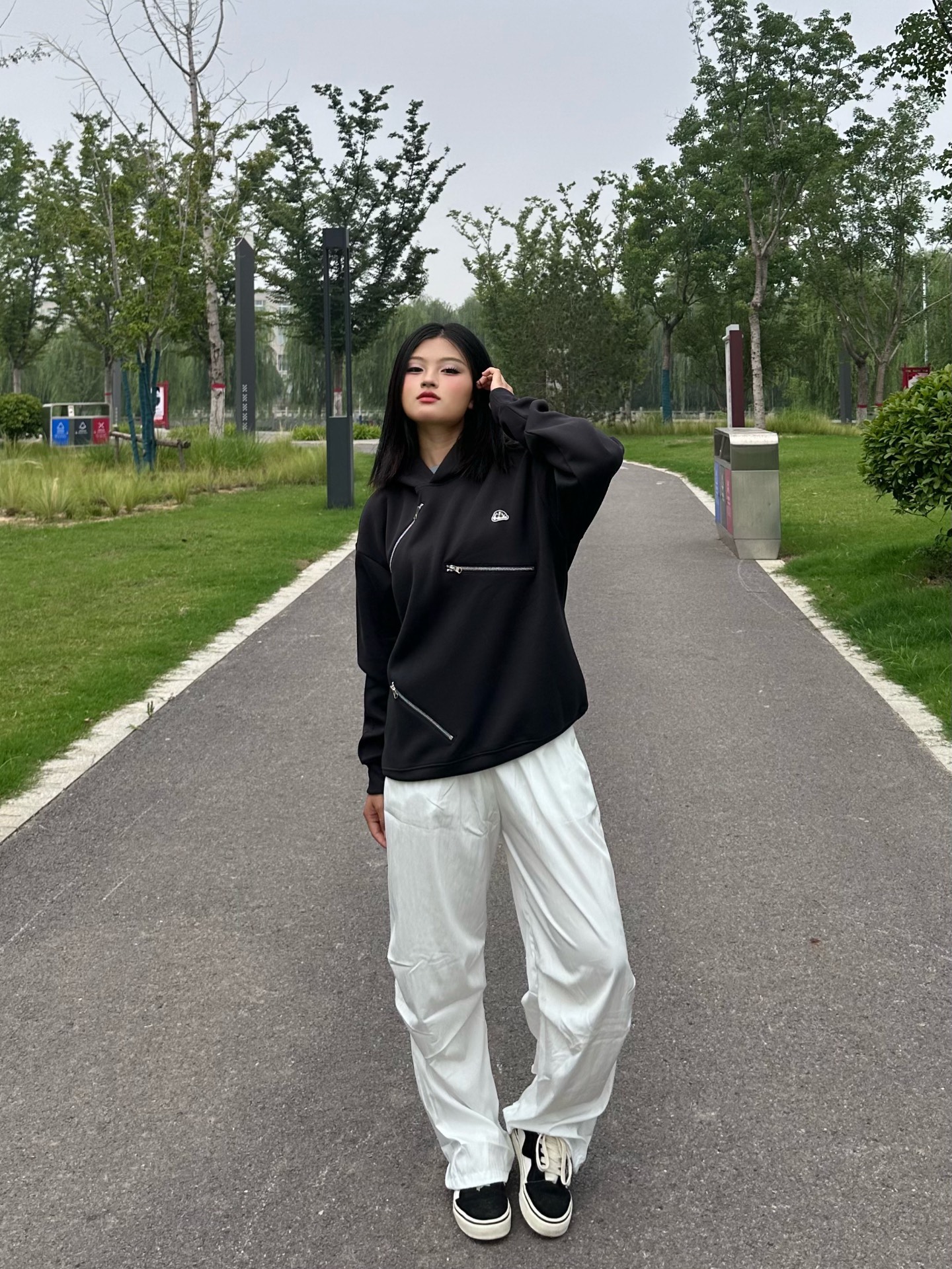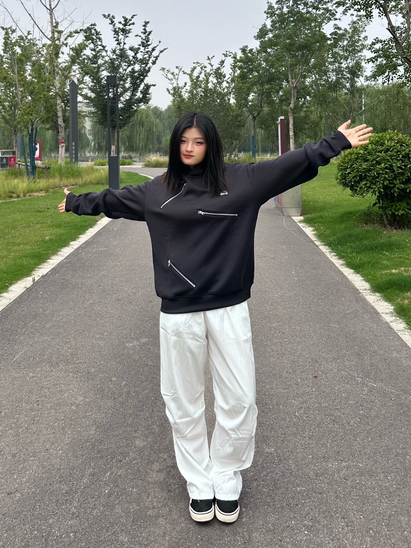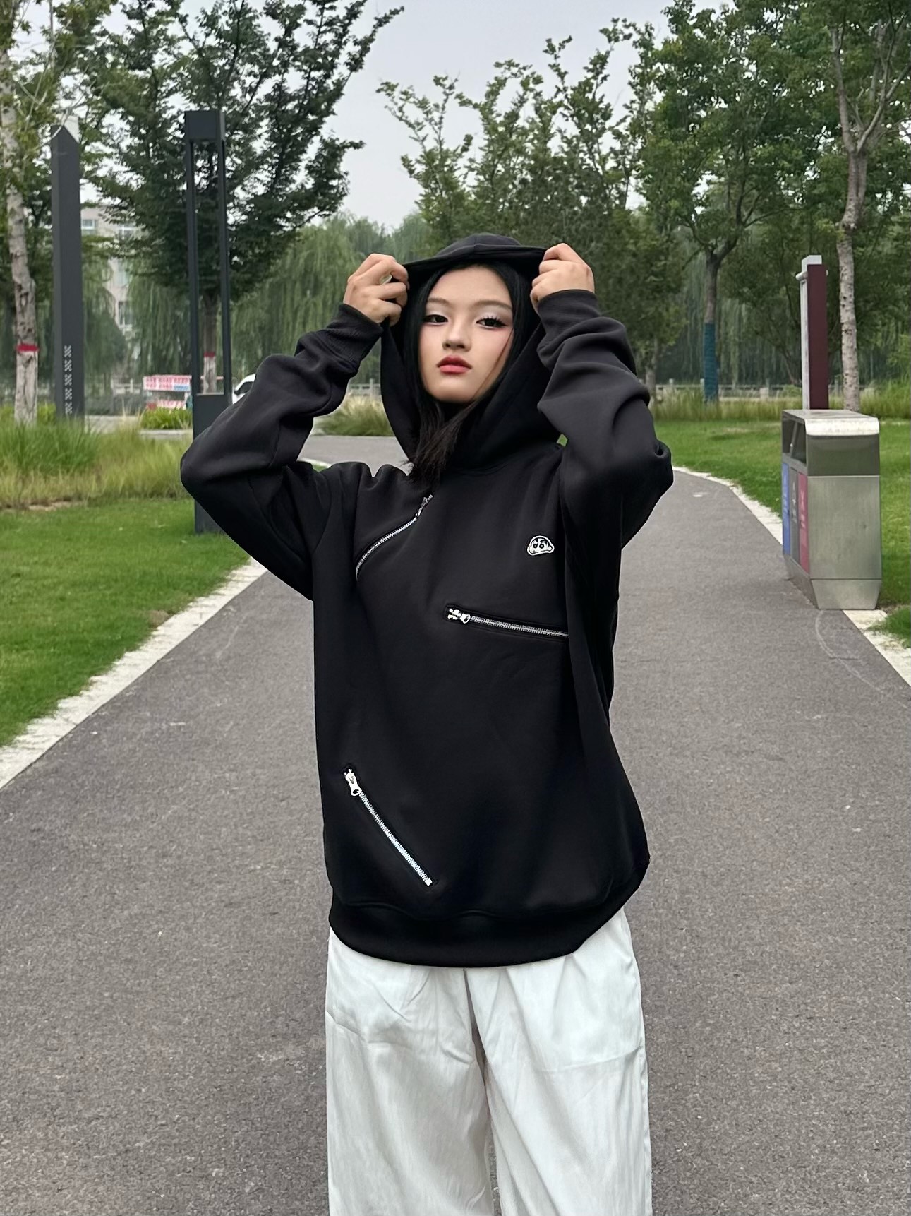 分享今日穿搭~ 谁懂黑色卫衣的魅力! crayon shinchan卫衣真的好酷 版型刚好不胖不瘦 面料软软的穿在身上很舒服 蜡笔小新经典印花logo 尤其是不规则的3条假拉链 贼有设计感~💓 我搭配了条白色工装裤 图源网络侵删