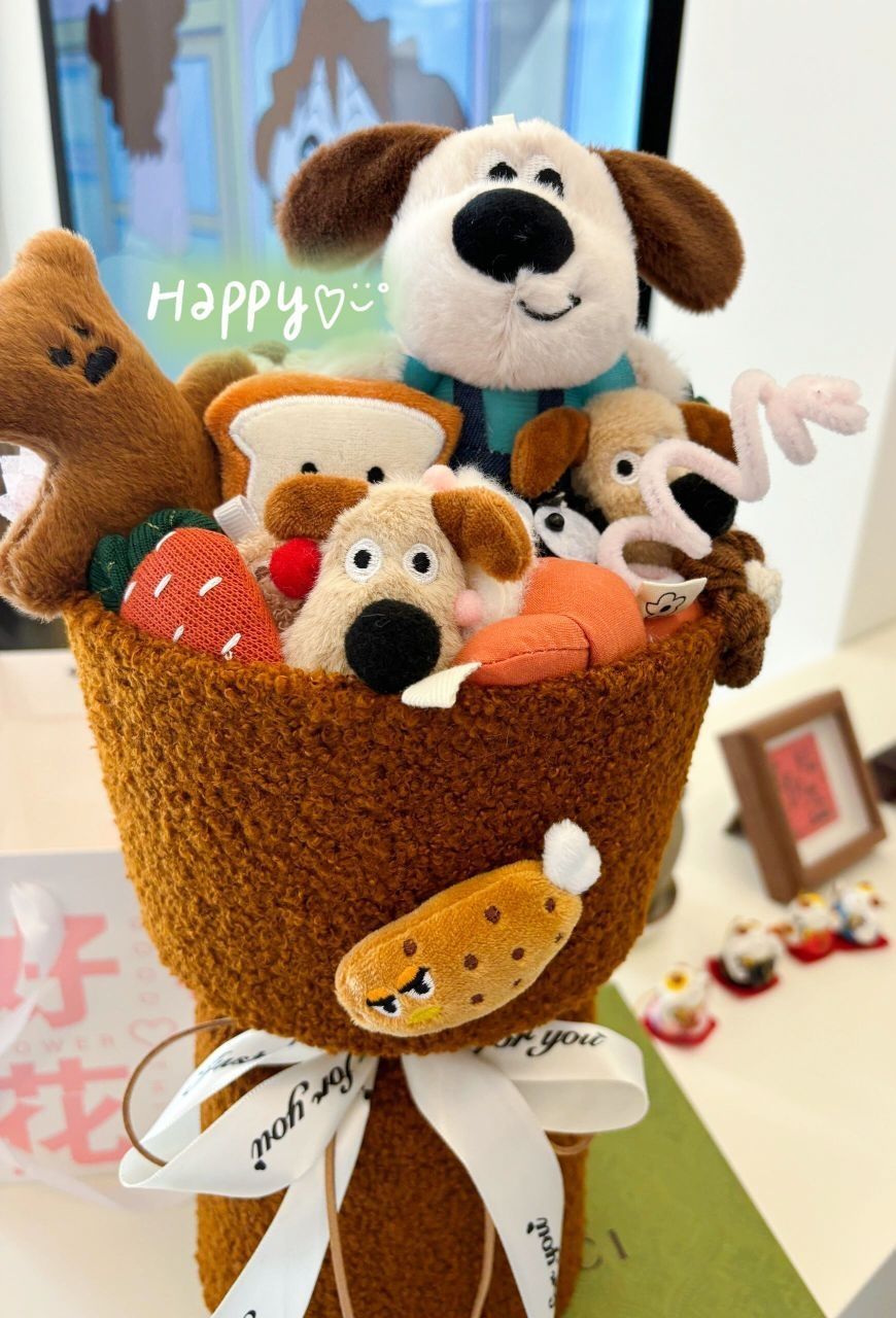 还在为情人节送啥发愁吗?这款JOOKI/捉趣美拉德风狗狗玩偶花束,小众又独特,绝对能让你脱颖而出! 美拉德配色高级又温柔,谁看了不迷糊?软萌的狗狗造型,直击少女心。这不就是传说中的“梦中情礼”嘛!咱主打一个创意满满,送出去保准让对方一眼万年,好感度直线飙升~
