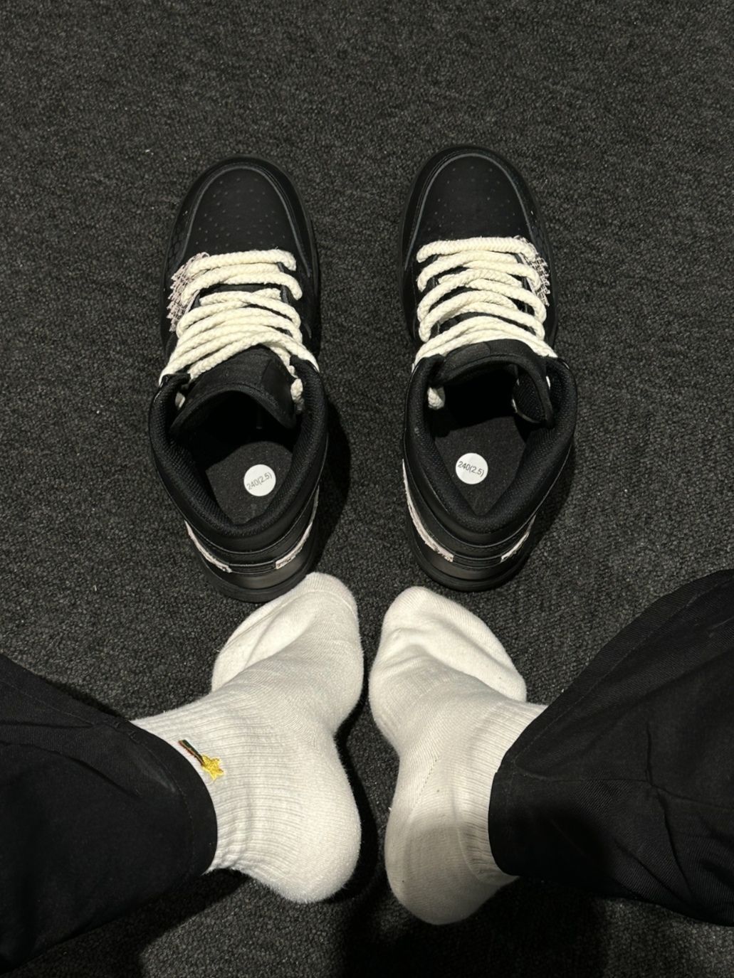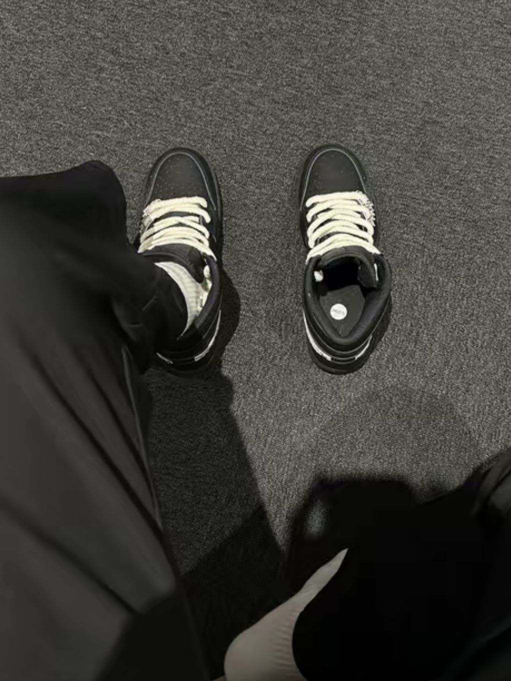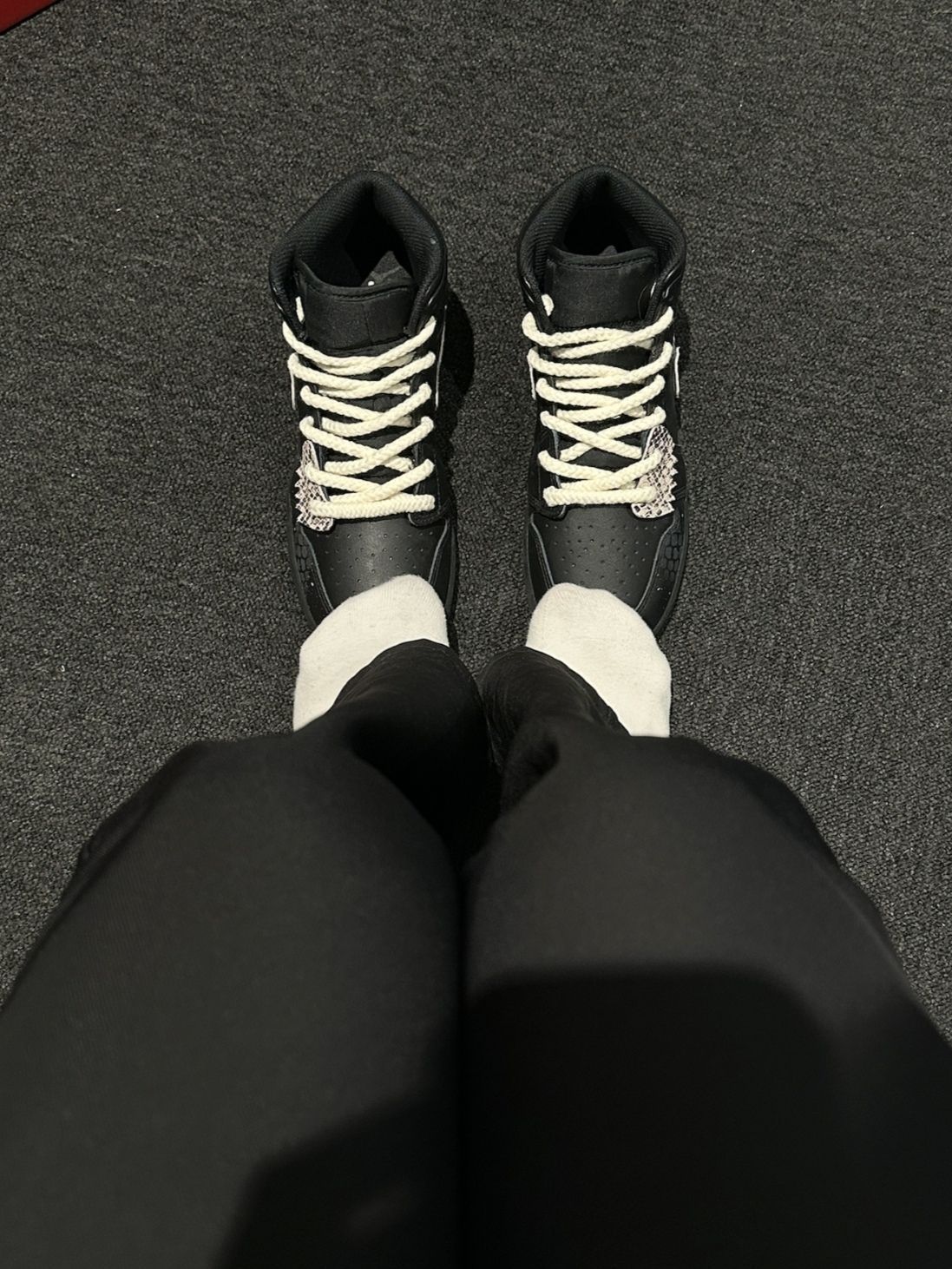 家人们看看我新入手的AJ1黑武士真的太绝了! 纯黑色的设计低调又奢华 swoosh和鞋带扣加入了蛇鳞设计精致贵气hin显 质感! 穿上它瞬间感觉自己气场两米八 无论是搭配牛仔裤还是运动裤,都超级好看 而且脚感也很舒适,爱了爱了