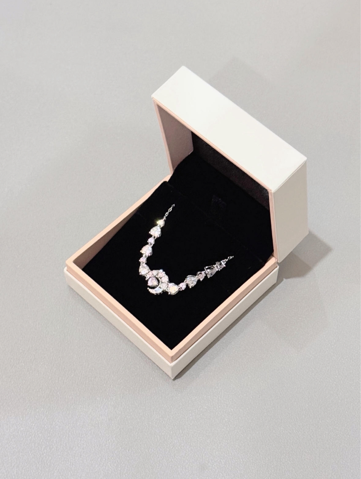 ▪设计师灵感 范琦新锐设计师联名款 以新月轨迹为设计原型 双链层叠结构搭配不对称锆石点缀 光影流转间的微镶工艺太绝了! ▪OOTD适配度 14K金镀层+5微米加厚电镀 亲测洗澡佩戴两周无褪色 16cm链长适配绝大多数女生手腕 叠戴单戴都充满呼吸感 ▪氛围感玄学 月光石与贝母的梦幻组合 转动间会有蓝紫色幻彩光晕 尤其适合搭配浅色系针织/衬衫 自带「伪体香」氛围buff