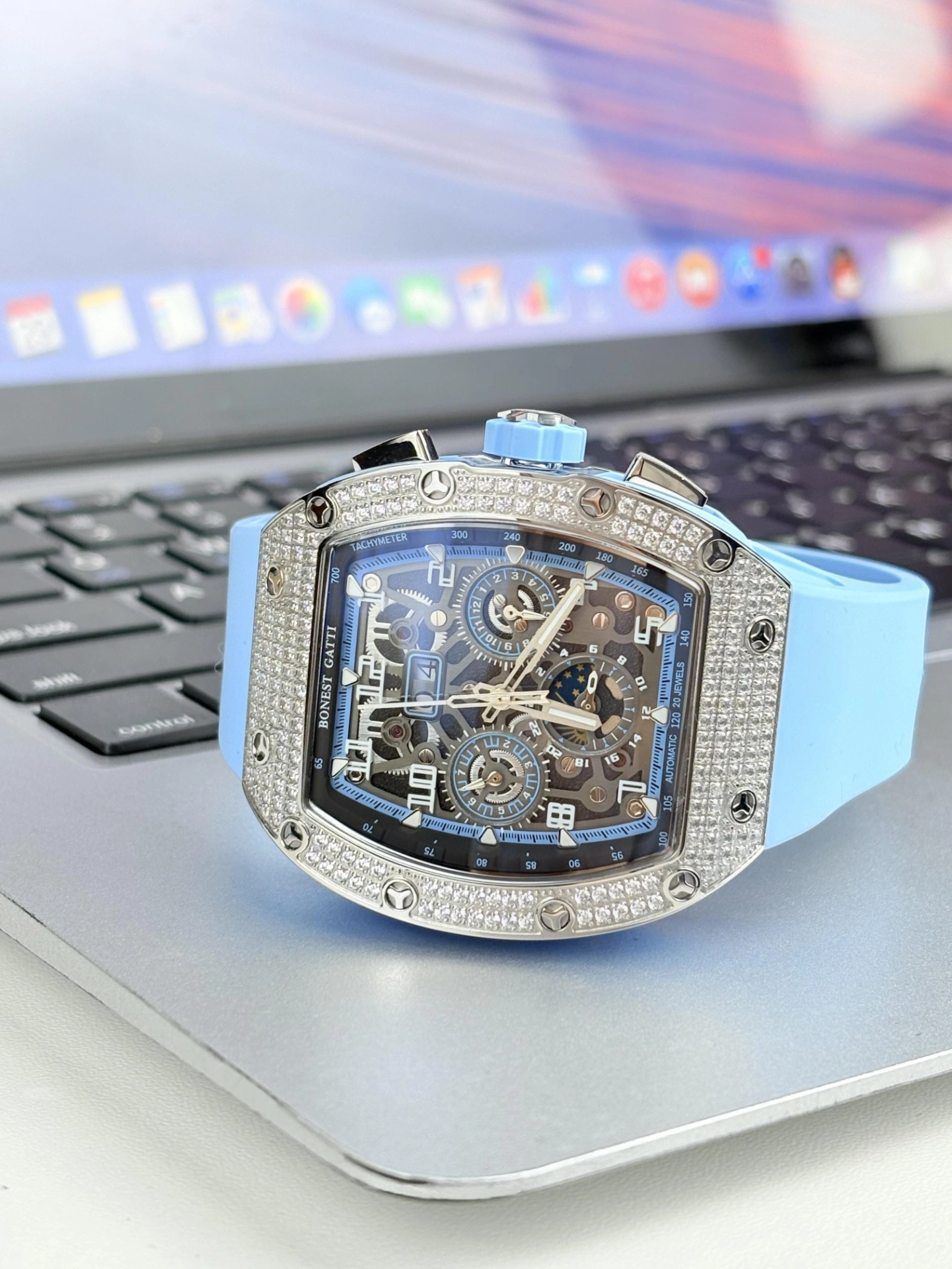 本篇笔记关联了BONEST GATTI/布加迪 疾速系列 理查酒桶型高颜值轻奢防水多功能时尚镶钻满钻日期功能霸气夜光潮流商务休闲百搭自动机械男士手表 银蓝 BG-5004-R4等商品,为用户提供真实的使用体验和购买参考。