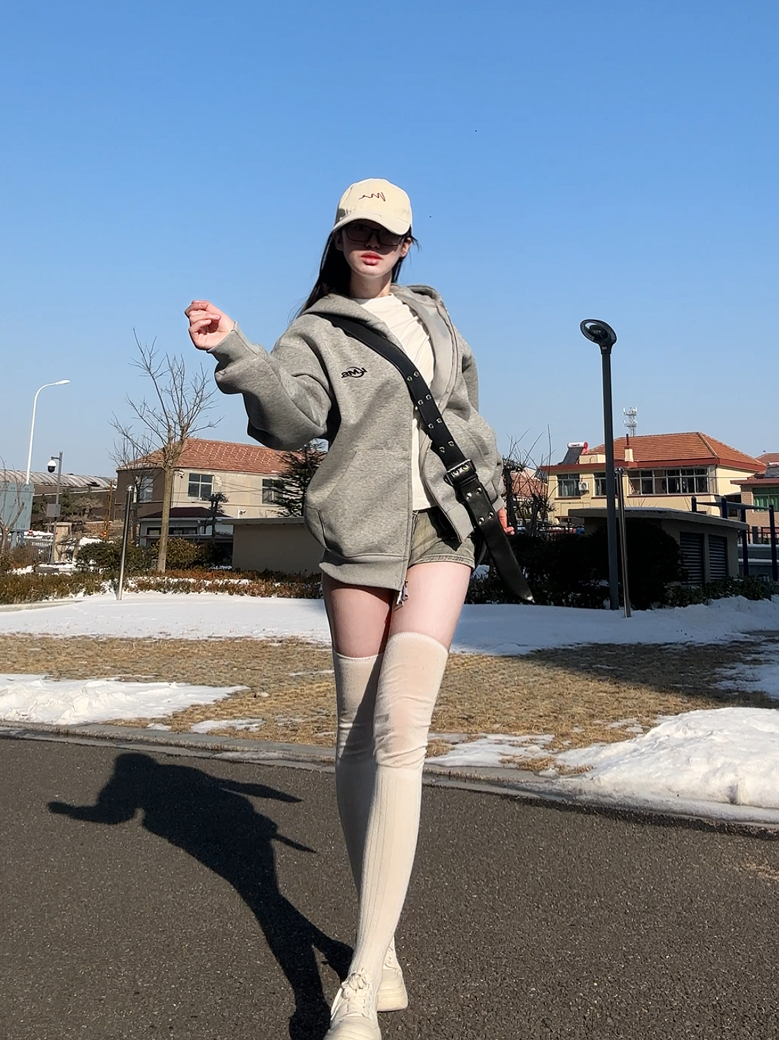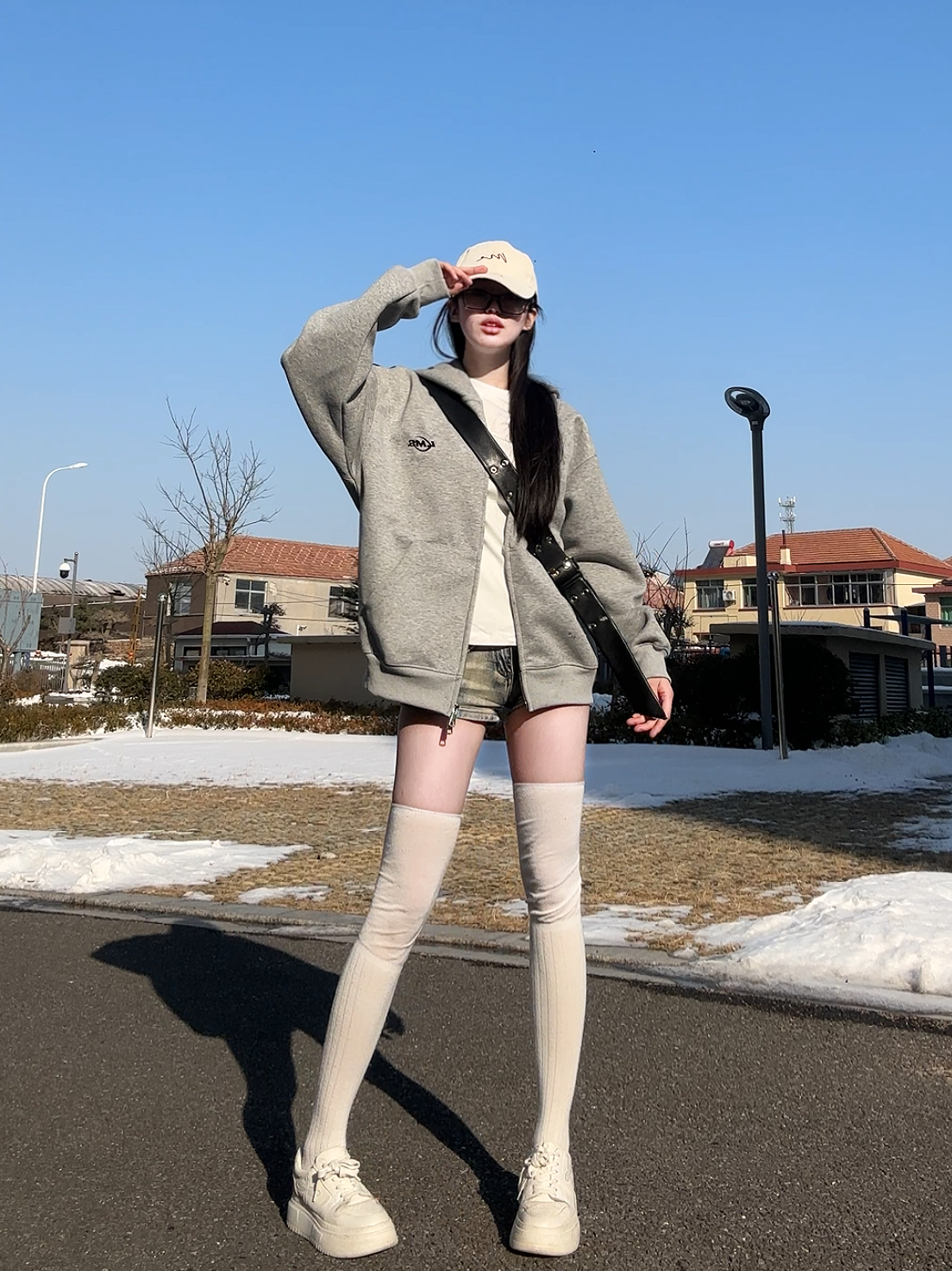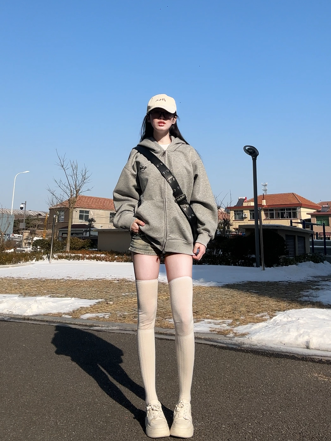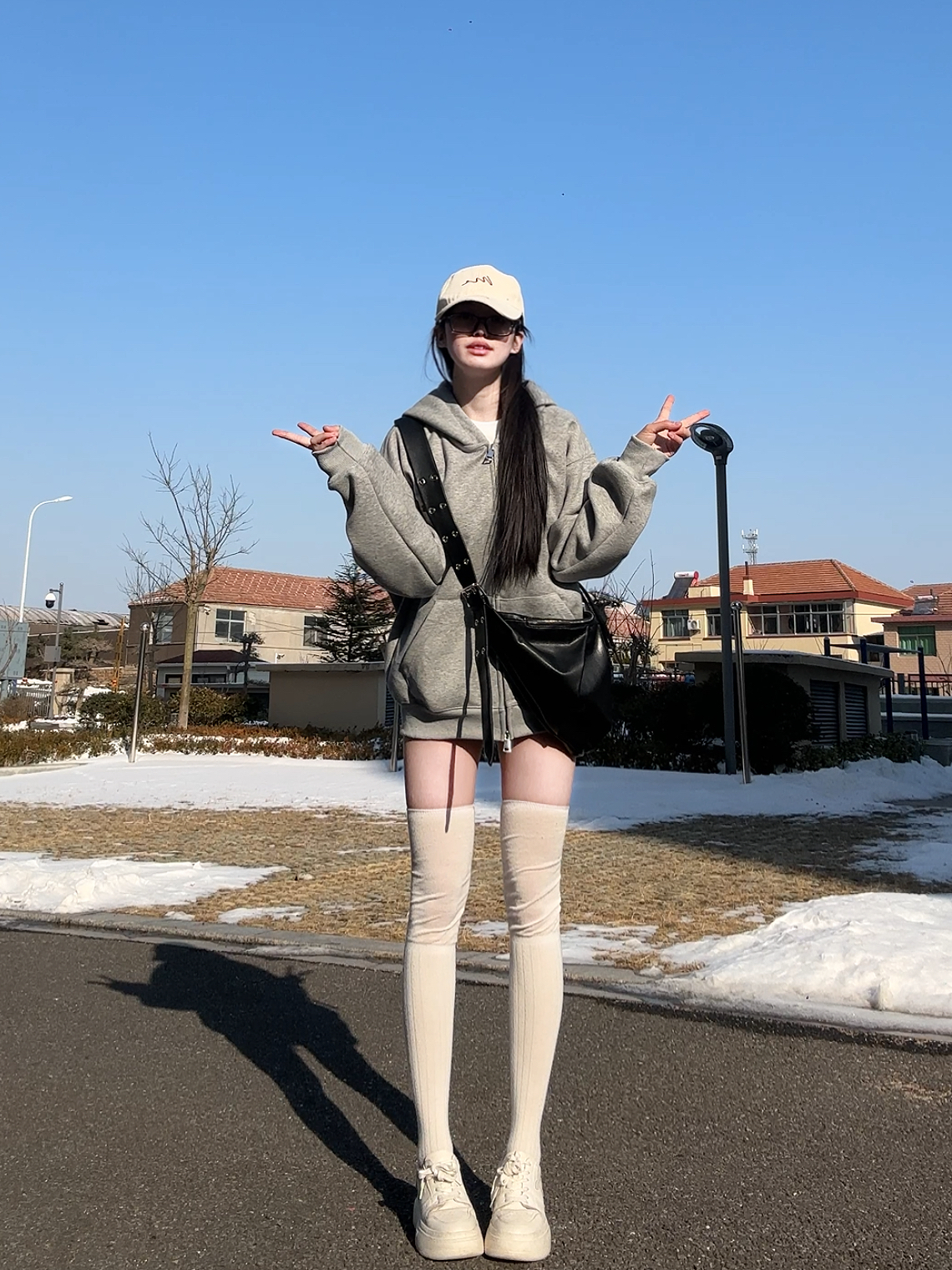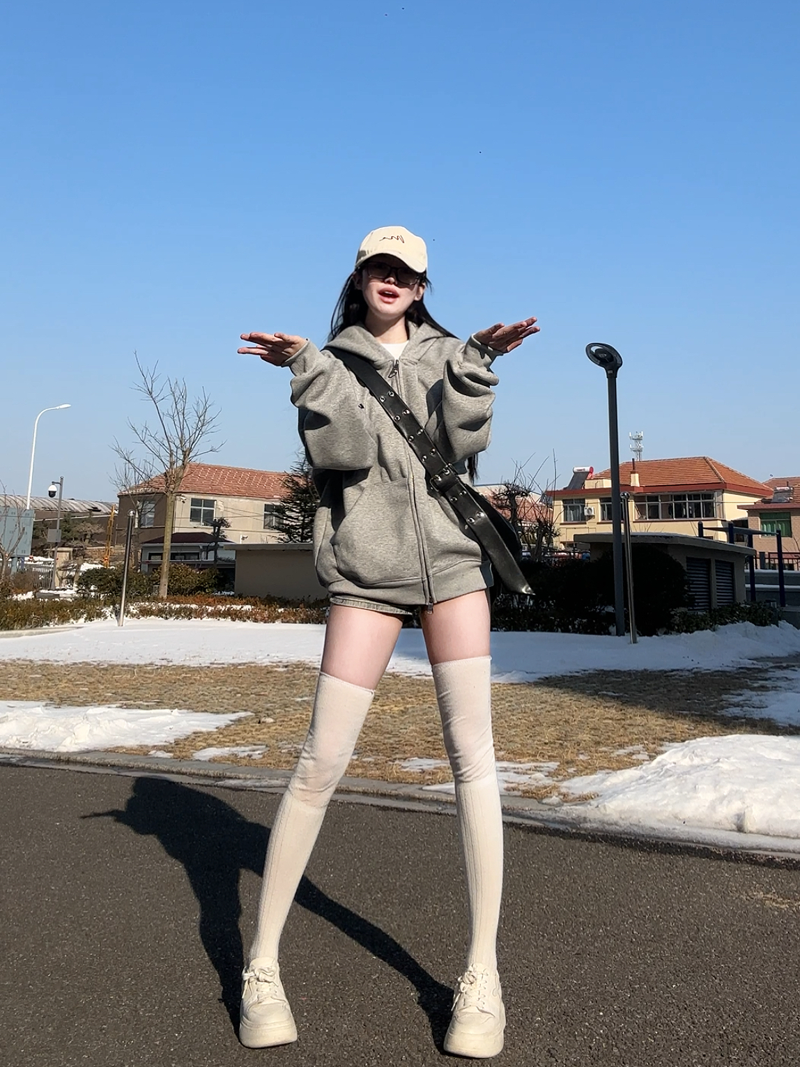 🧥: LEMANISM 🧍♀️:163cm 44kg 📏:S码 显色度这么高的灰色好吸睛 拉链拉开V领好显脸小,拉上高领很有范儿 版型也特别好,衣服垂感好不显臃肿 贴身穿也超级舒服, 搭配白色腿袜真的很绝 新春炸街战衣!