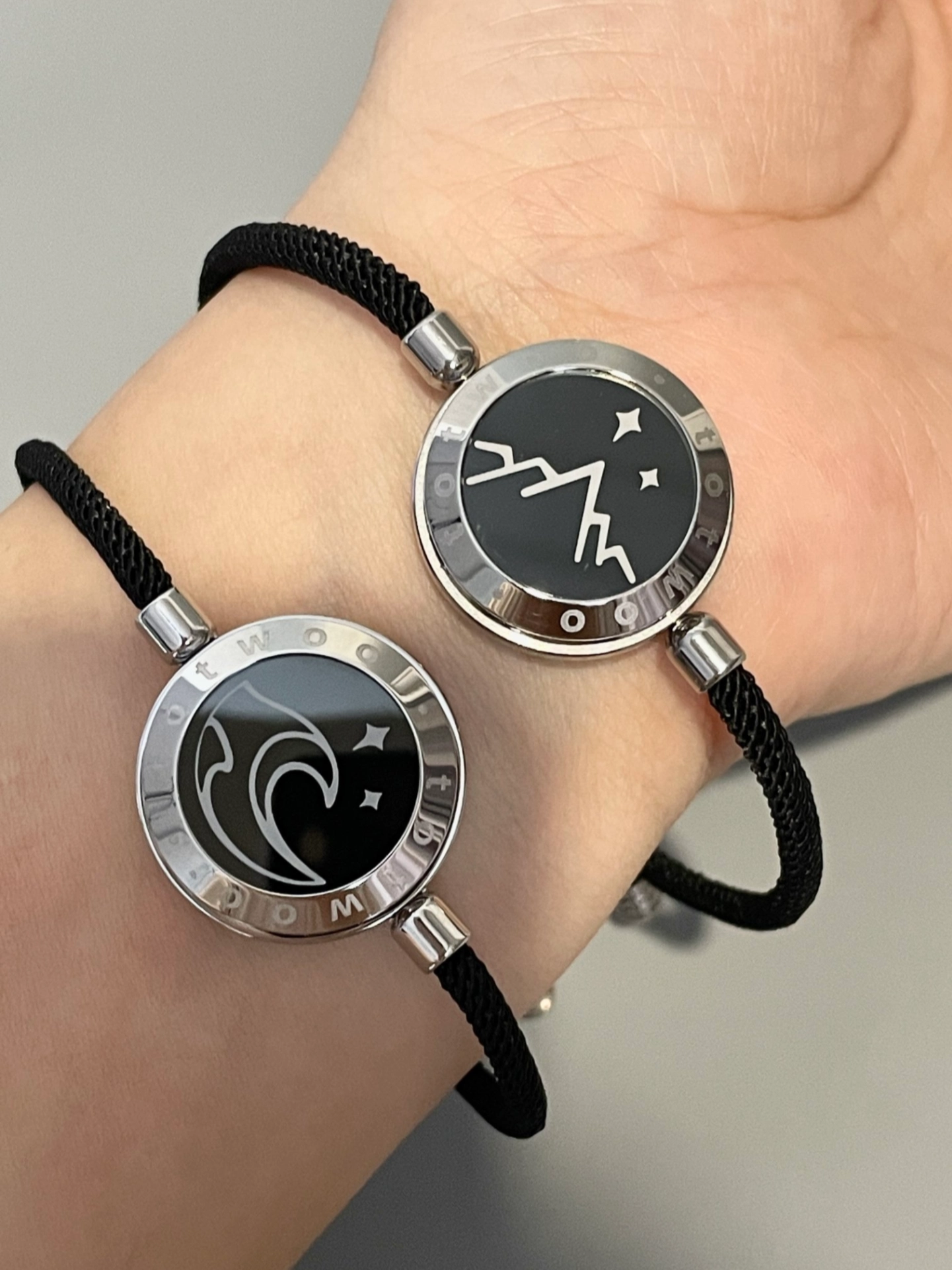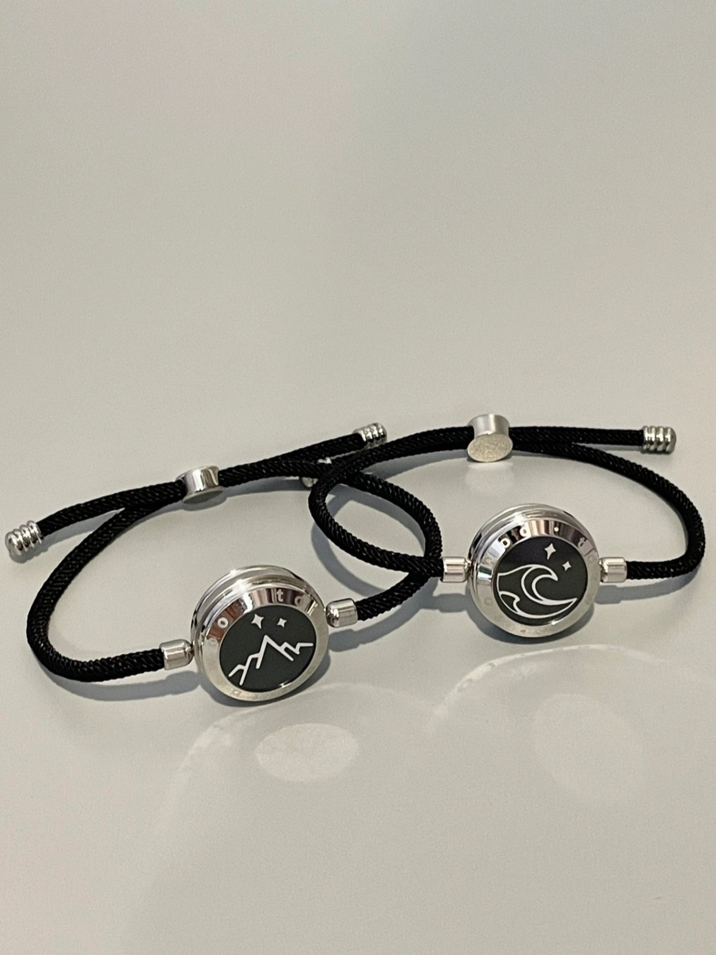 就是这对感应情侣手链 只要轻触手环 不管距离多远 对方手链就会闪亮震动 这也泰浪漫了叭 提升异地恋感情好物 图源网络,侵删!