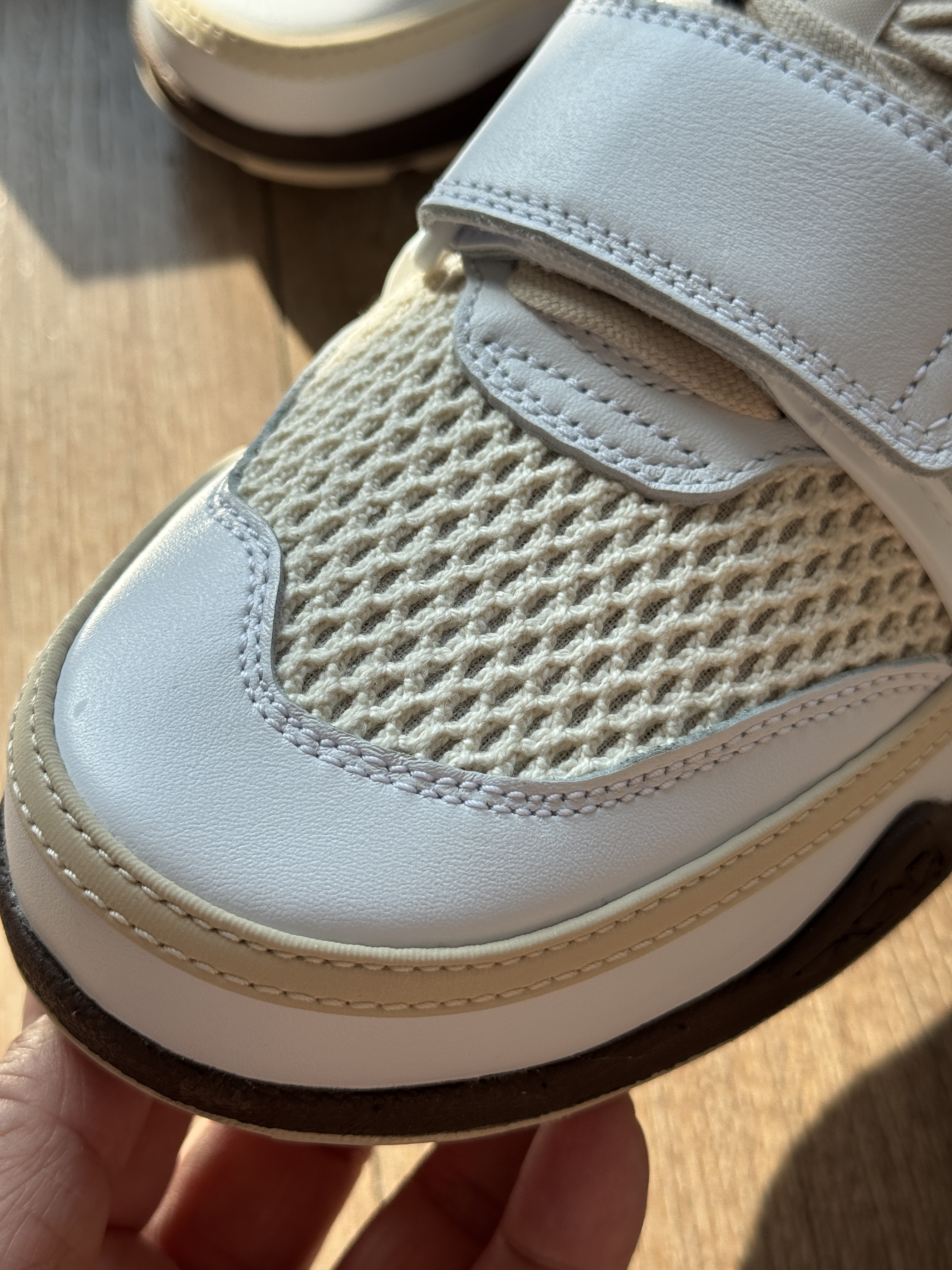 配色依然TS自己的味道,鞋身大网眼以及皮质拼接配上魔术贴更具户外属性,鞋底大颗粒结构提供了较好的防滑性脚感也非常舒适!鞋子穿偏小一定要拿一码。
