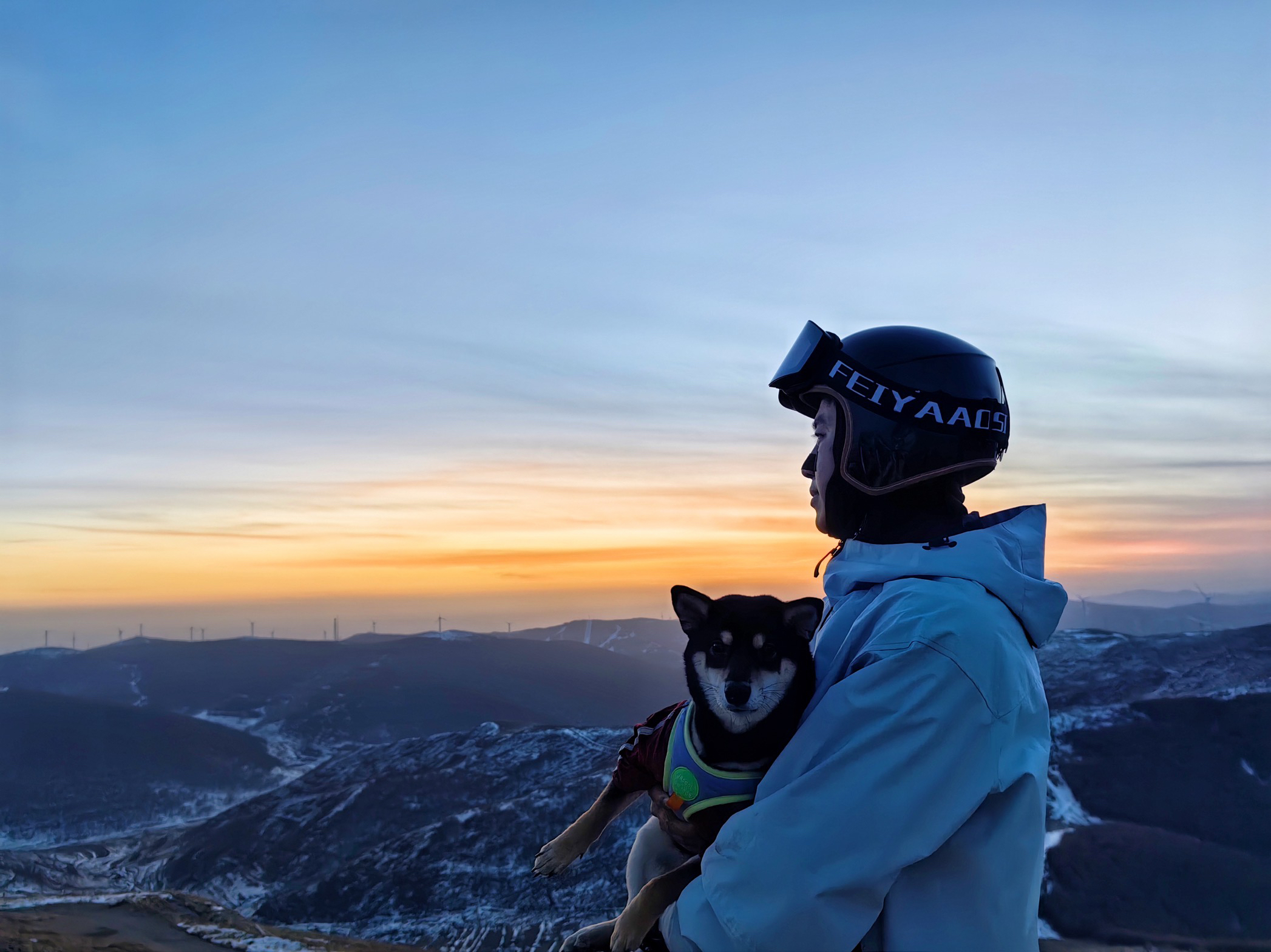 白色滑雪服,干净又低调 滑雪裤保暖又有型,滑了一天也不闷腿 臀部和膝盖还有加厚,也不影响做动作 而且和狗狗在雪场看日落的瞬间,太美好啦!