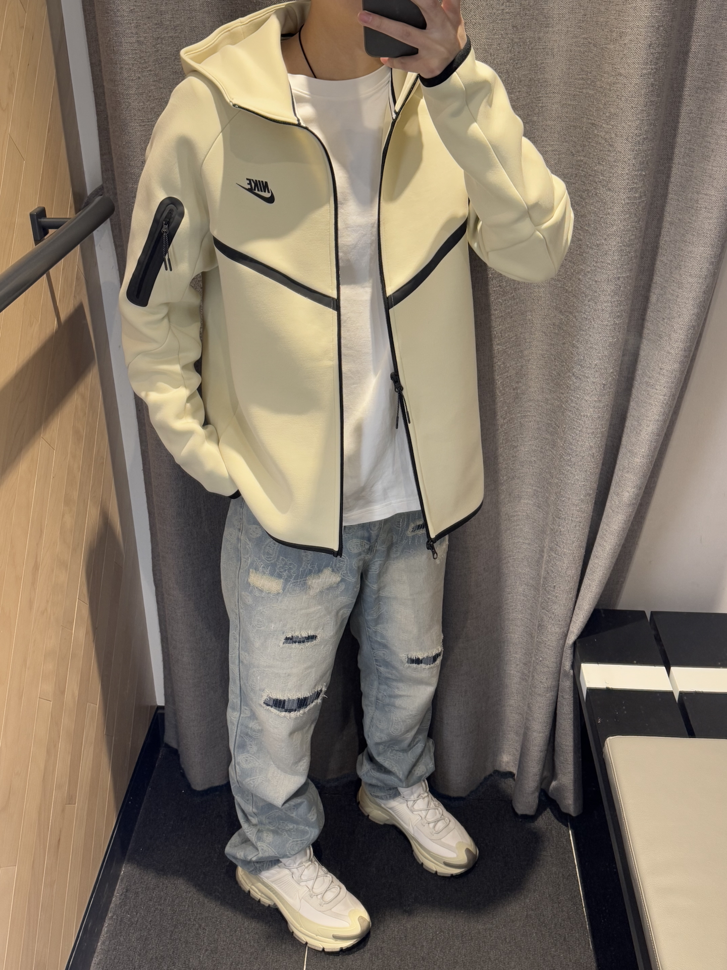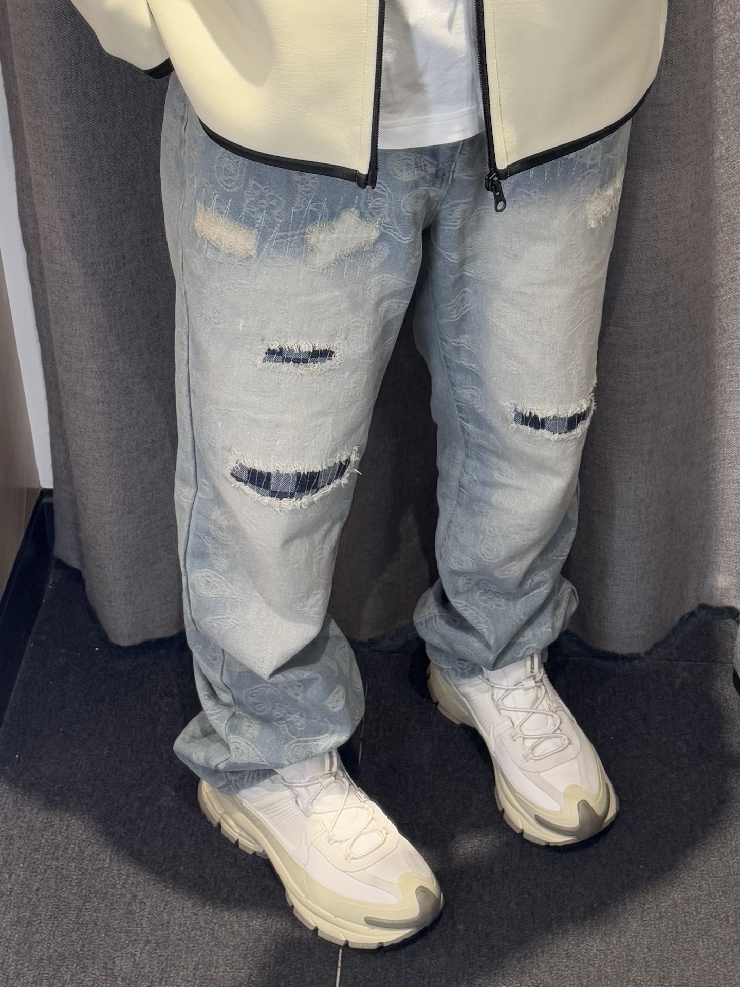 好久没有穿破洞牛仔裤了❕❕ 今天搭配一下还挺不错~ 上衣跟鞋子选的比较干净 裤子带有破洞的设计还蛮层次感的 直筒版型不挑身材 轻松驾驭 谁啊穿谁好看~ itcheck 是硬帅