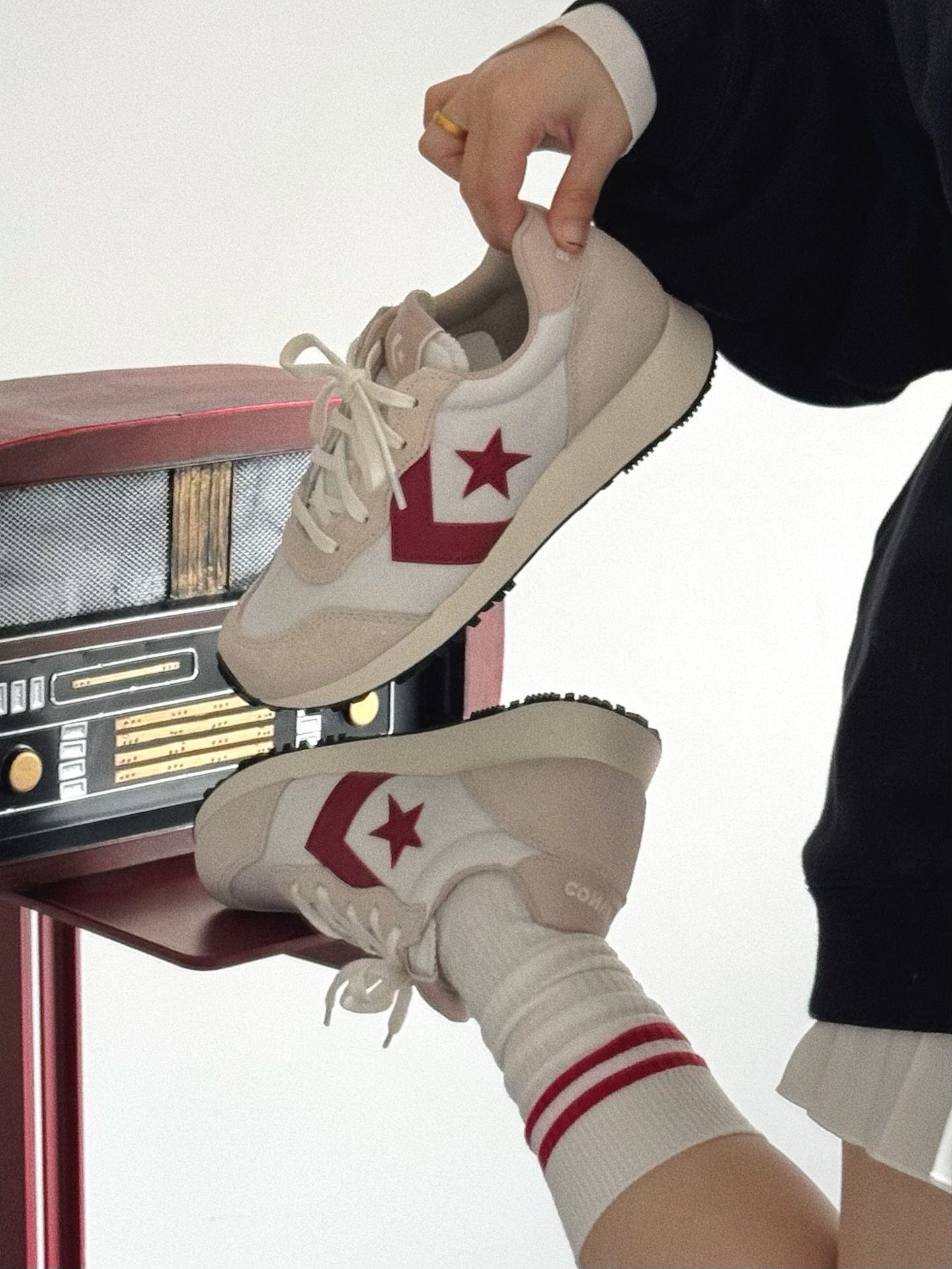 有被匡威学院复古跑鞋好看到 经典跑鞋的鞋型➕复古安可拉红配色 真的不要太韩女啊啊啊~ 就随便怎么搭配都不易出错 一整个百搭神器👟 脚感嘛很轻盈不累脚🦶 还是「王源」同款!姐妹们冲🐛!! 开春