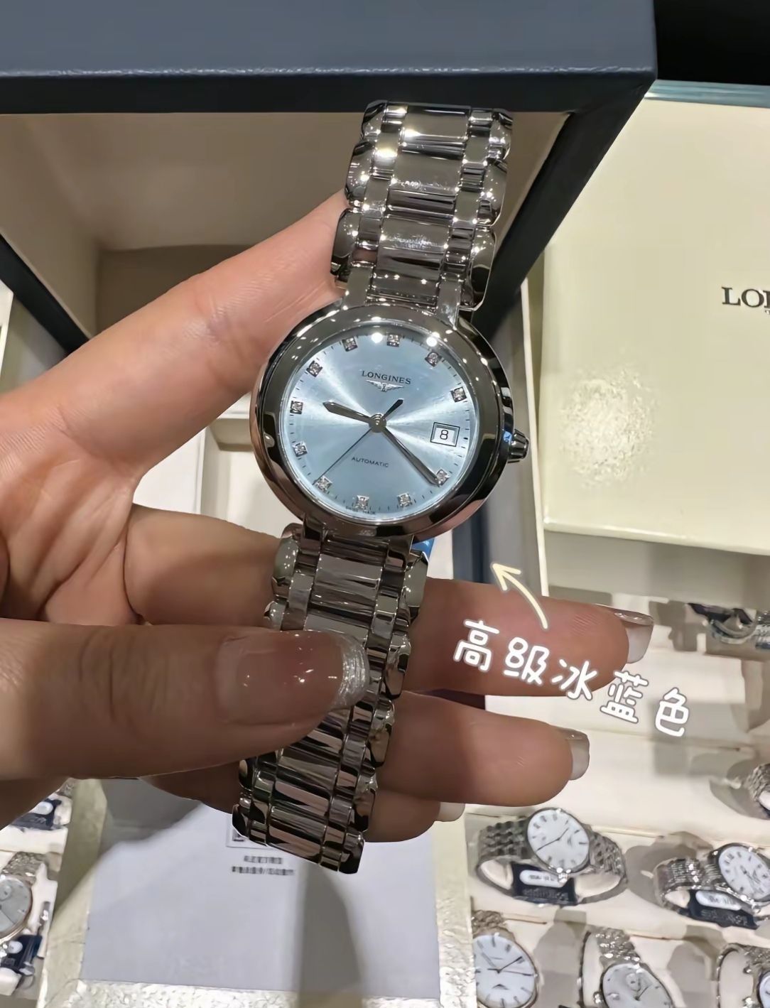 本篇笔记关联了【赵丽颖同款】LONGINES/浪琴 心月系列 30mm 镶钻彩盘精钢表带太阳饰纹石英女士手表 石英款 冰蓝、Longines/浪琴 心月系列 30mm 精钢表带镶钻防水日期显示自动机械女士手表 粉色 L8.113.4.99.6、LONGINES/浪琴 心月系列 30mm 精钢表带和表壳日期显示石英女士手表 银色 L8.122.4.71.6等商品,为用户提供真实的使用体验和购买参考。
